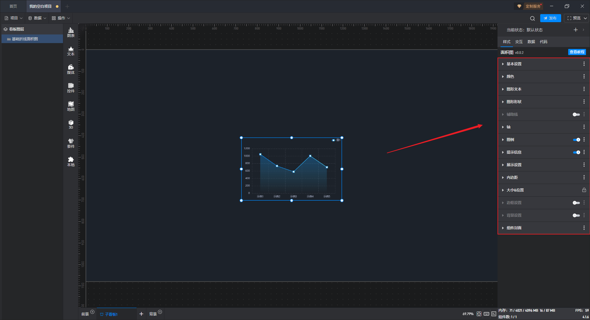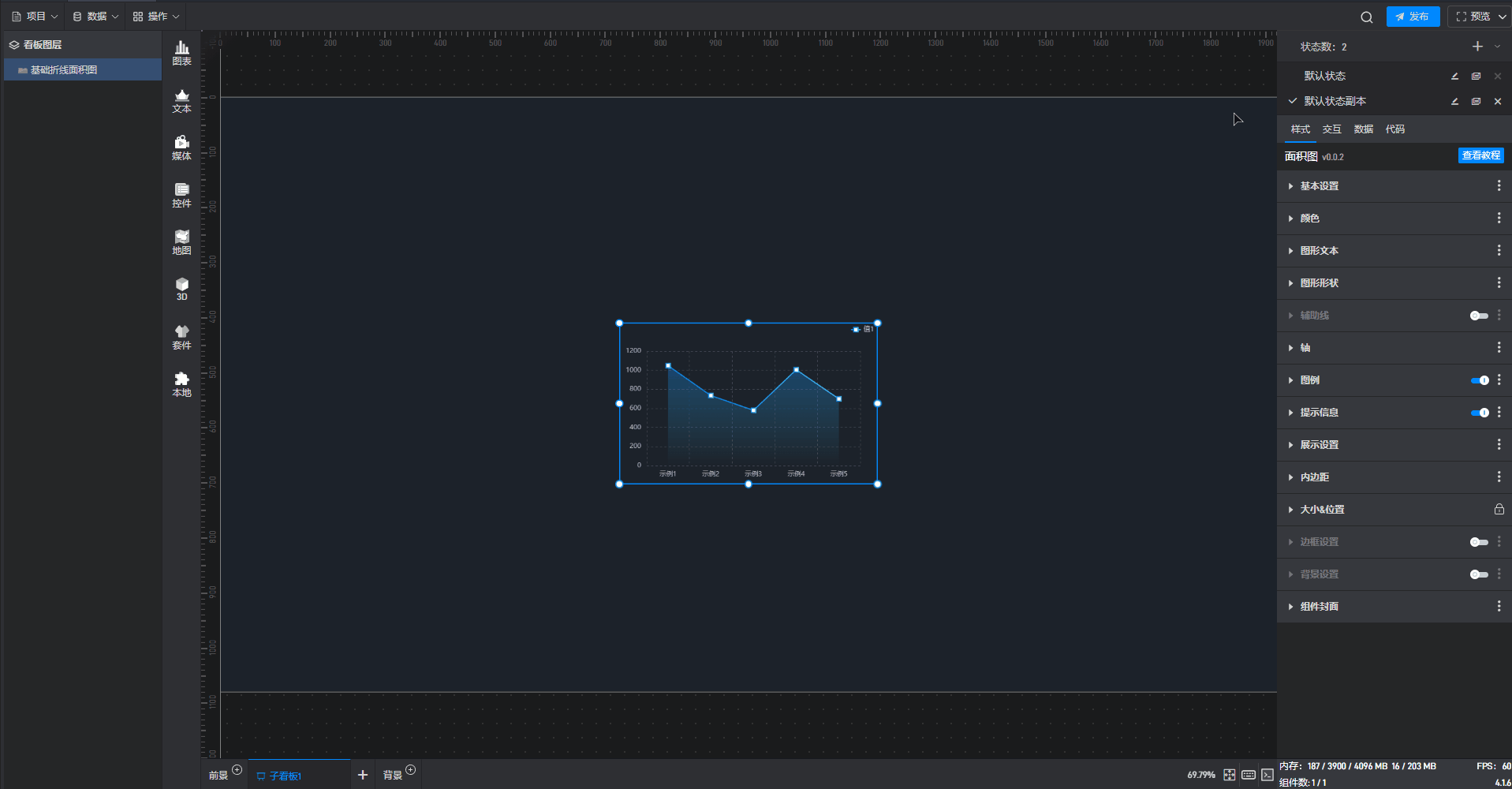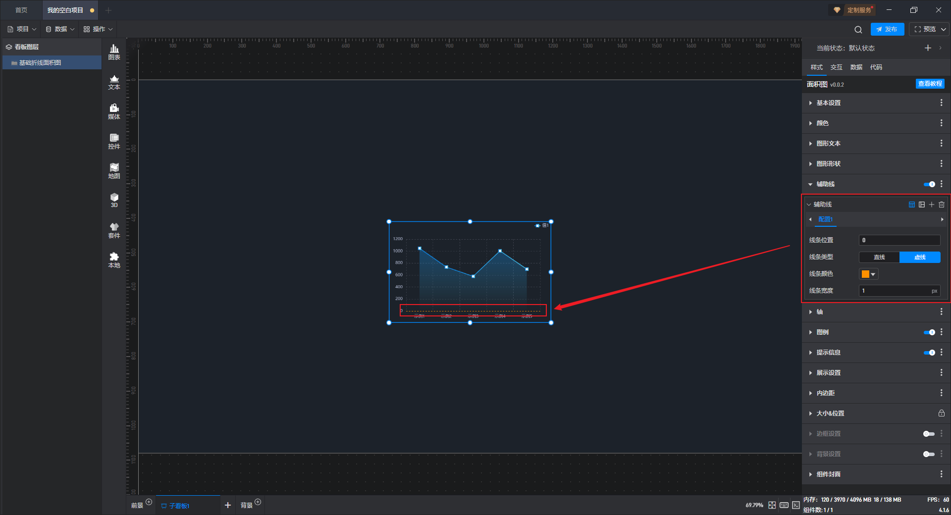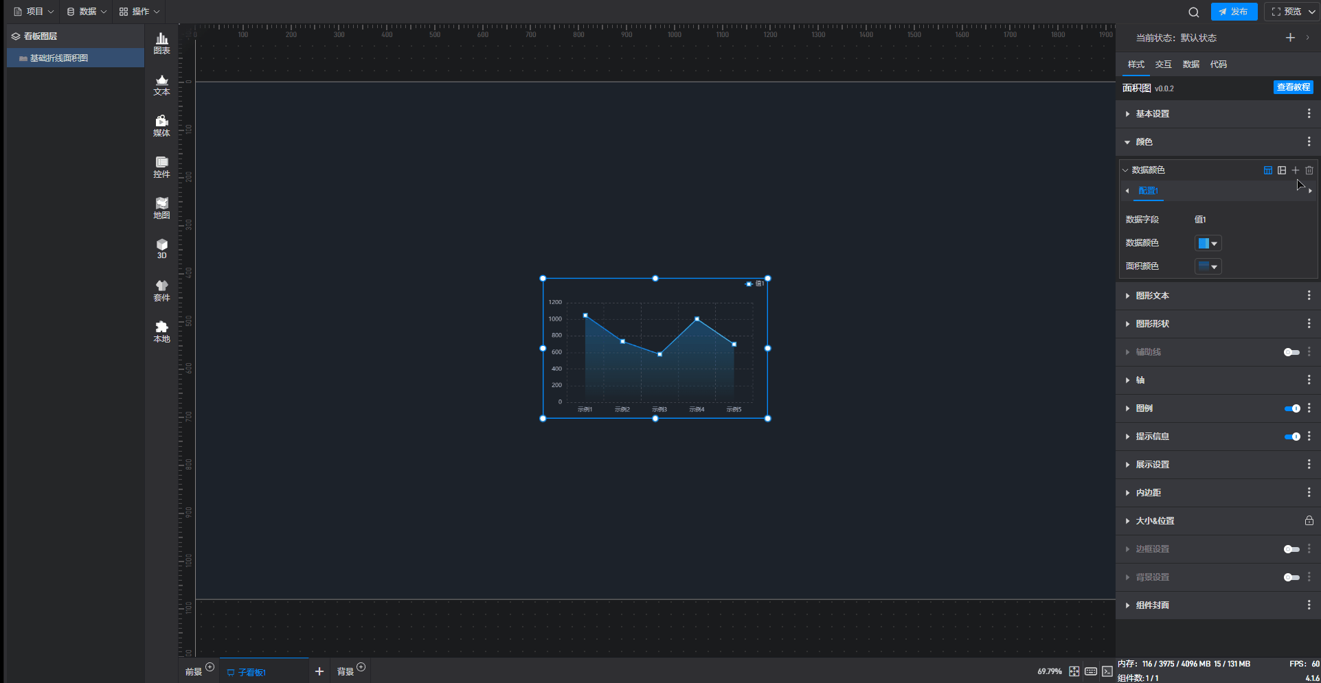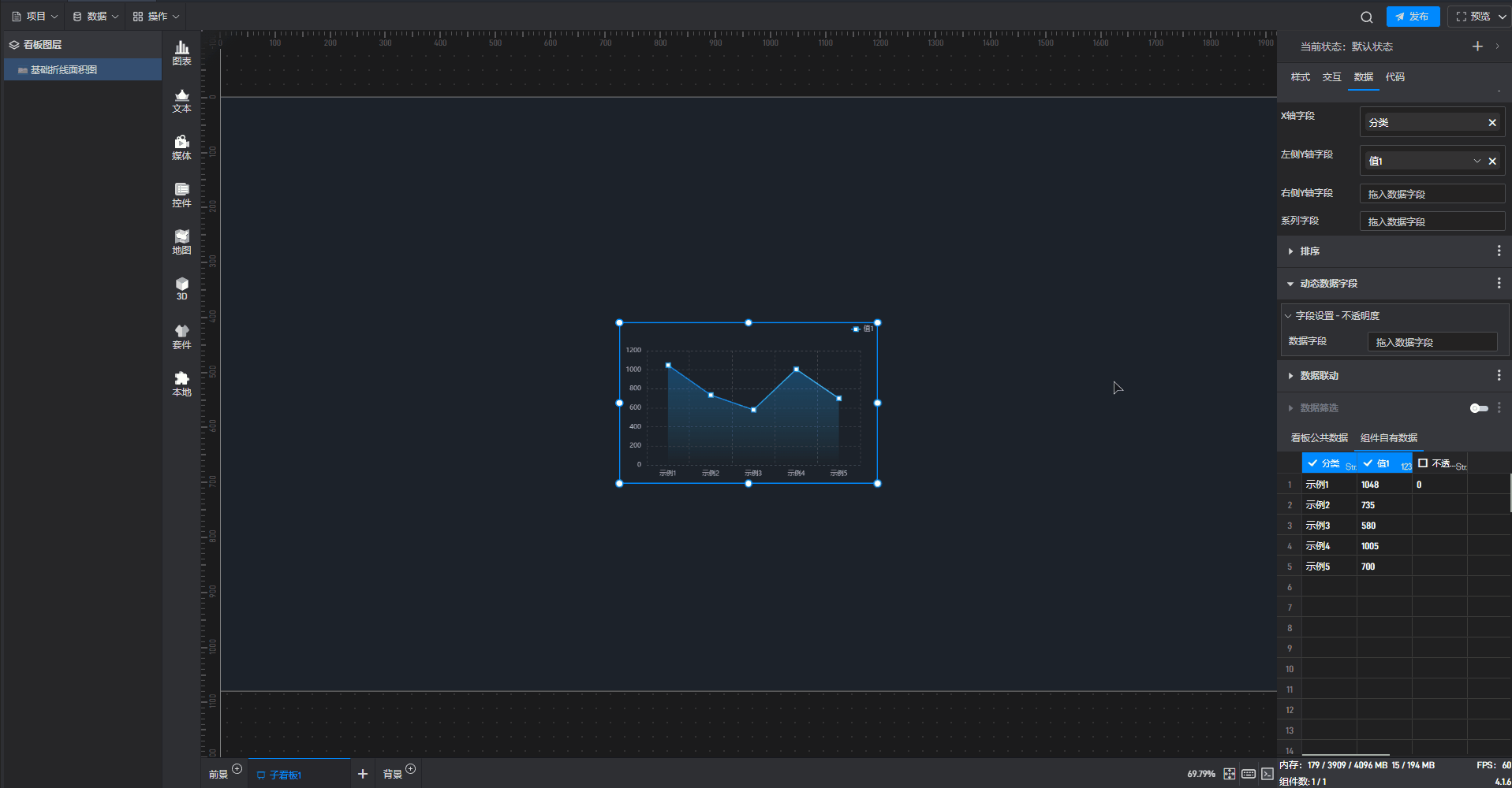 下面我们以基础折线面积图为例,为大家介绍一下该组件的使用步骤: