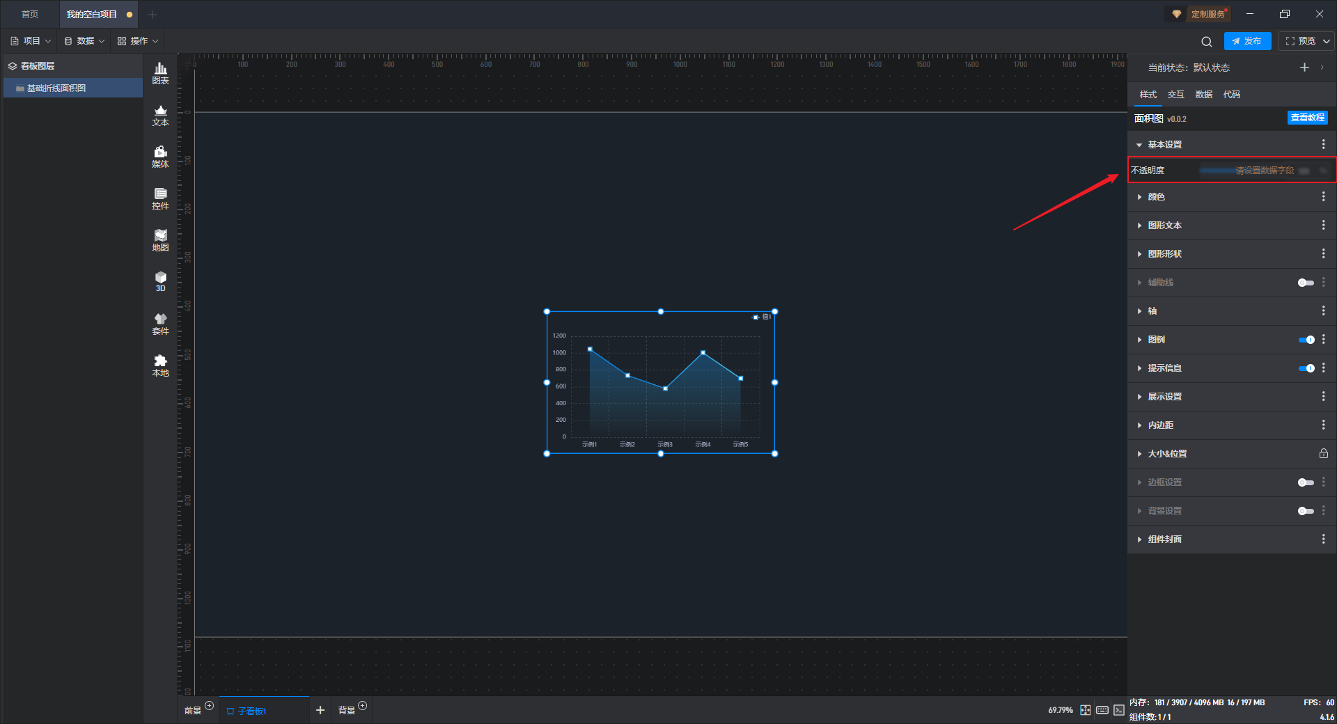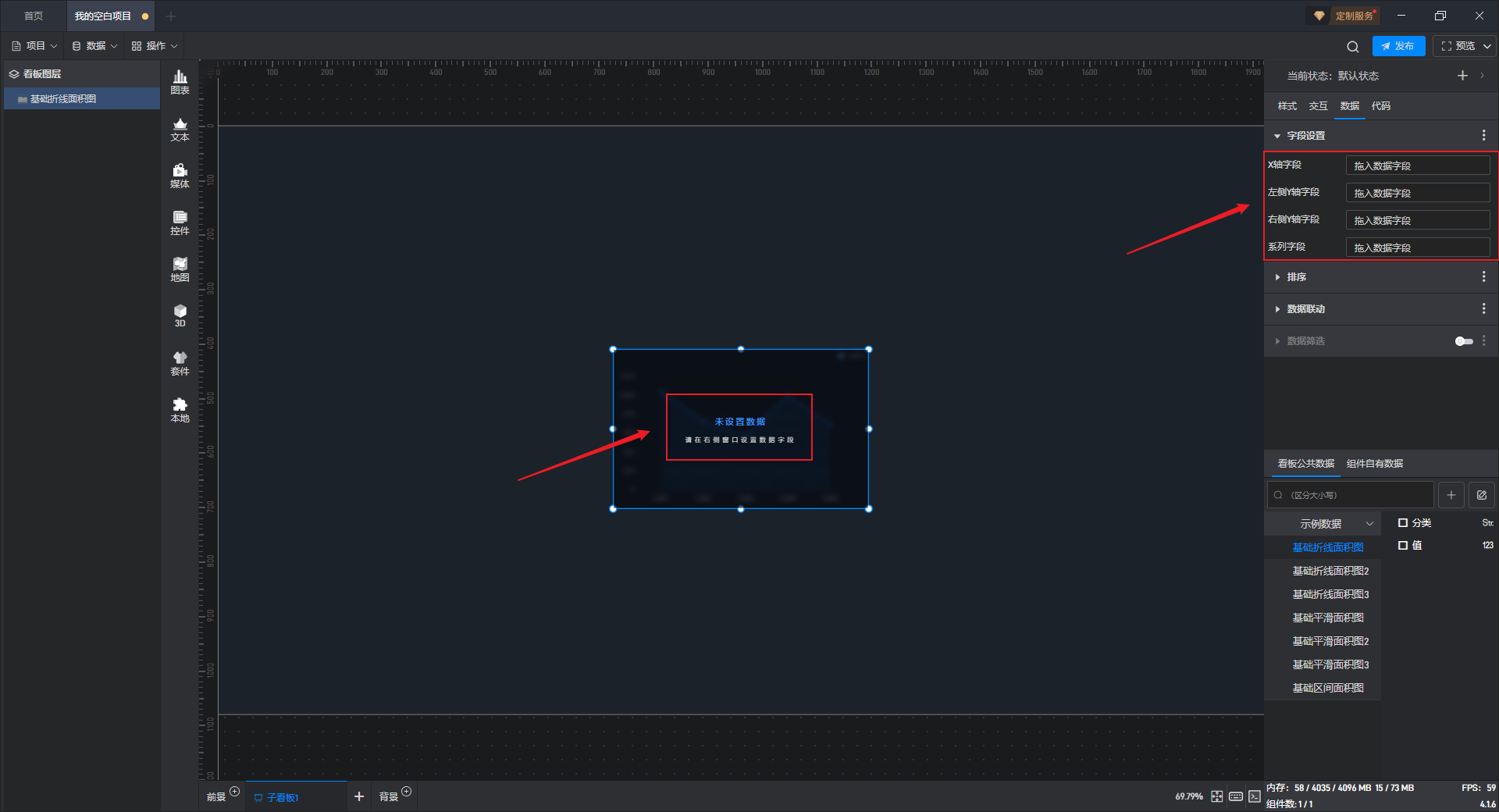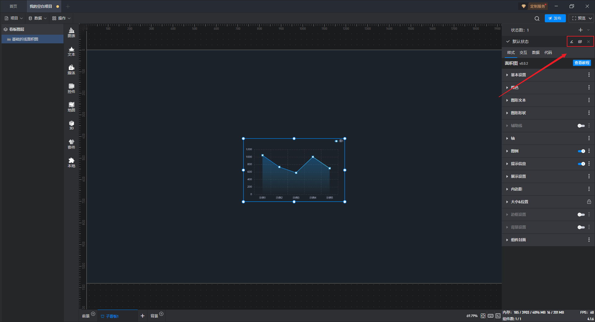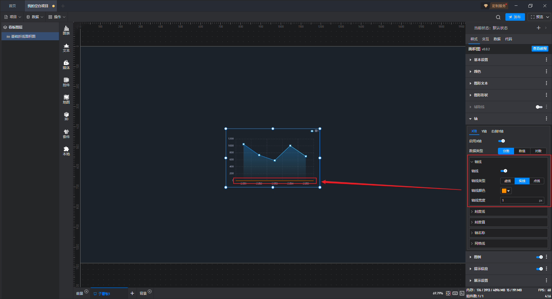 下面我们以基础折线面积图为例,为大家介绍一下该组件的使用步骤: