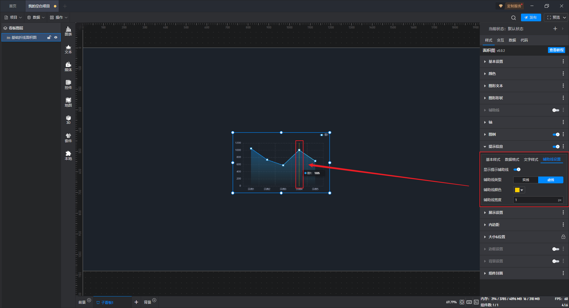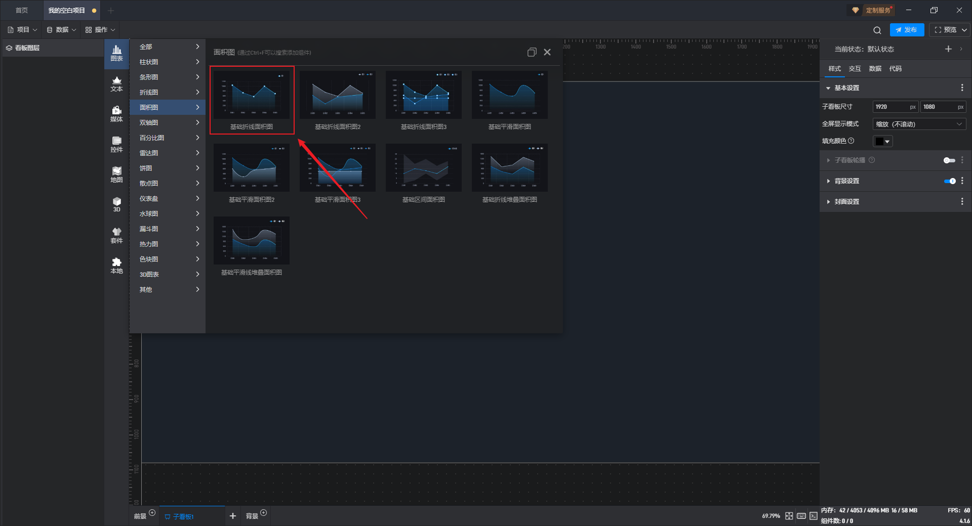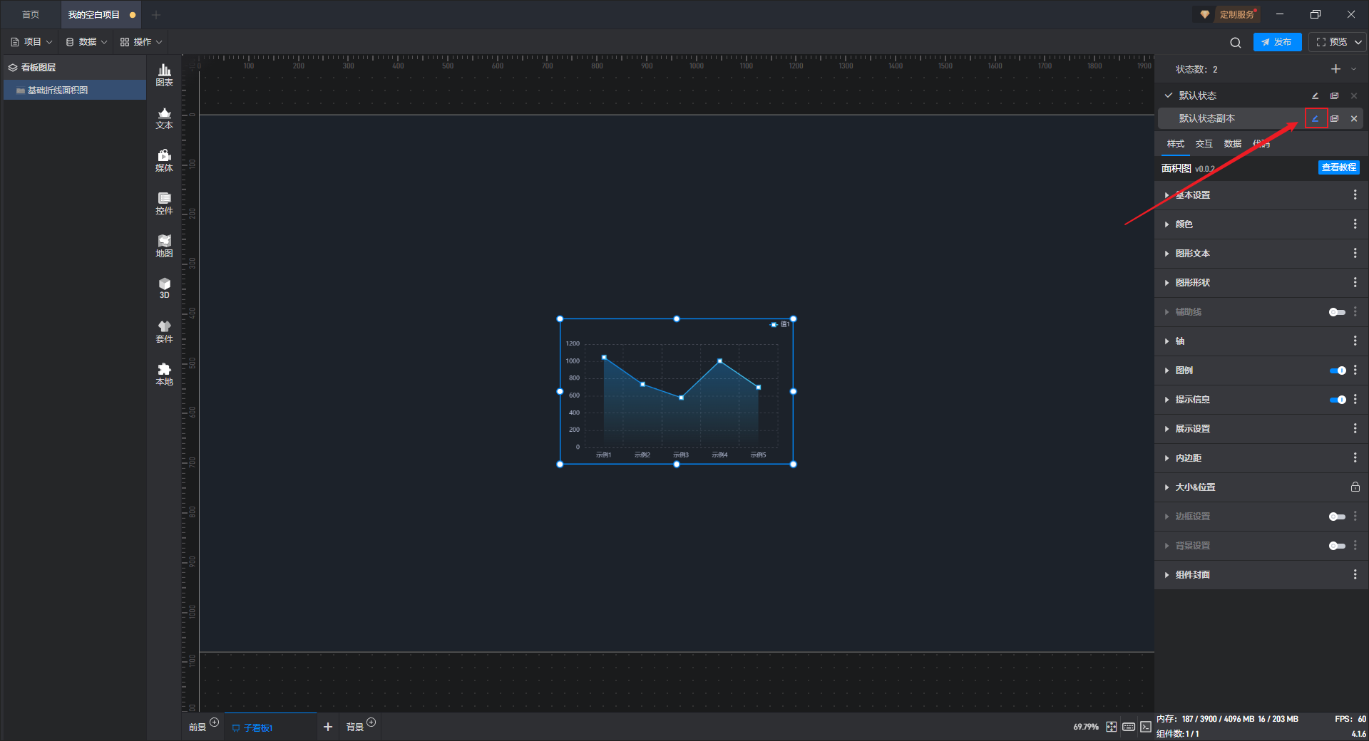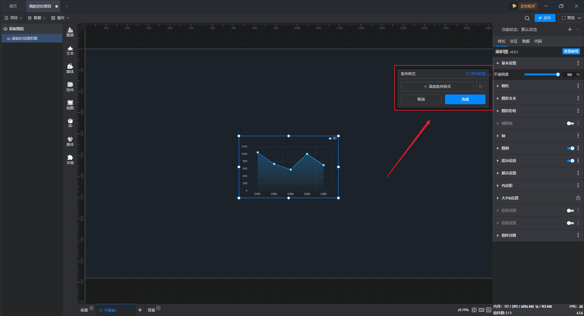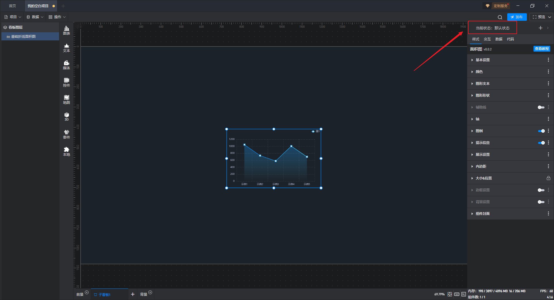 下面我们以基础折线面积图为例,为大家介绍一下该组件的使用步骤: