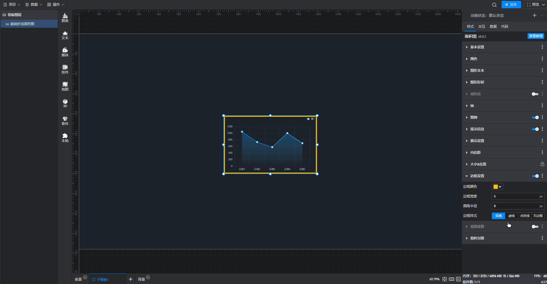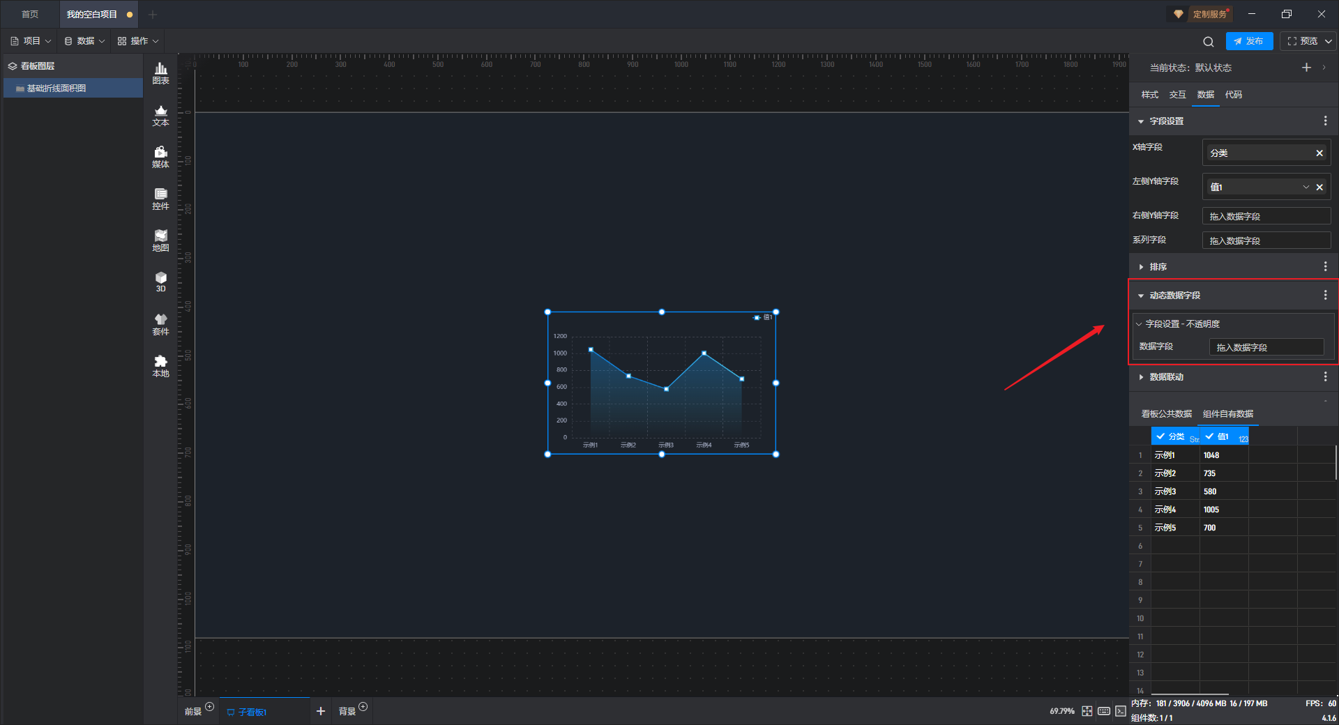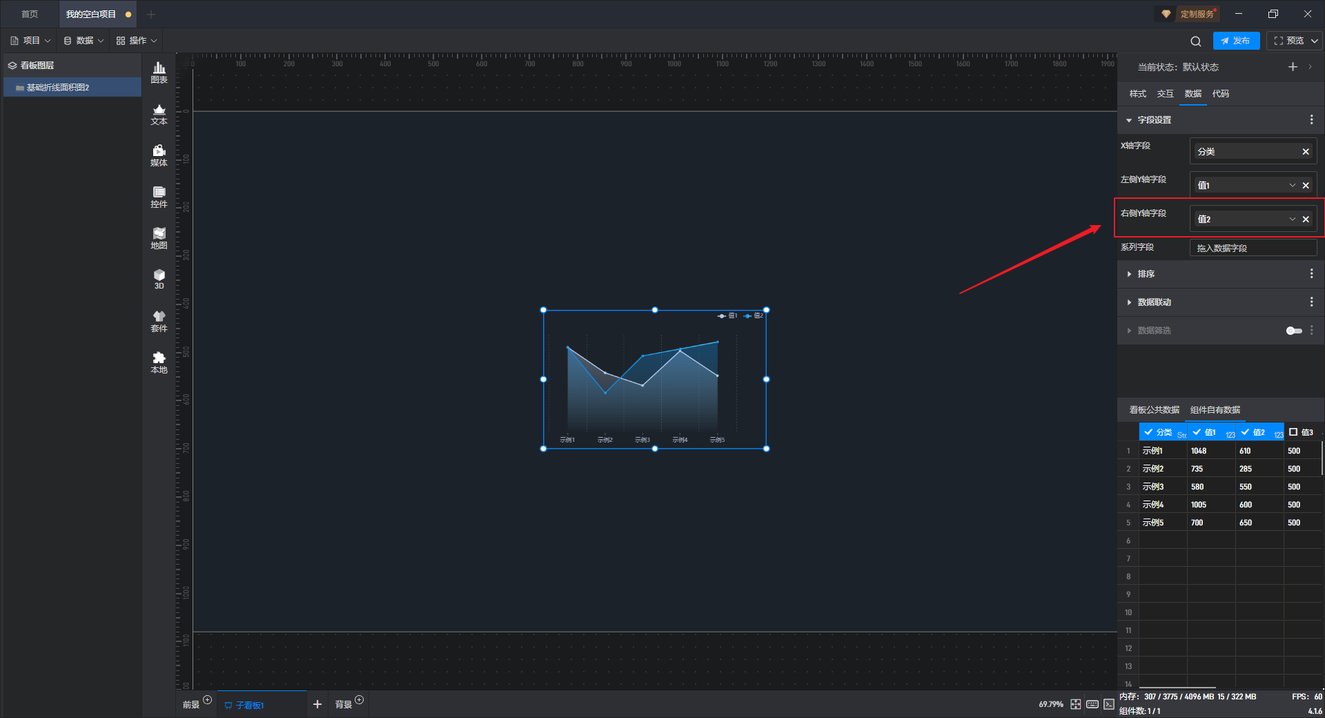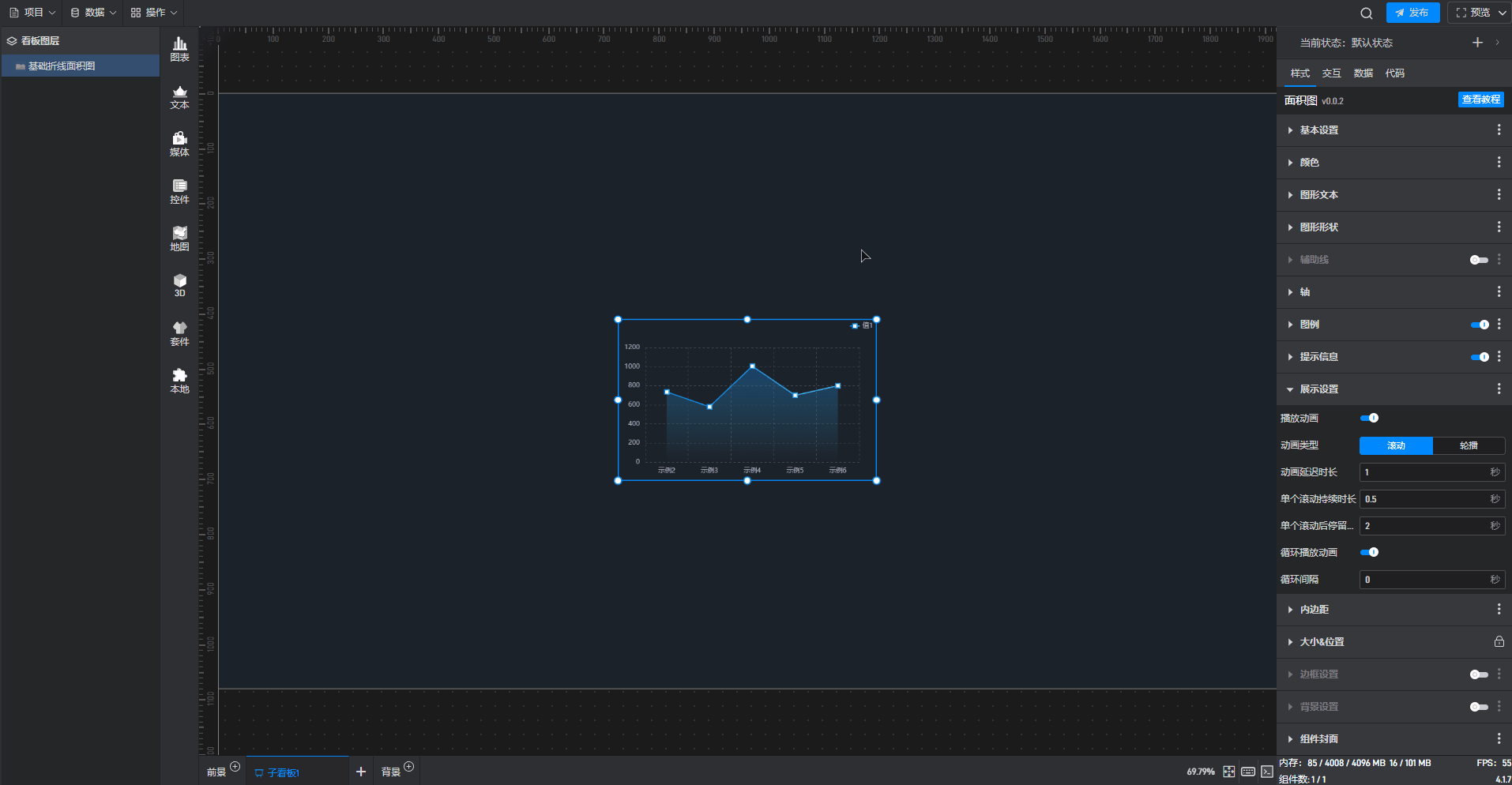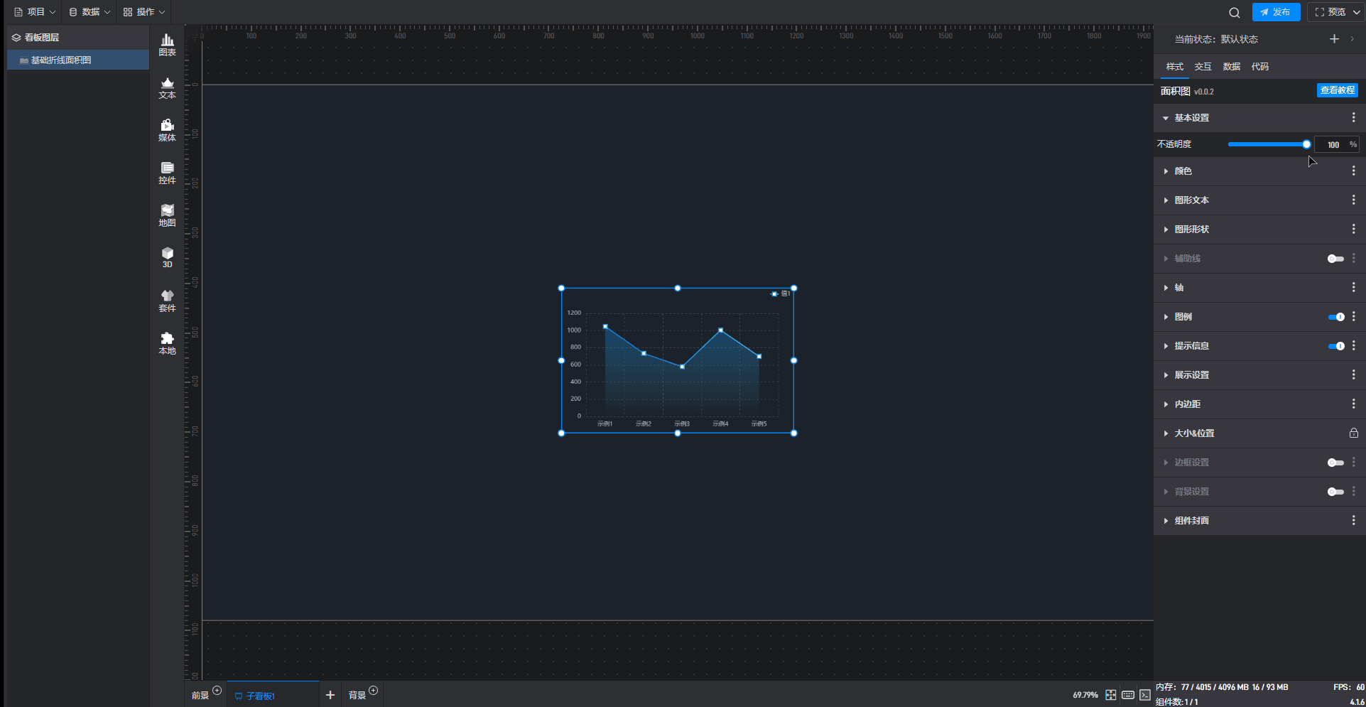 下面我们以基础折线面积图为例,为大家介绍一下该组件的使用步骤: