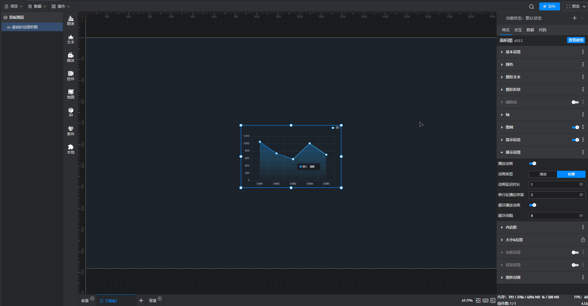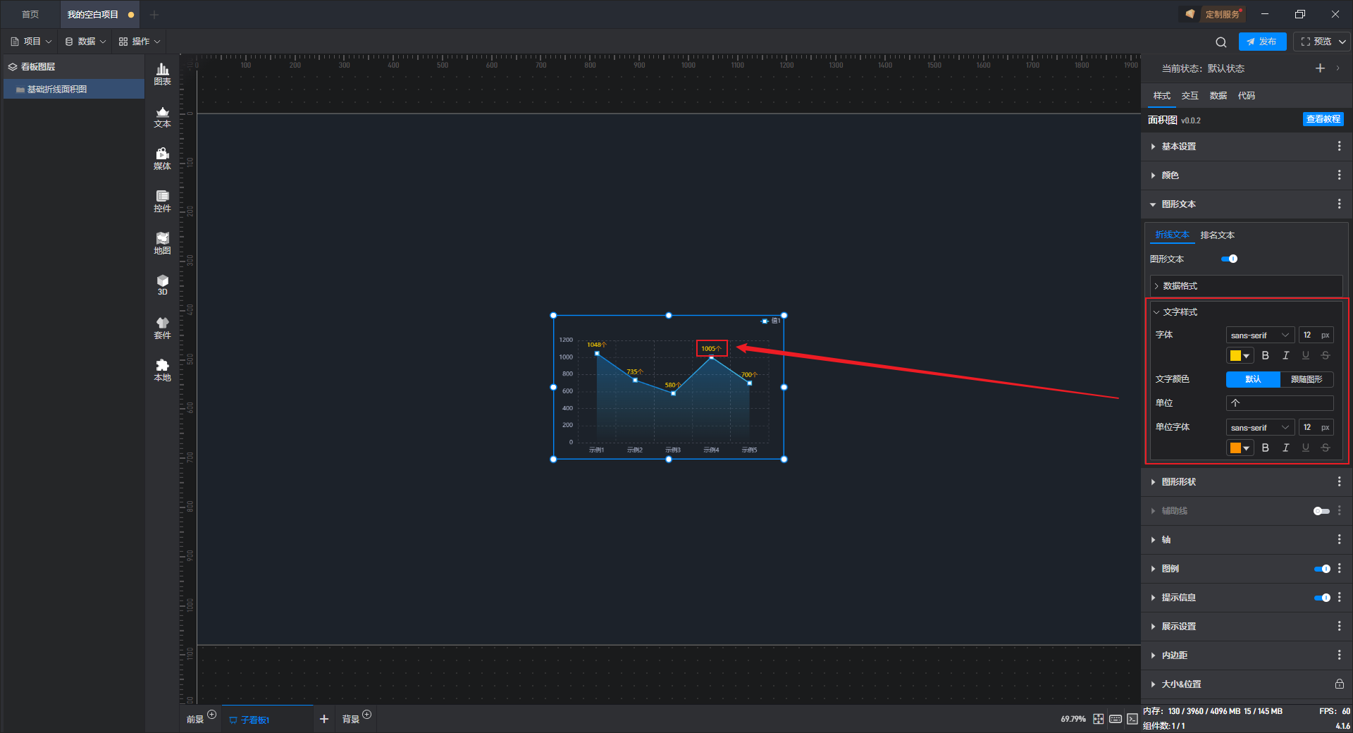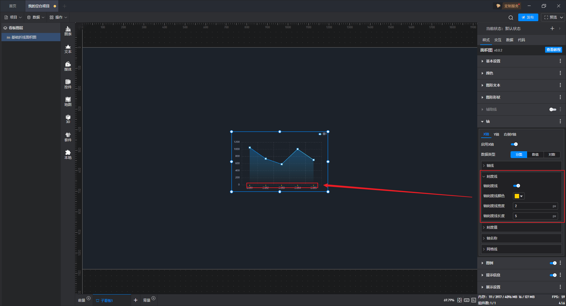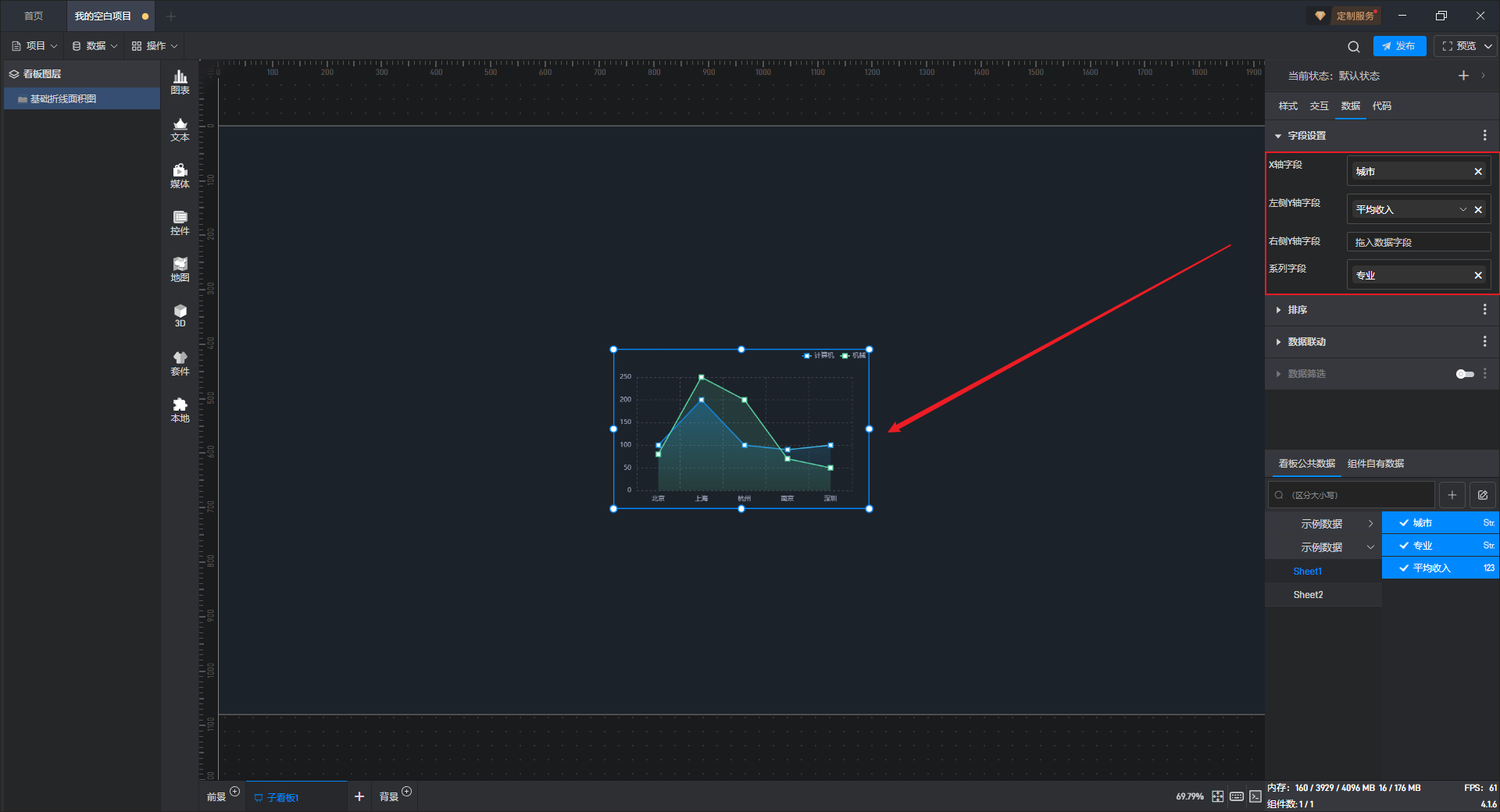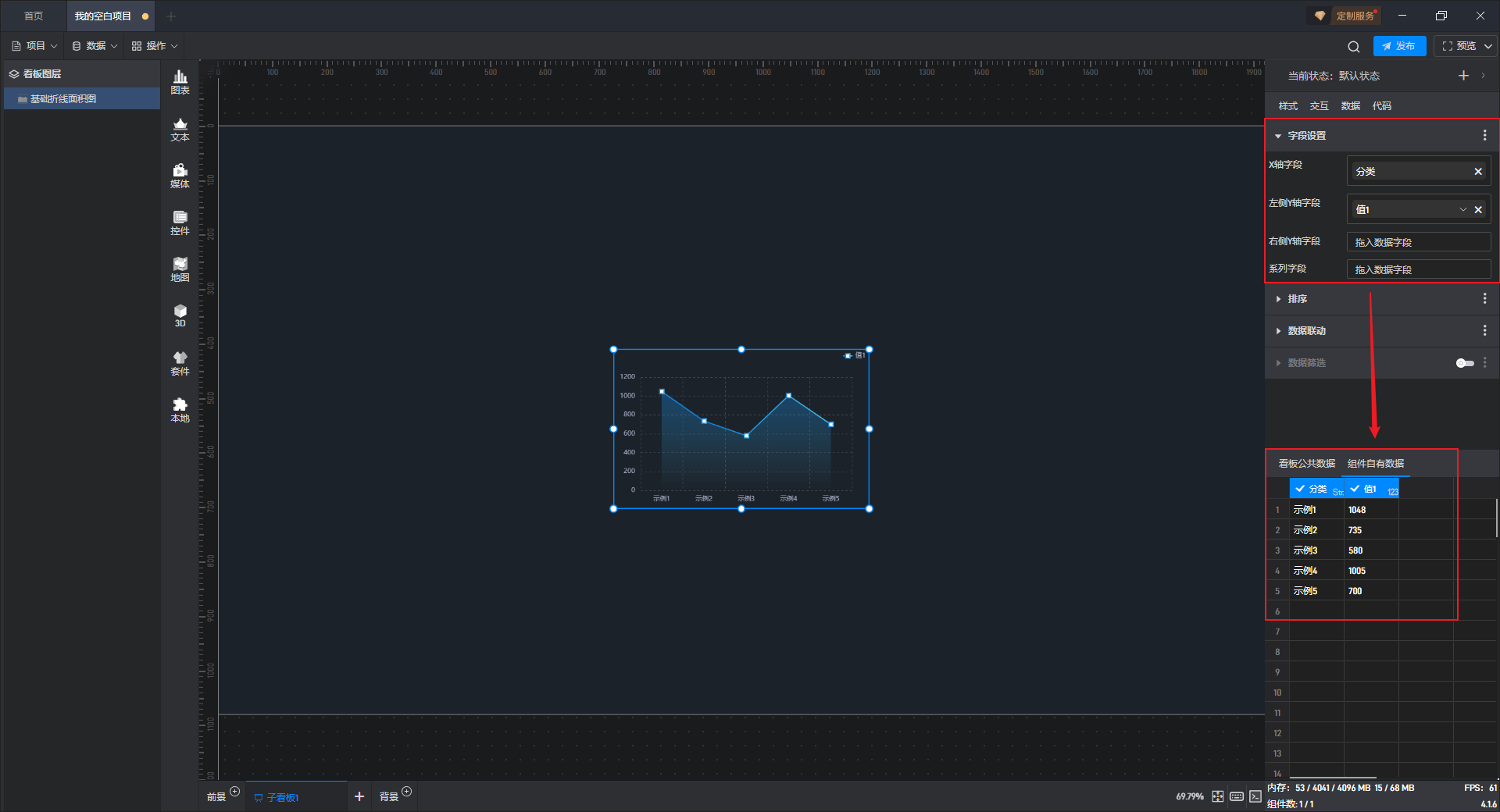 下面我们以基础折线面积图为例,为大家介绍一下该组件的使用步骤: