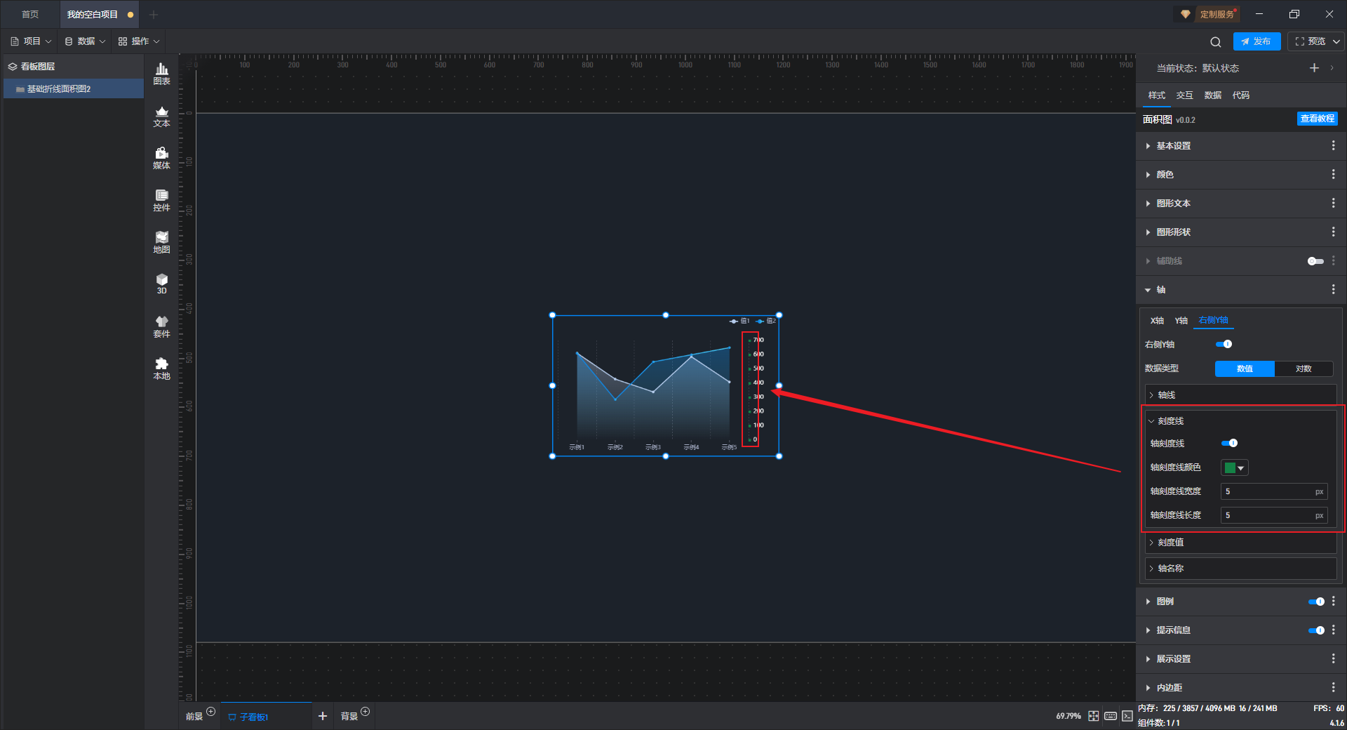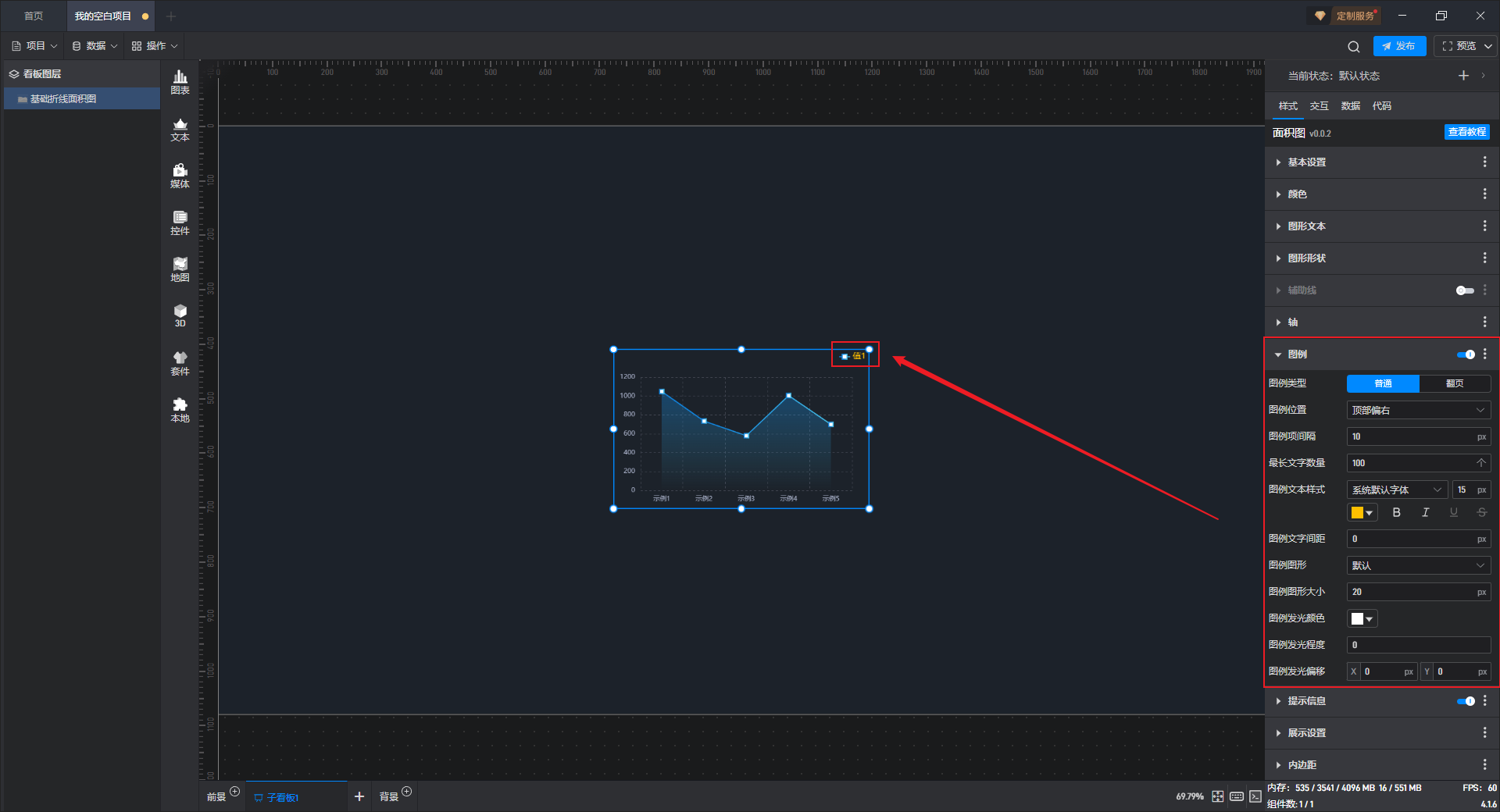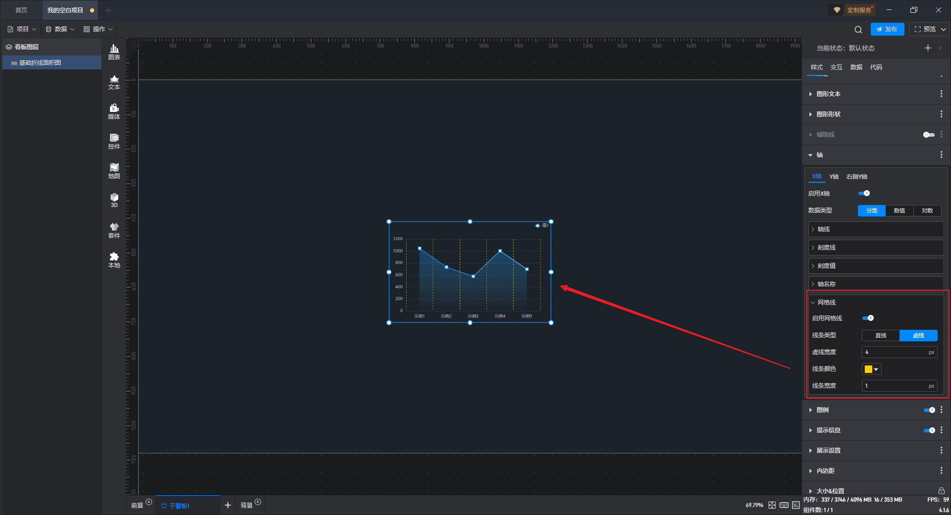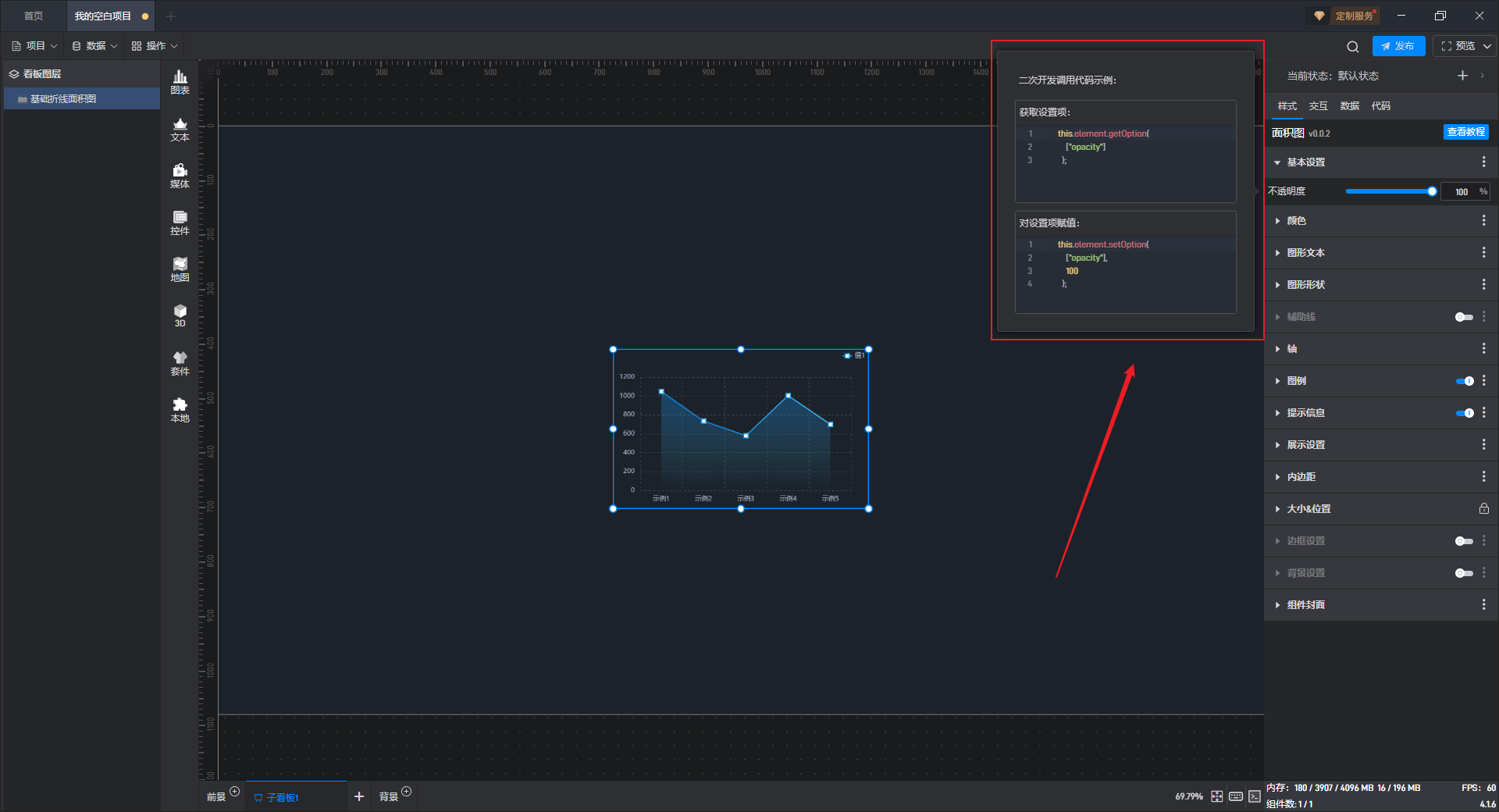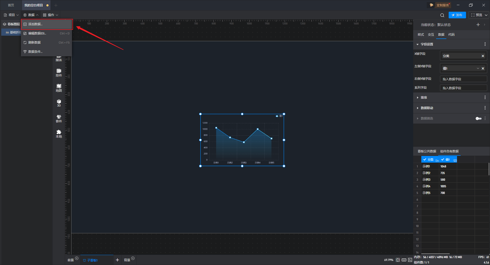 下面我们以基础折线面积图为例,为大家介绍一下该组件的使用步骤: