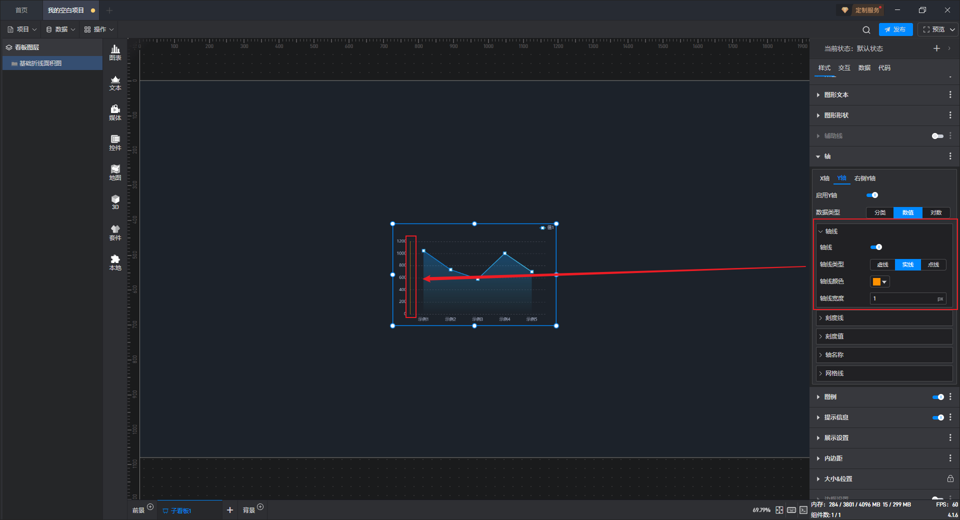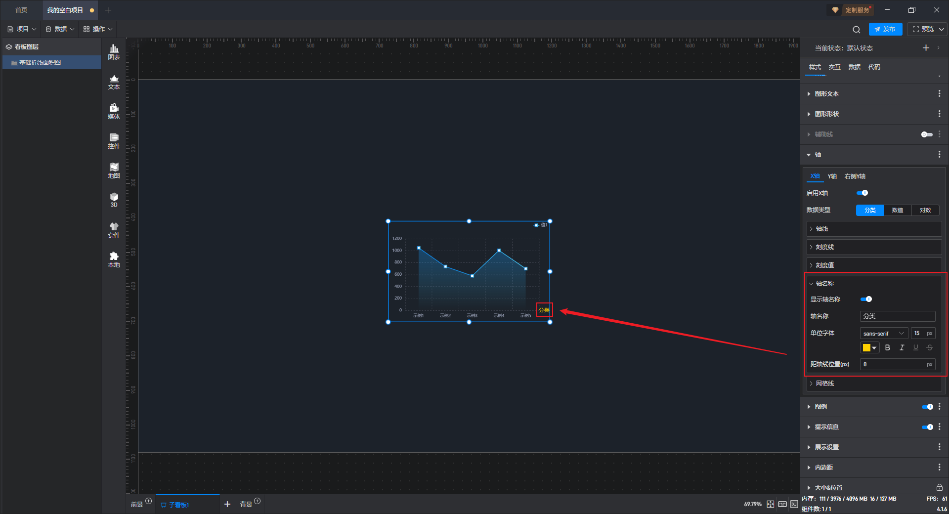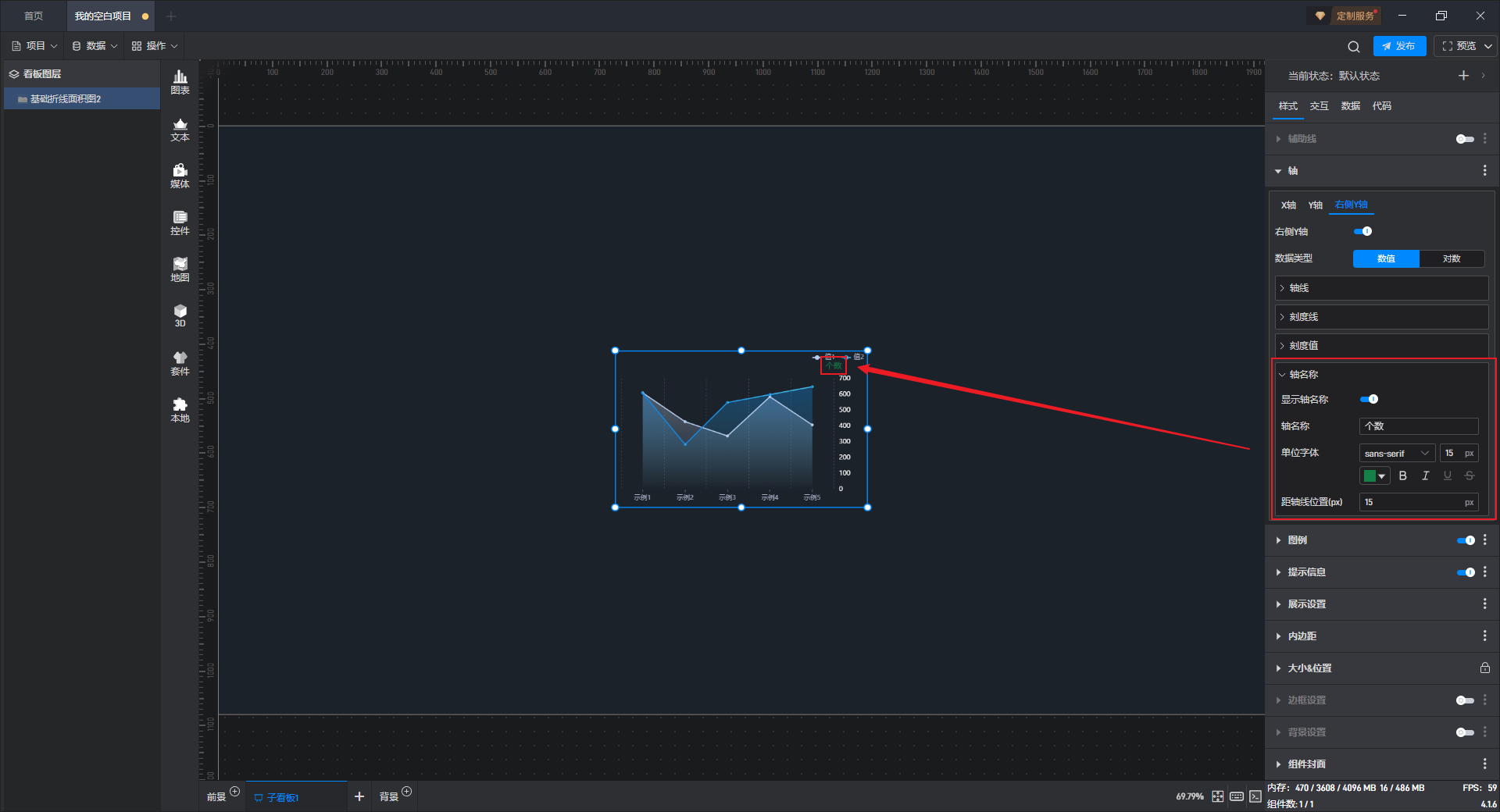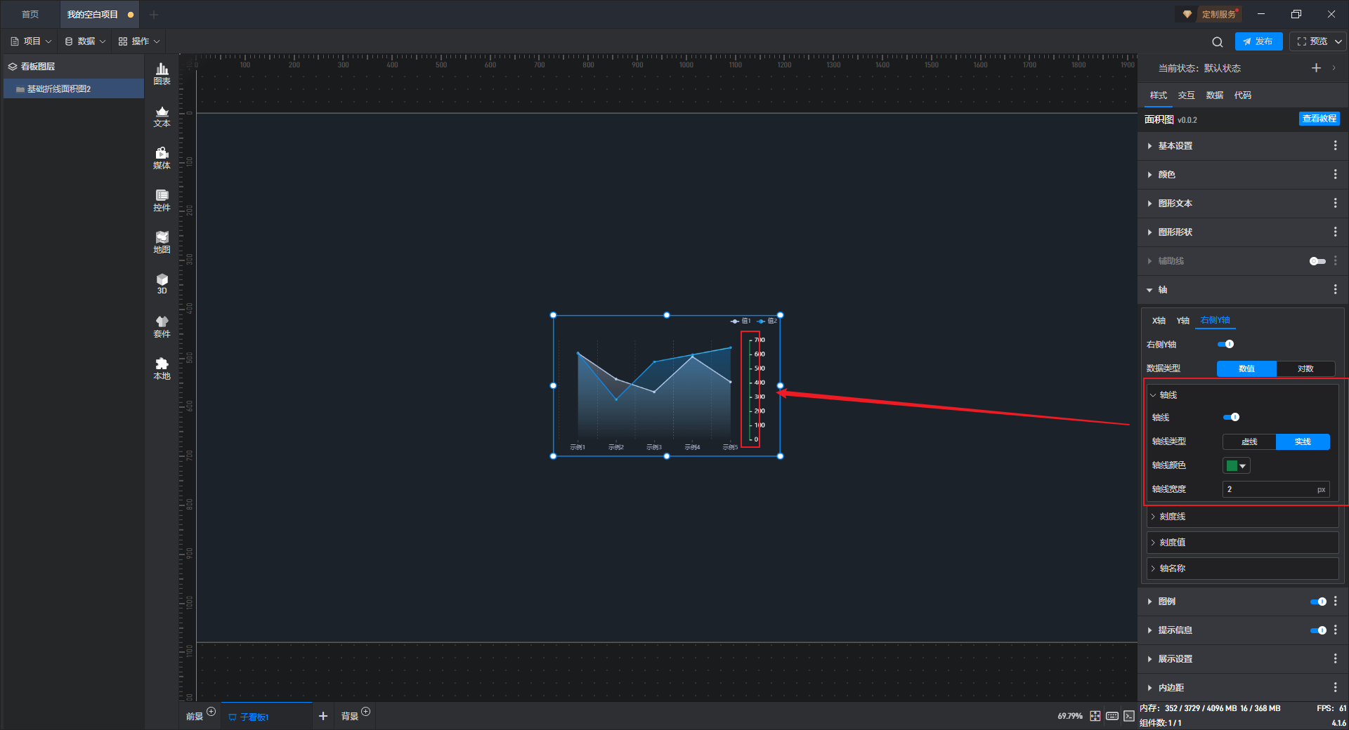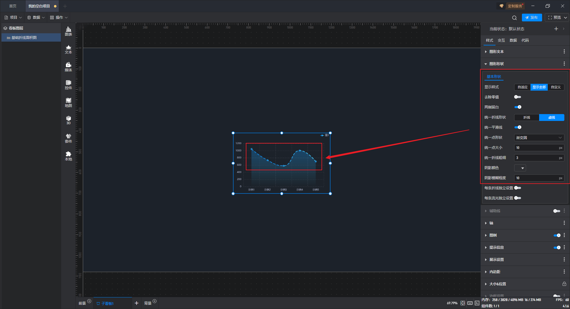 下面我们以基础折线面积图为例,为大家介绍一下该组件的使用步骤: