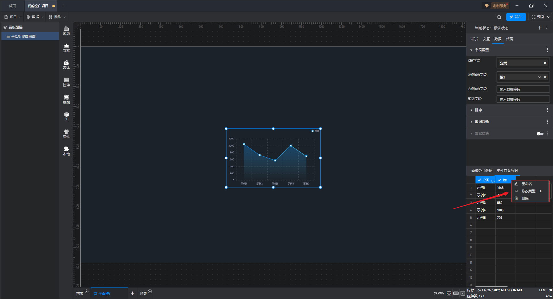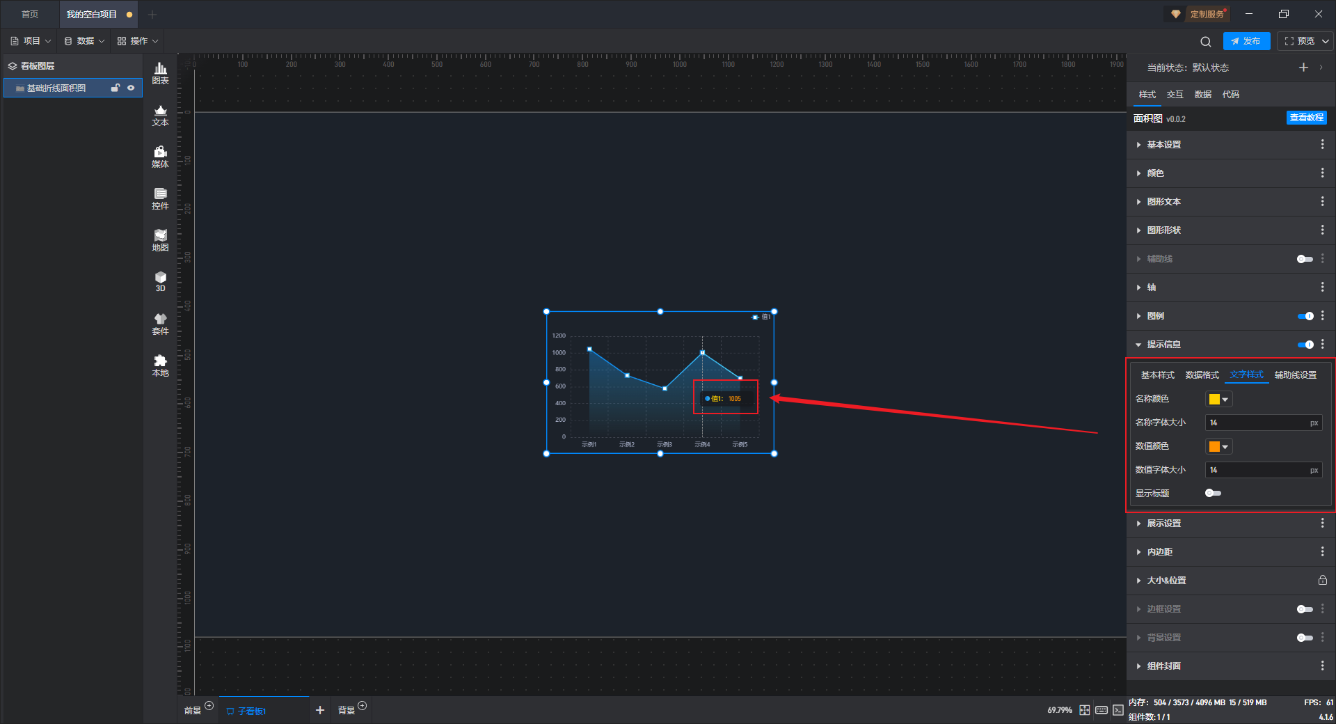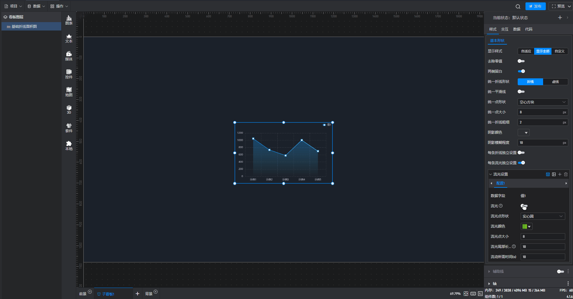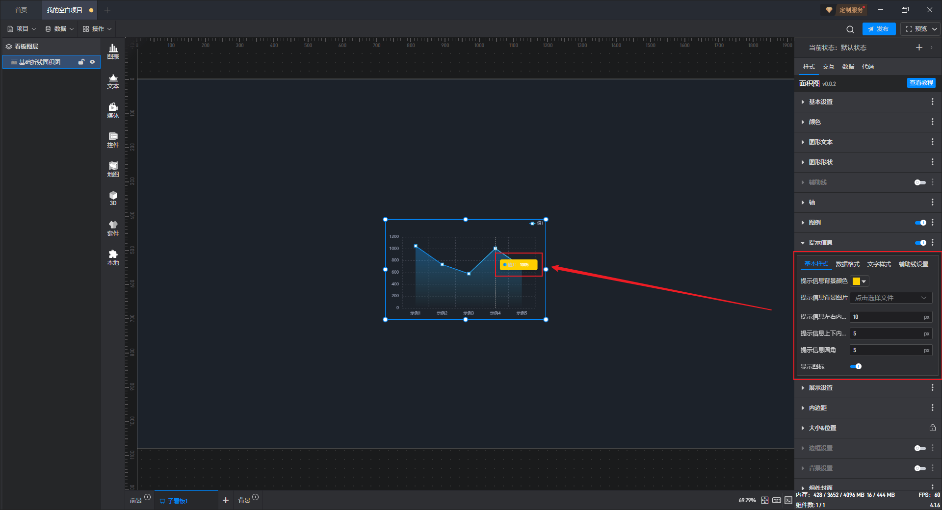 下面我们以基础折线面积图为例,为大家介绍一下该组件的使用步骤: