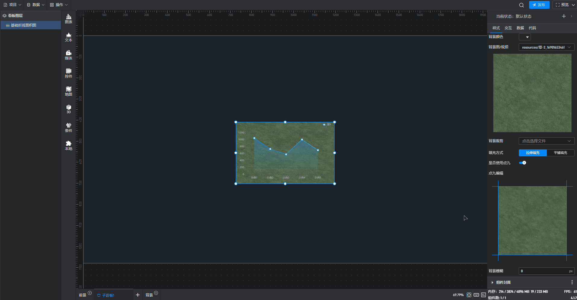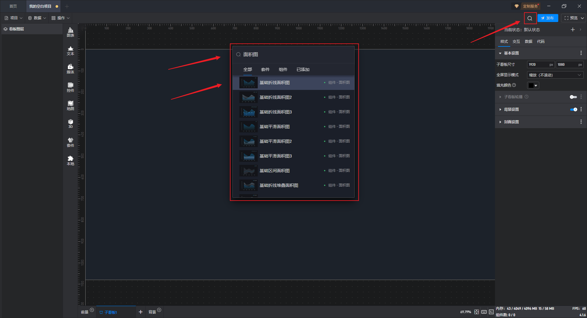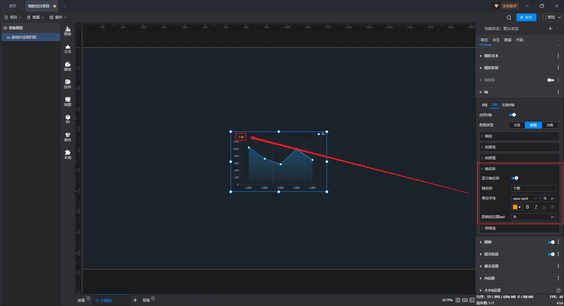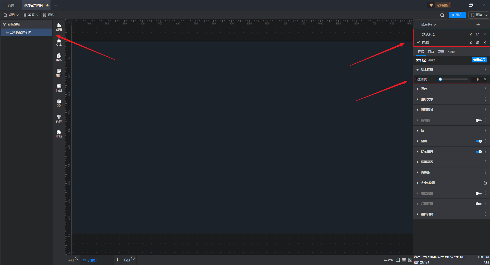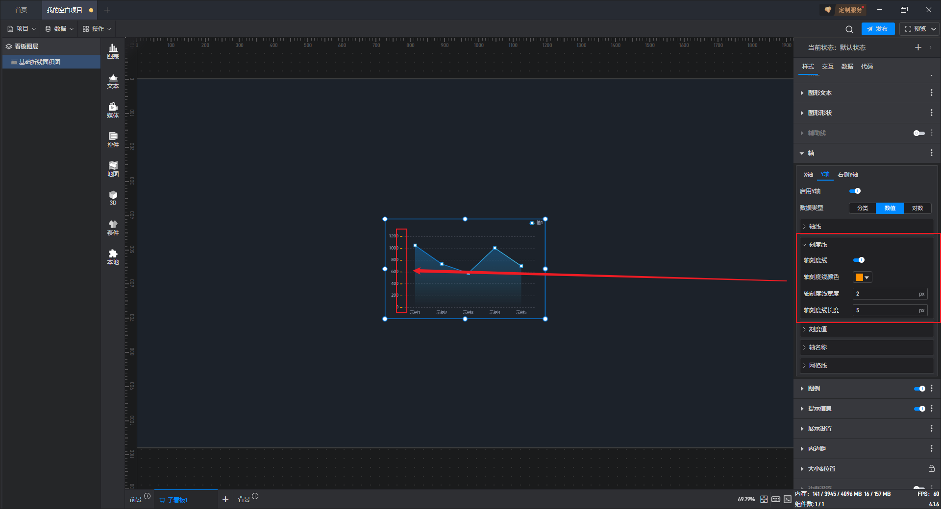 下面我们以基础折线面积图为例,为大家介绍一下该组件的使用步骤: