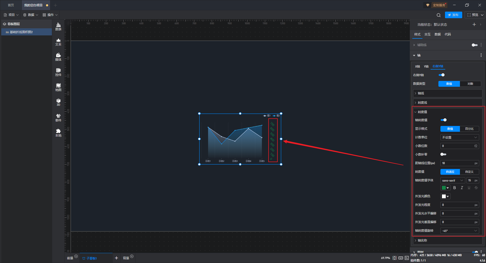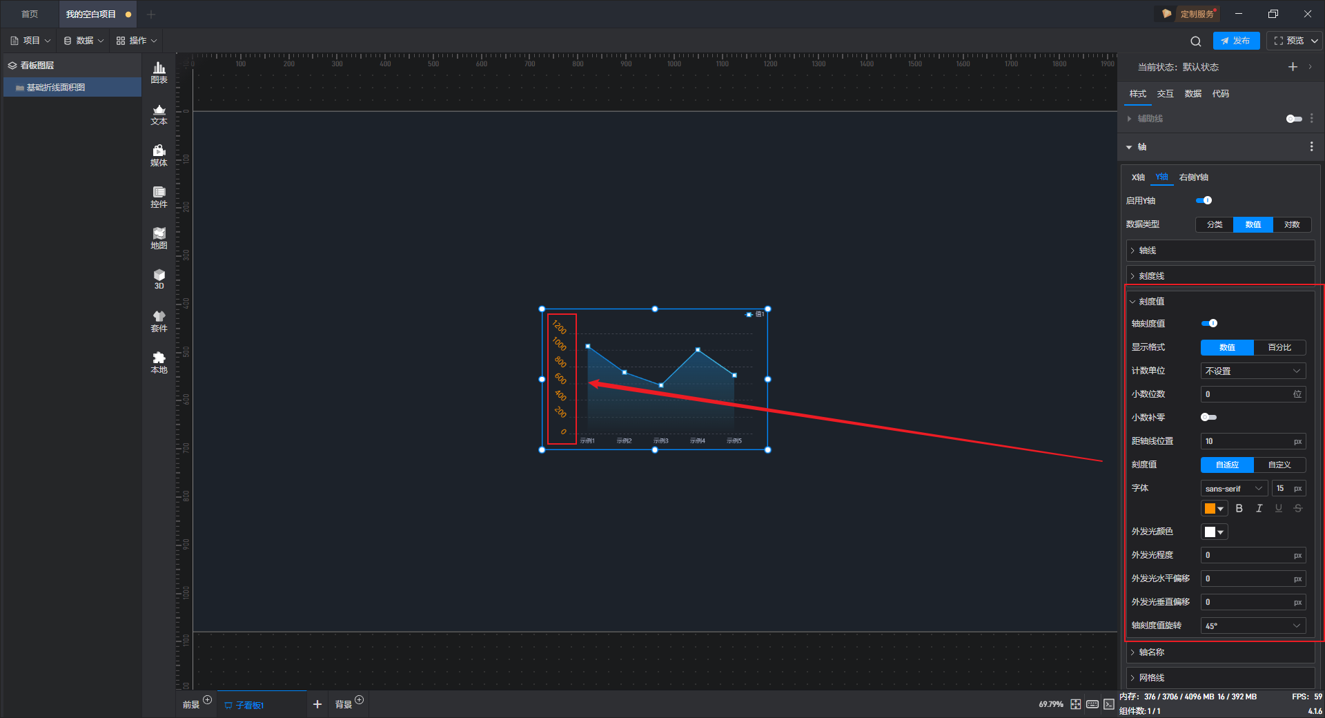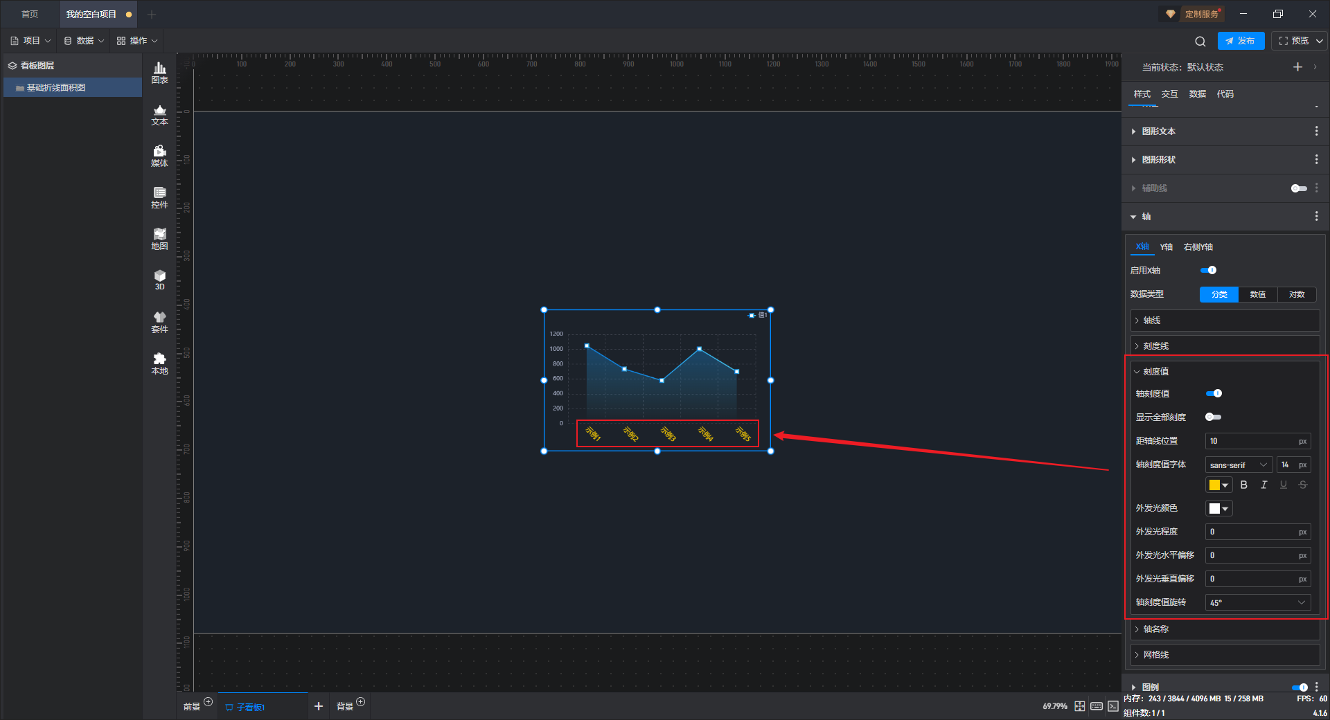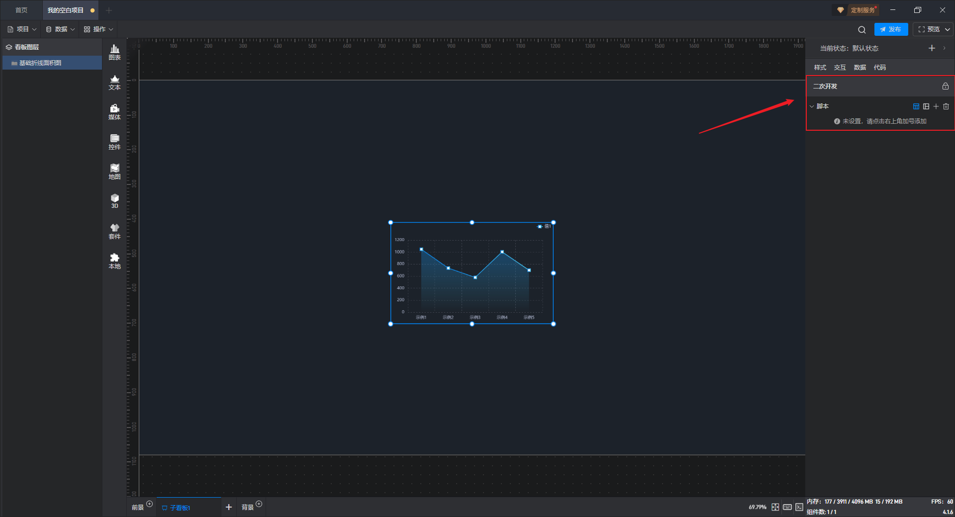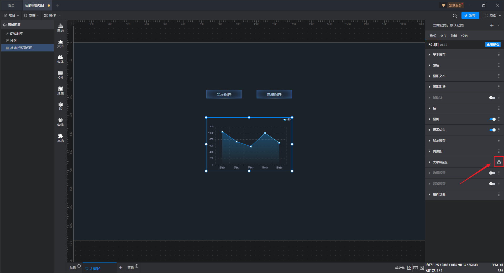 下面我们以基础折线面积图为例,为大家介绍一下该组件的使用步骤: