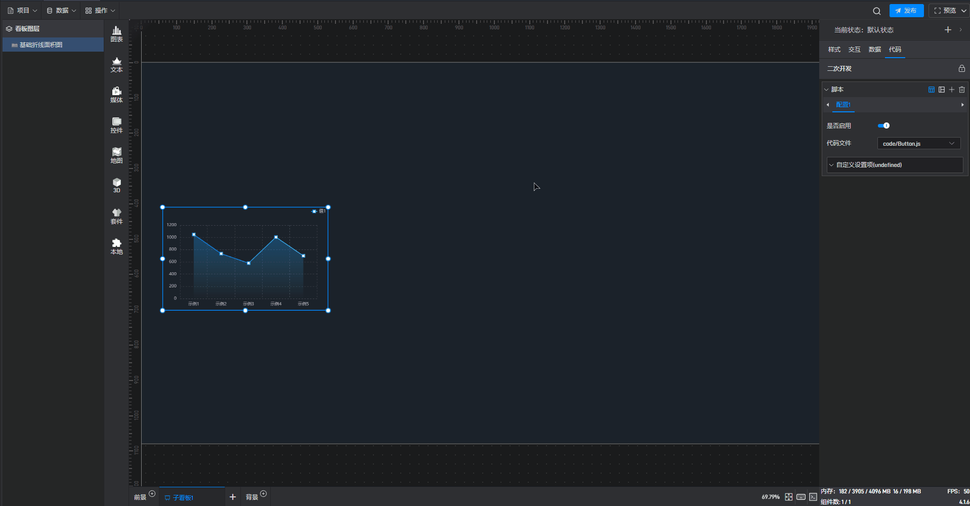 点击选中组件,在右侧“代码”设置窗口中可以对组件进行二次开发设置。