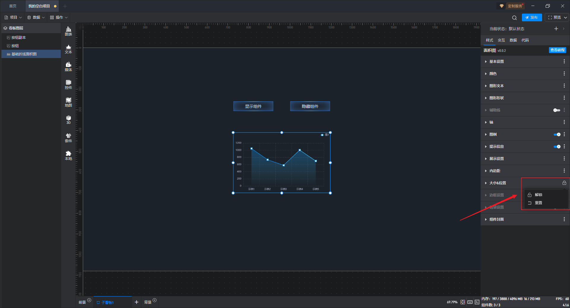 可以通过直接点击和拖动组件来调整大小和位置,也可以通过直接输入宽、高、X 坐标和Y 坐标的方式来设置。