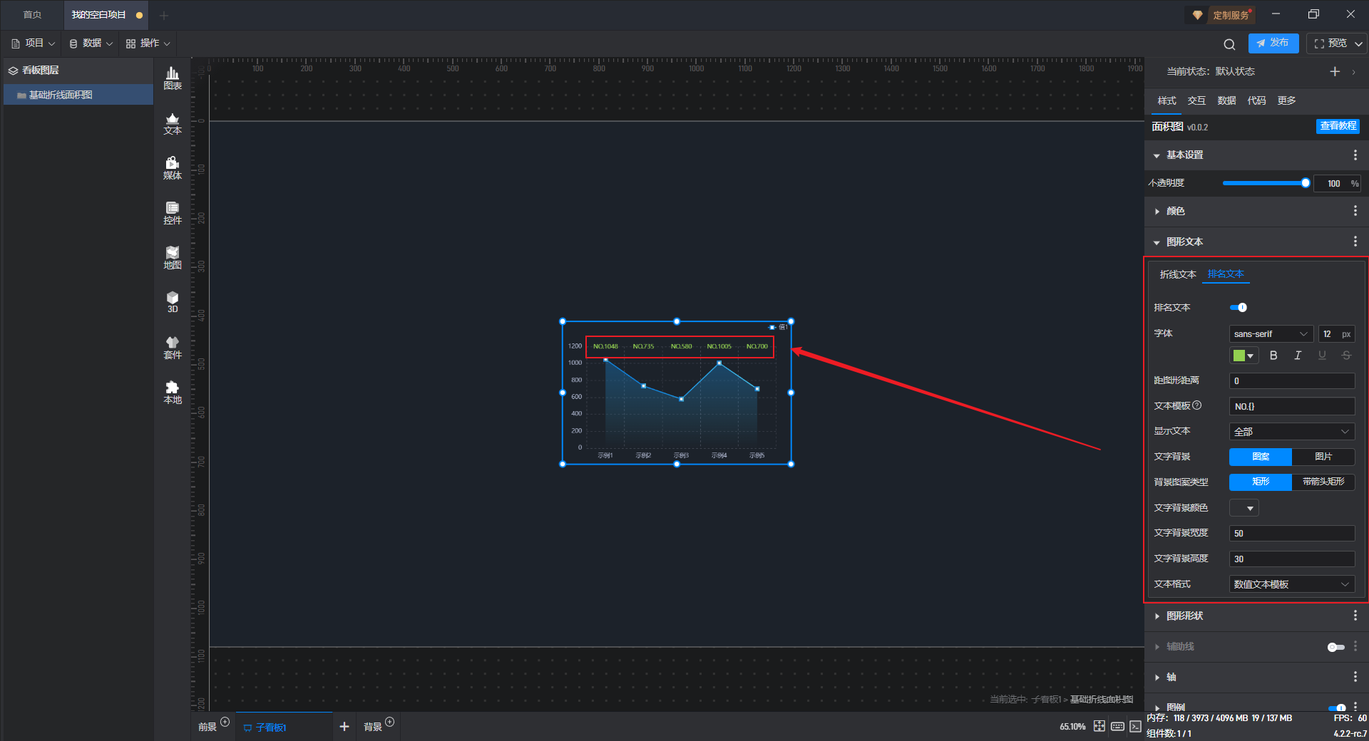 面积图 排名文本格式为数值文本模板,如下图所示: