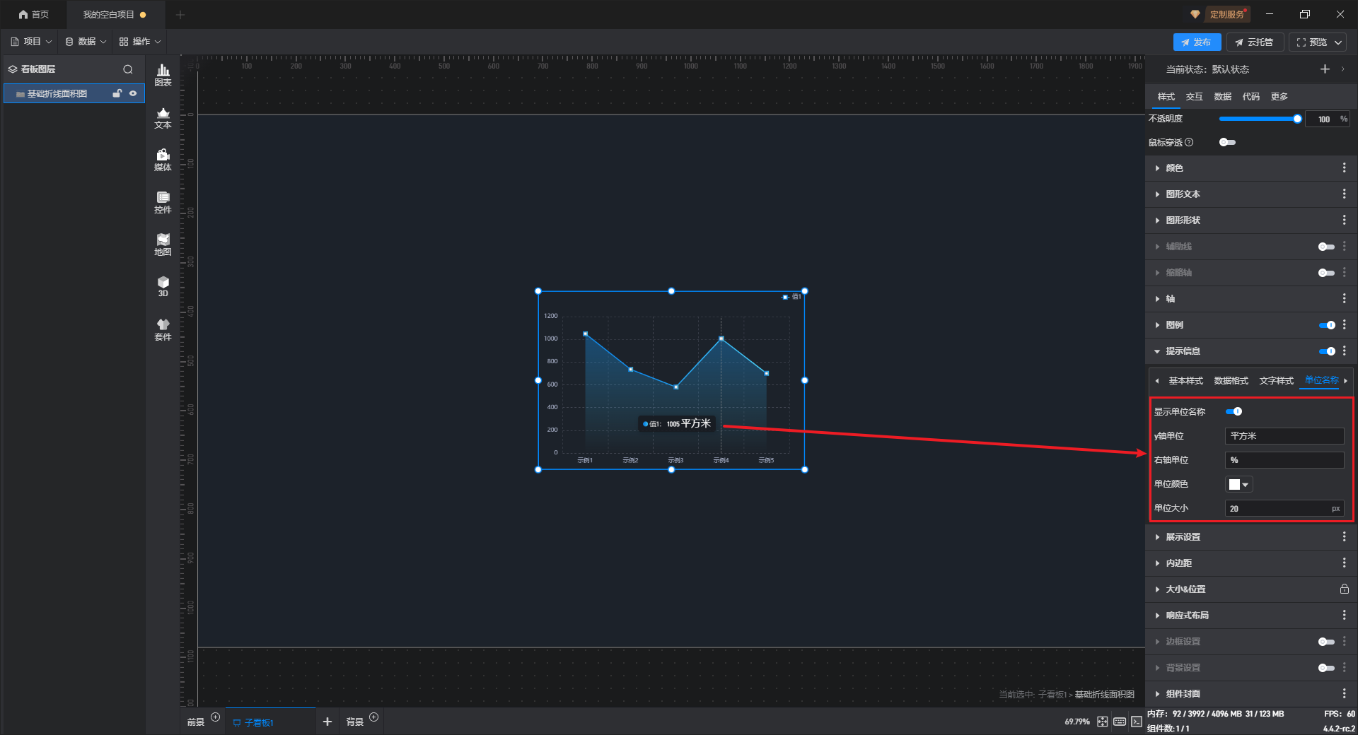 单位字体 | 对折线文本的单位字体、字体大小、颜色等样式进行配置。 |