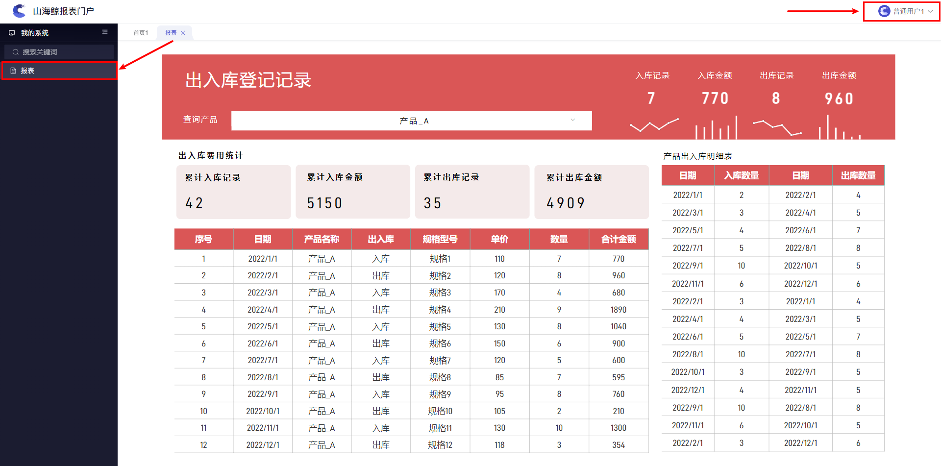 “普通用户 1”登录报表门户系统,即可查看“平台首页”及“平台目录”下的报表。如下图所示: