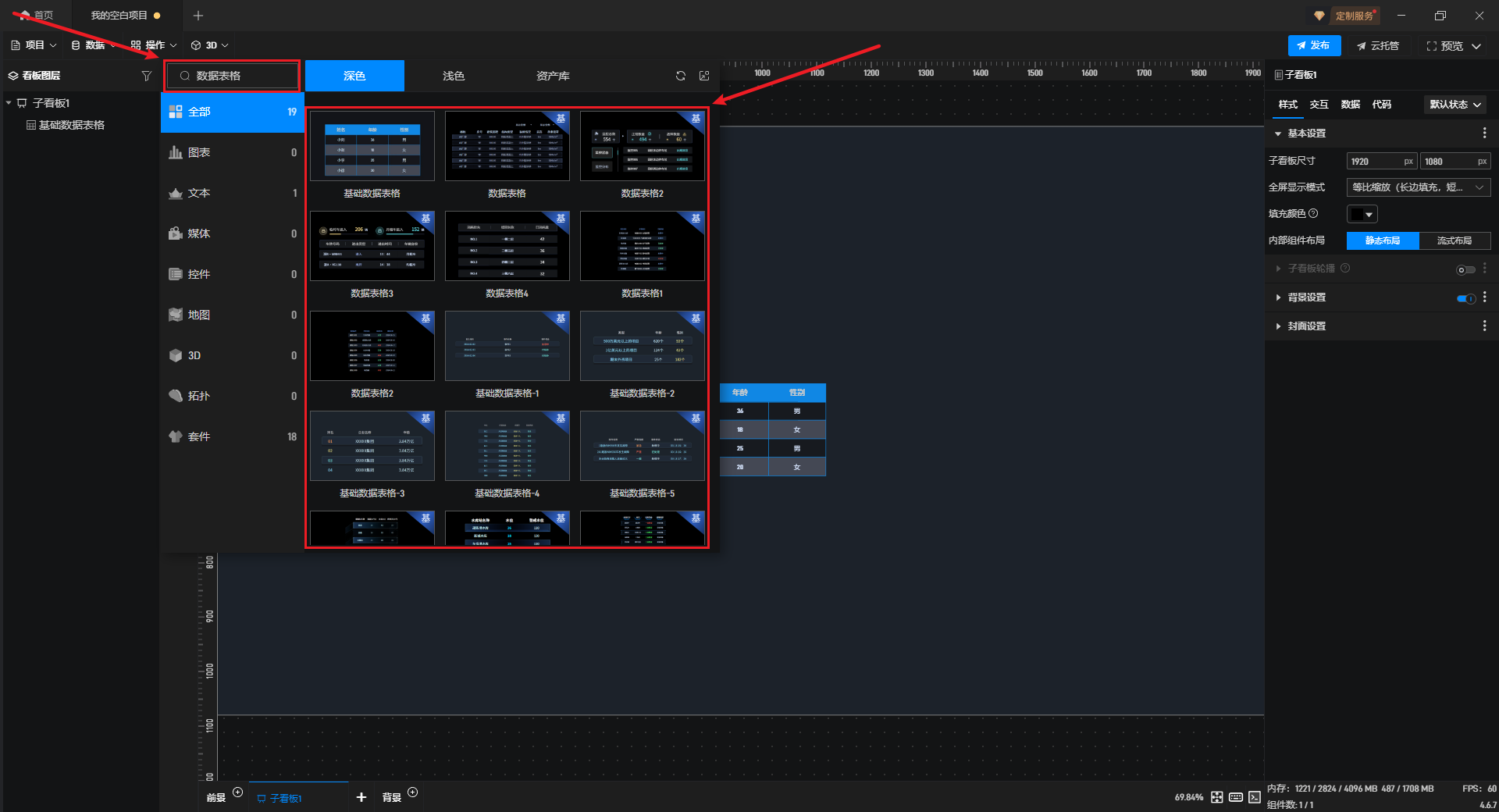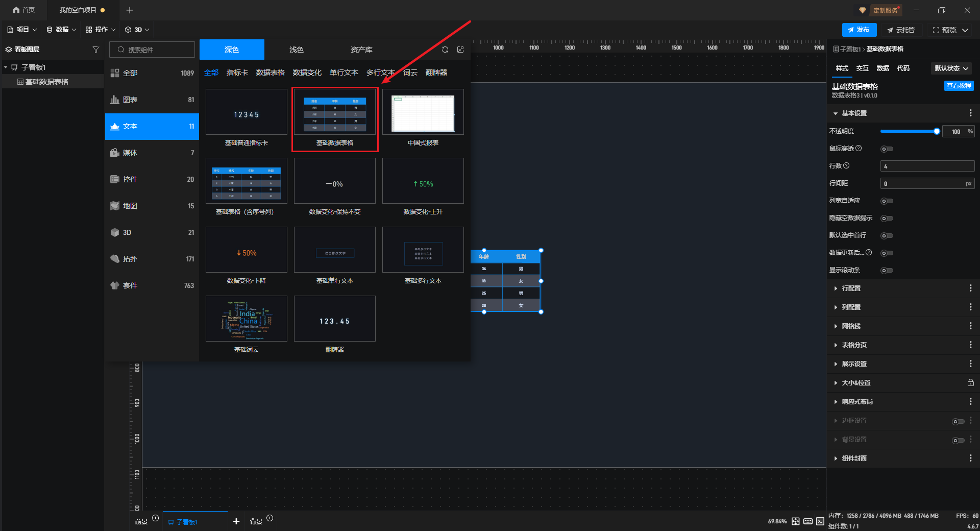 基础数据表格是数据表格组件的一种预设样式,在组件的使用过程中,我们可以按照以下步骤进行设置: