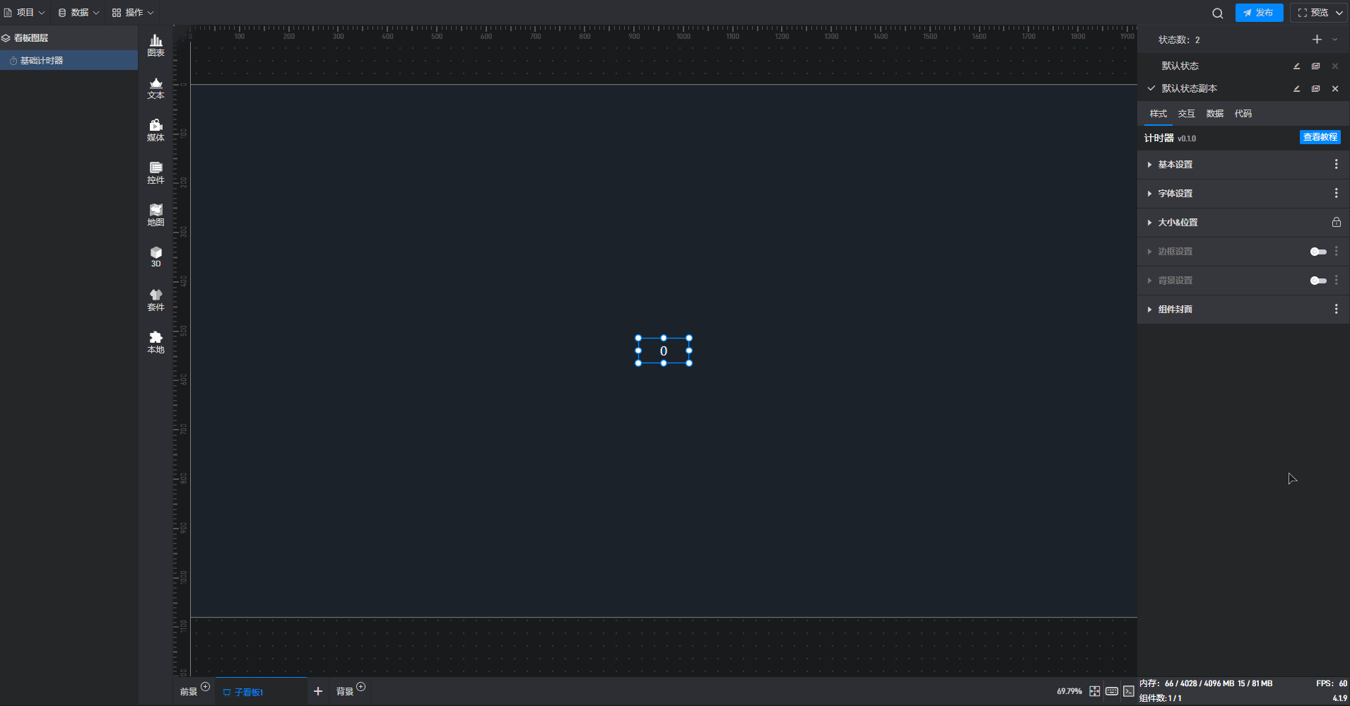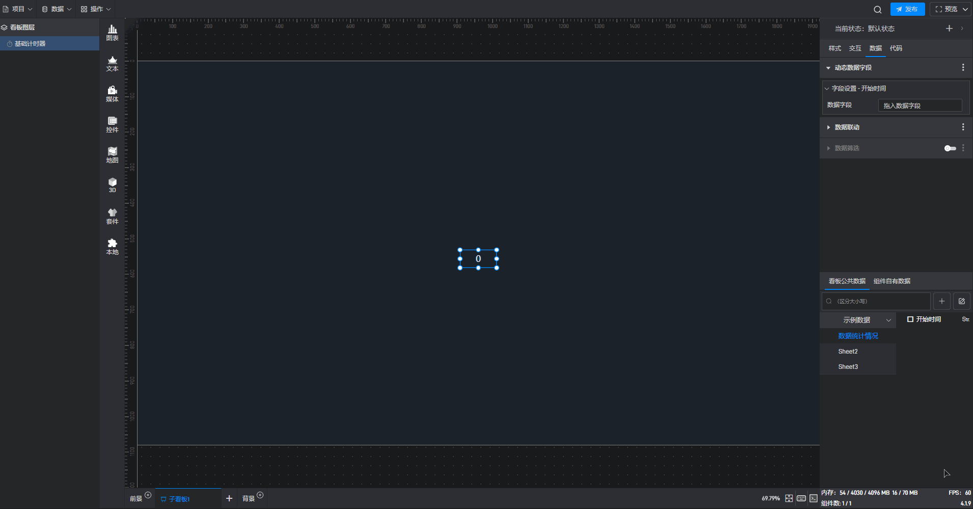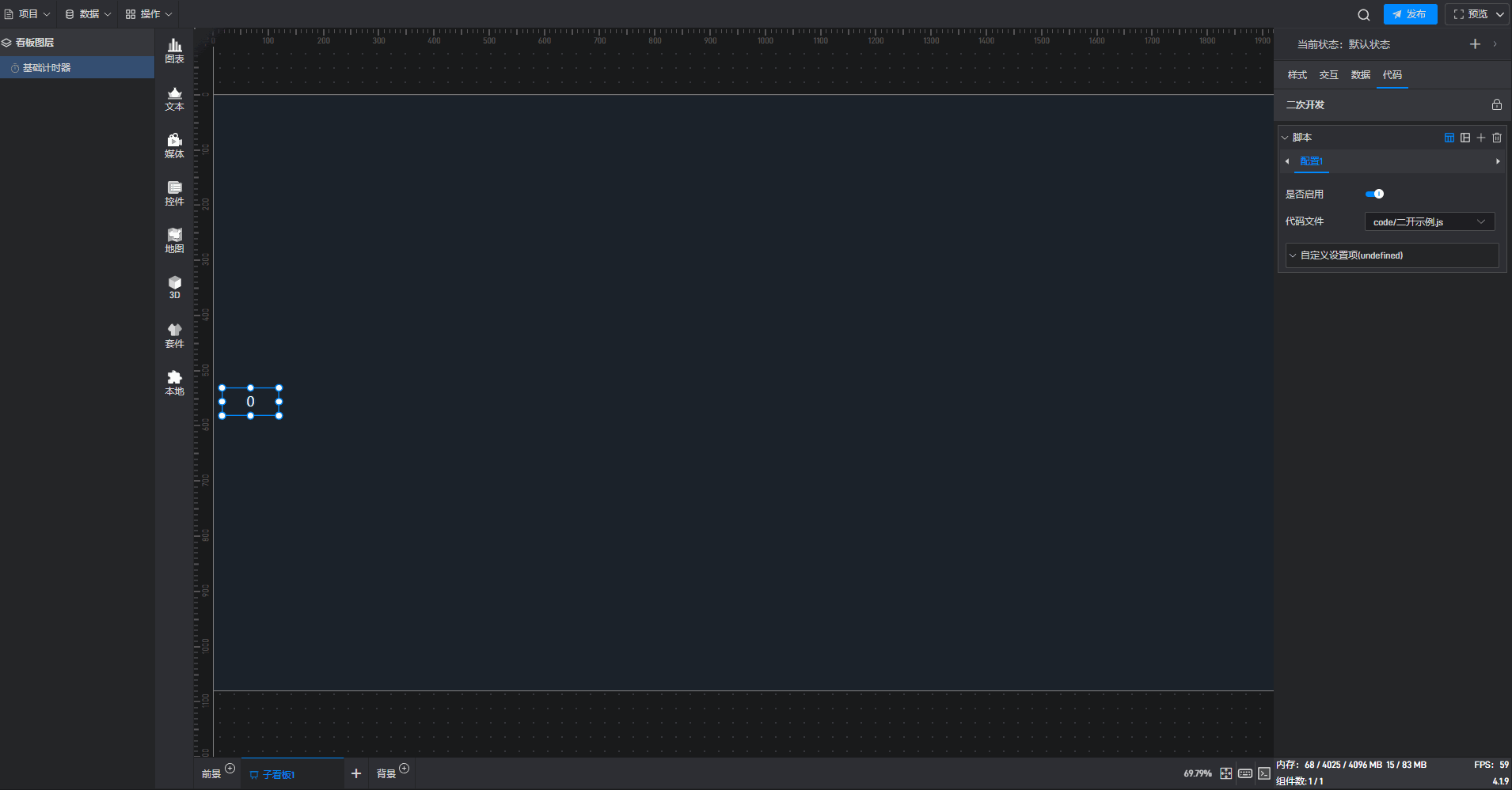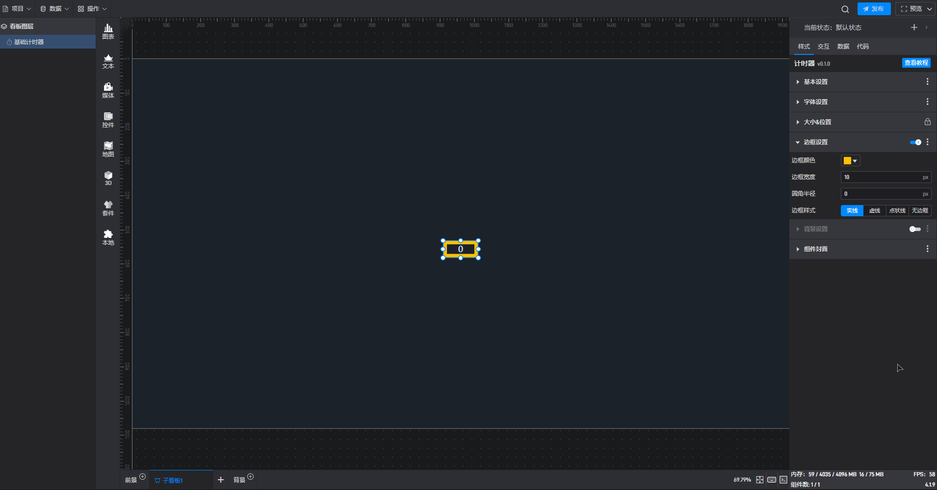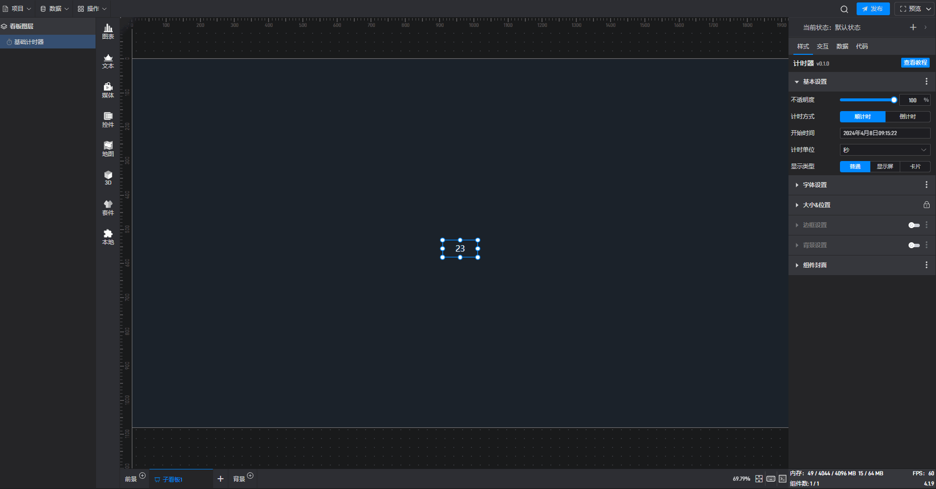 基础计时器组件可直接使用软件自带计时器系统,也可以通过数据字段控制计时器。