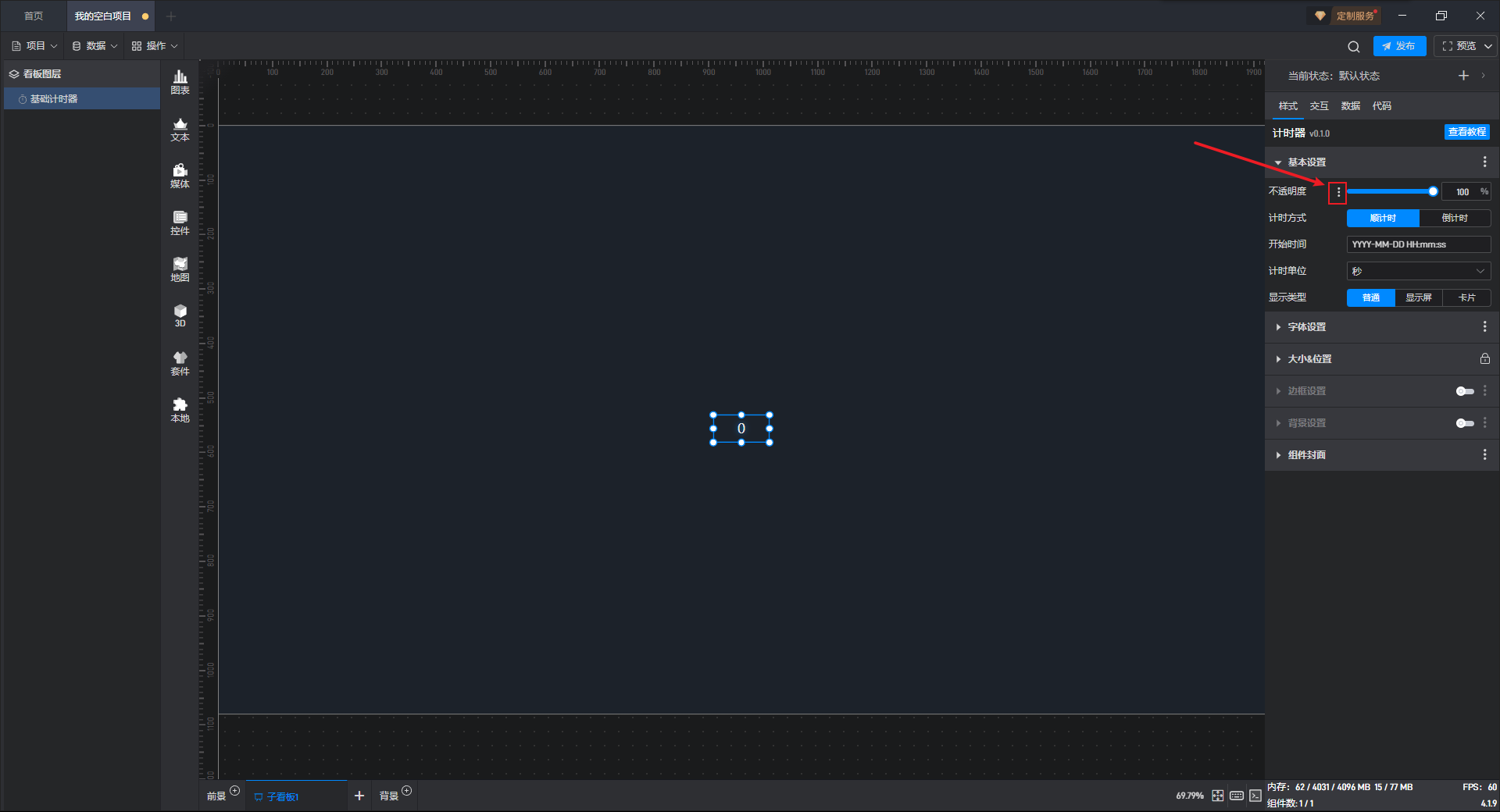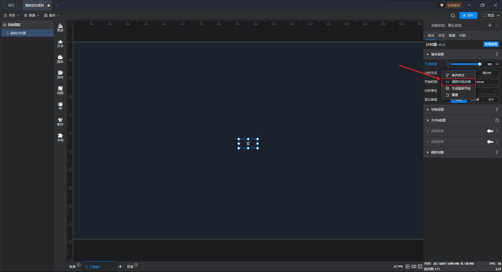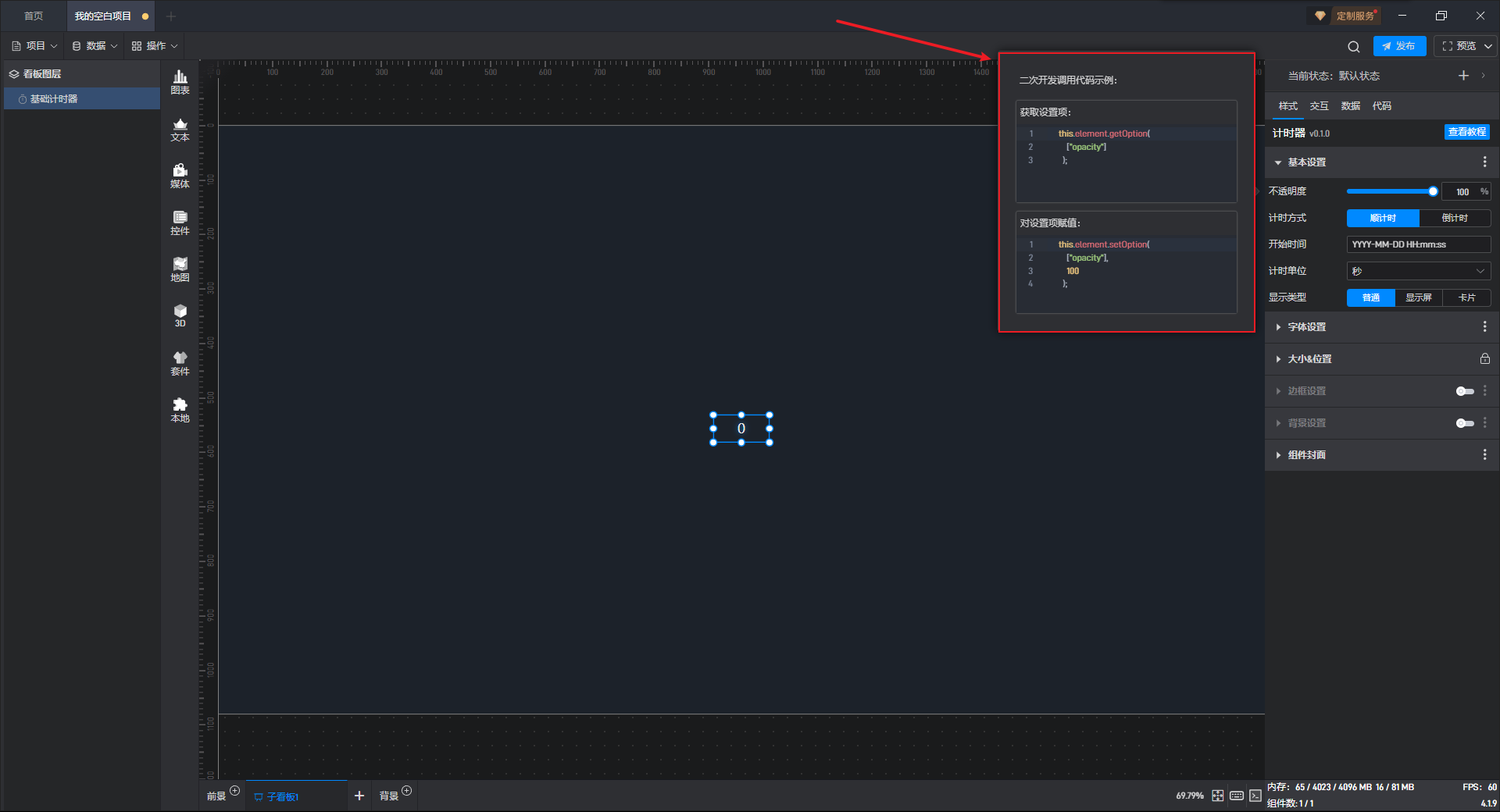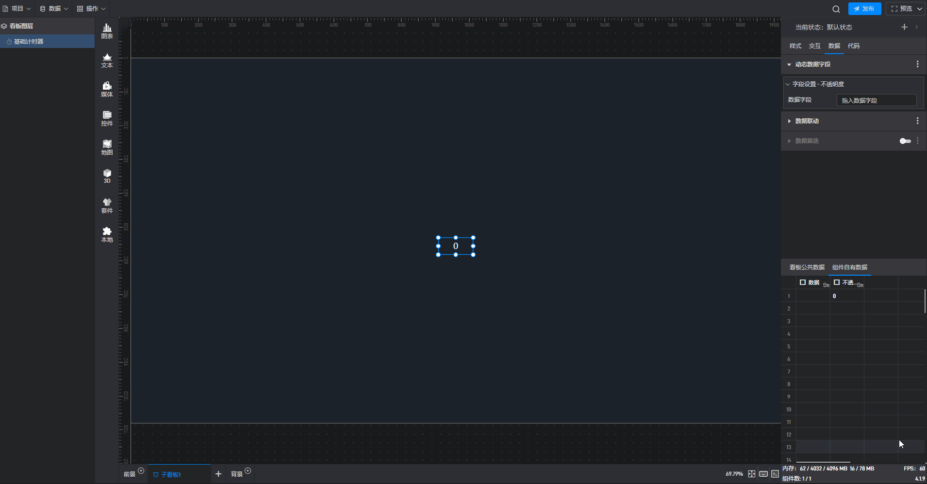 基础计时器组件可直接使用软件自带计时器系统,也可以通过数据字段控制计时器。