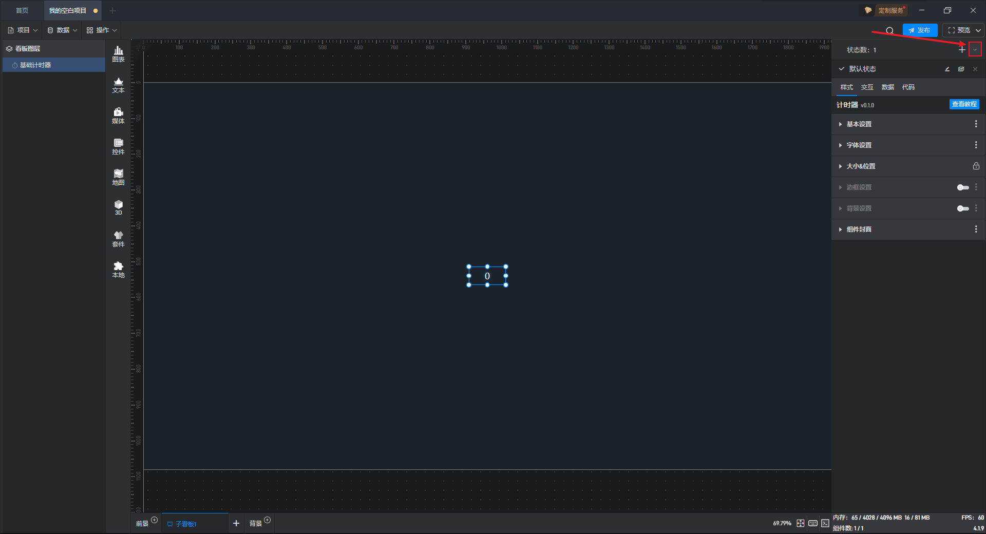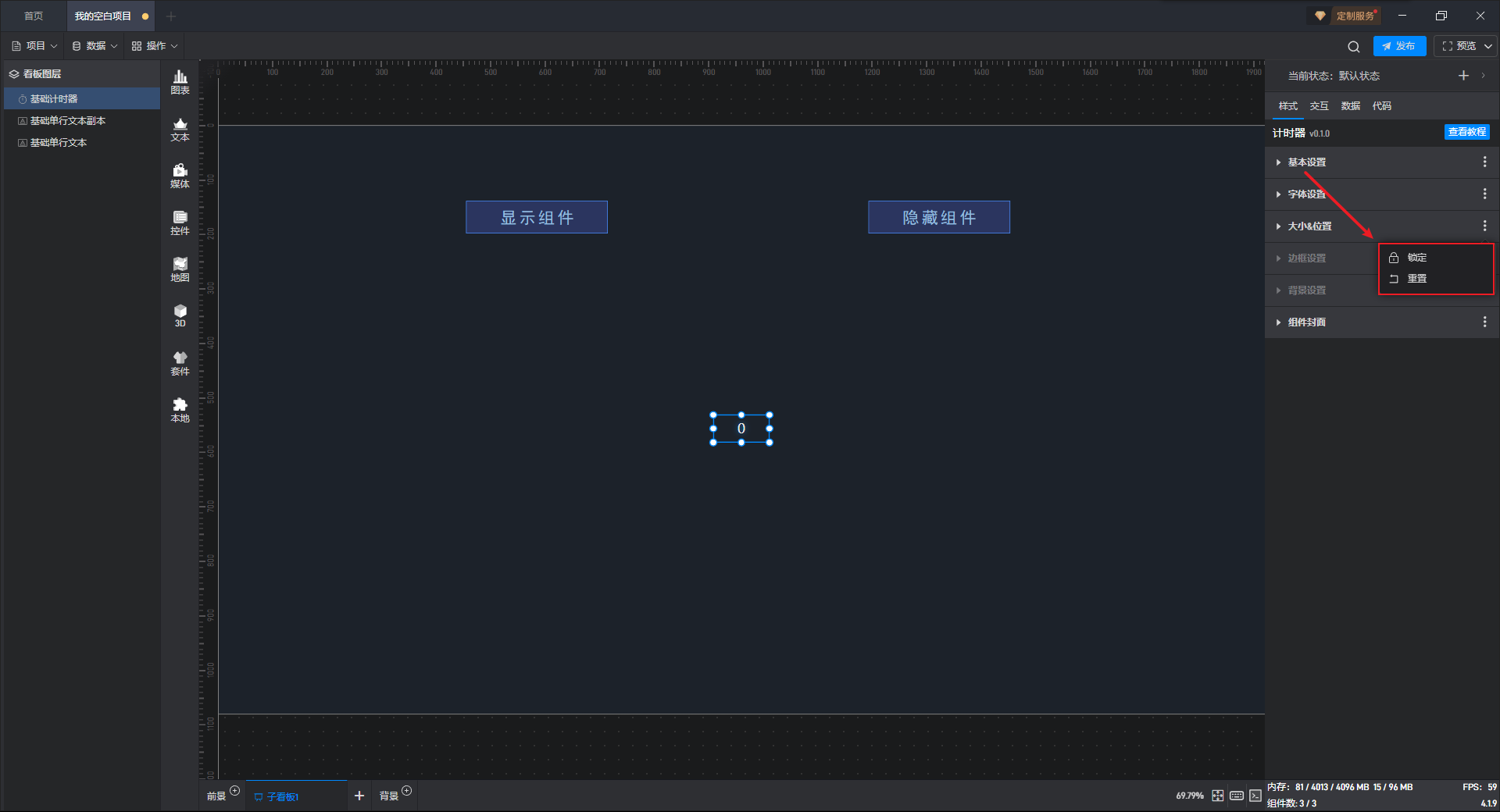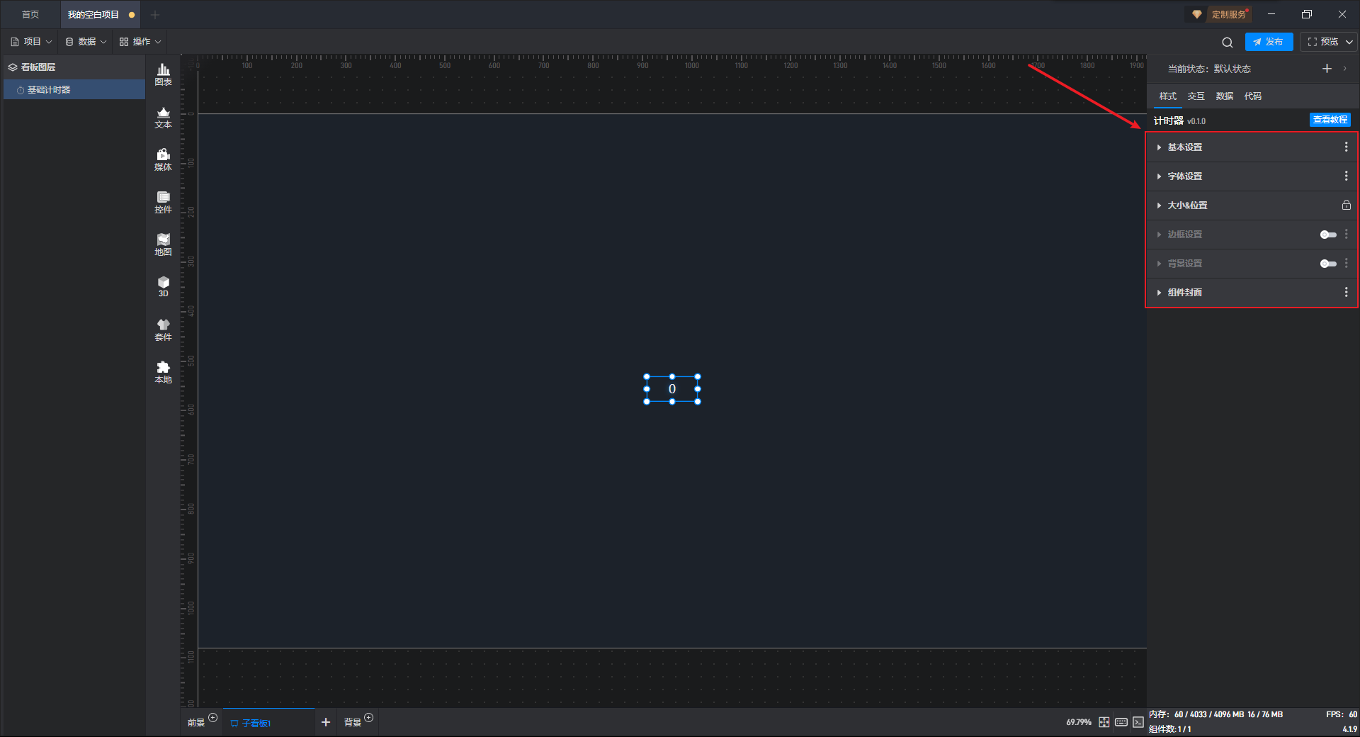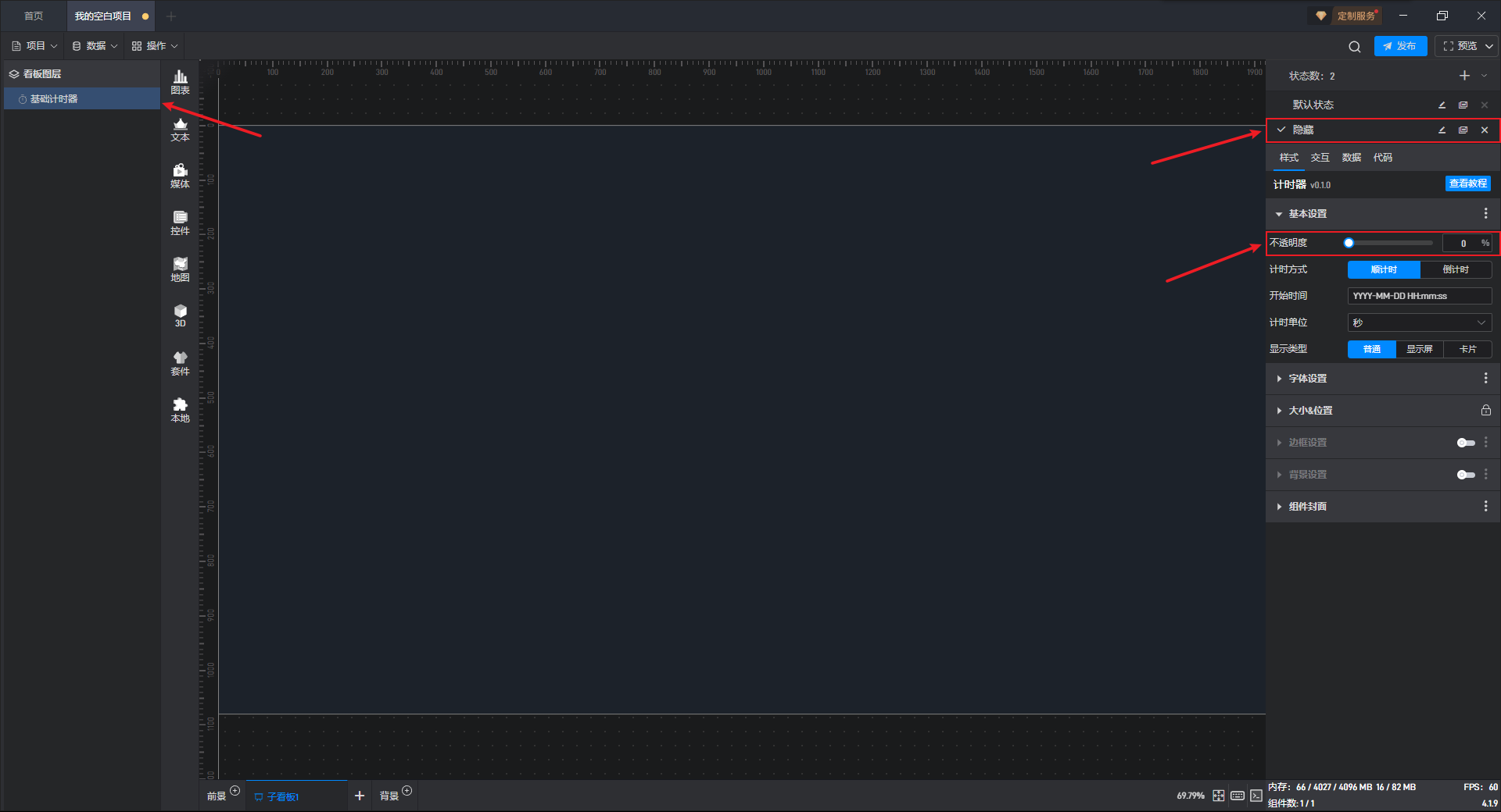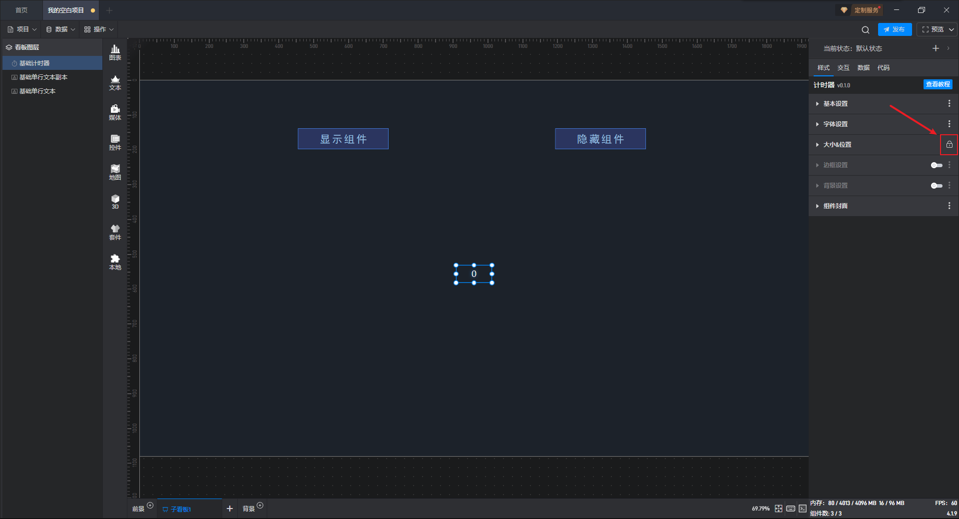 基础计时器组件可直接使用软件自带计时器系统,也可以通过数据字段控制计时器。