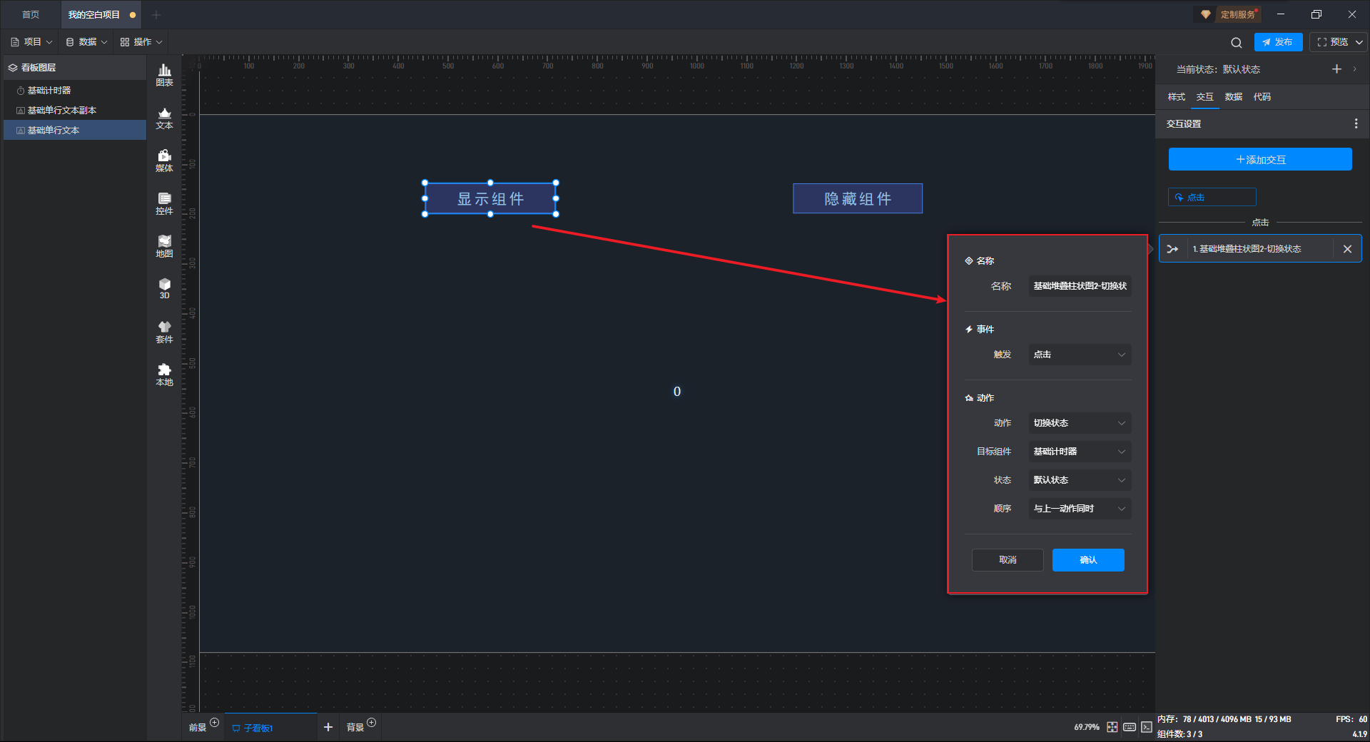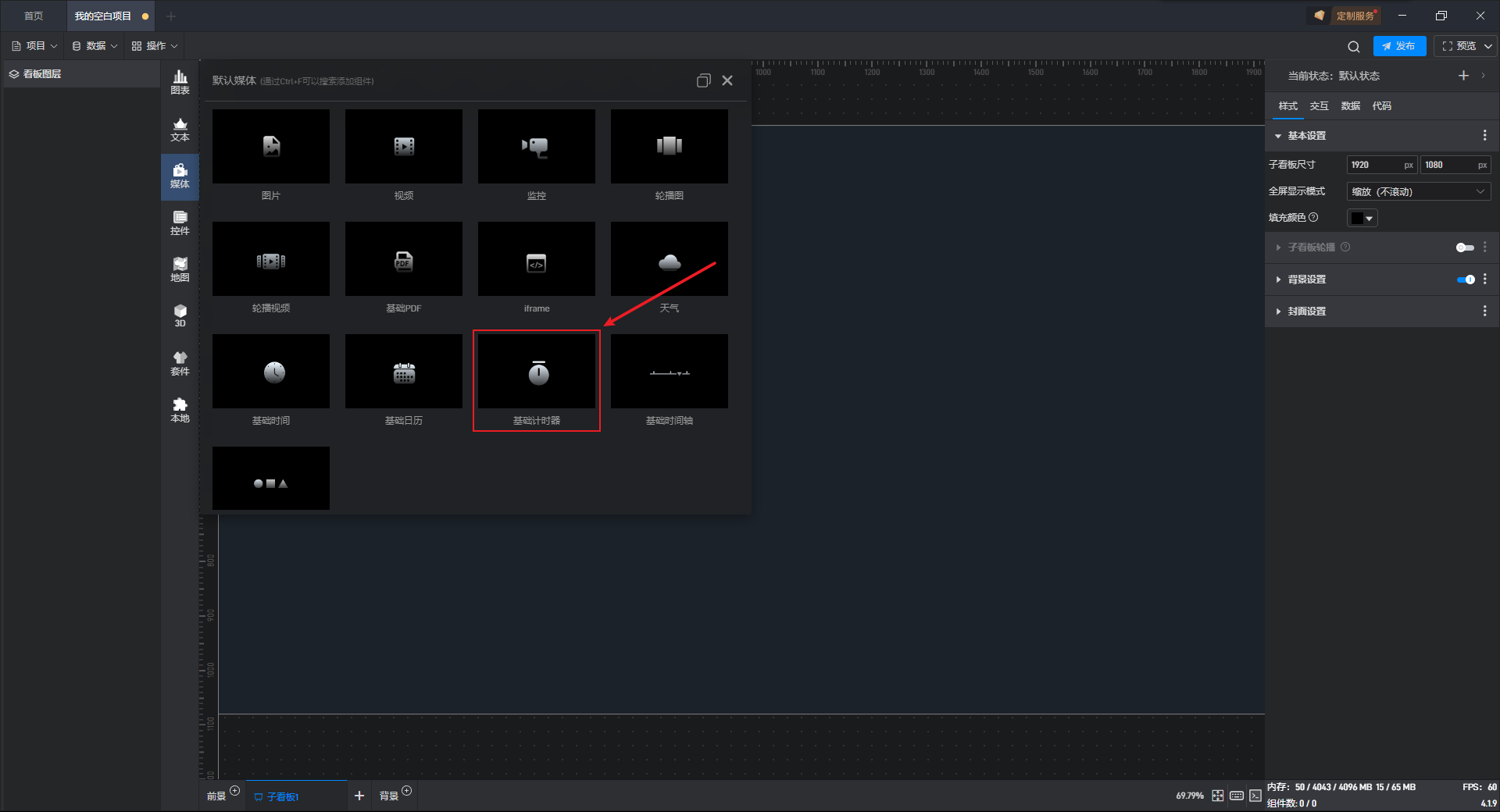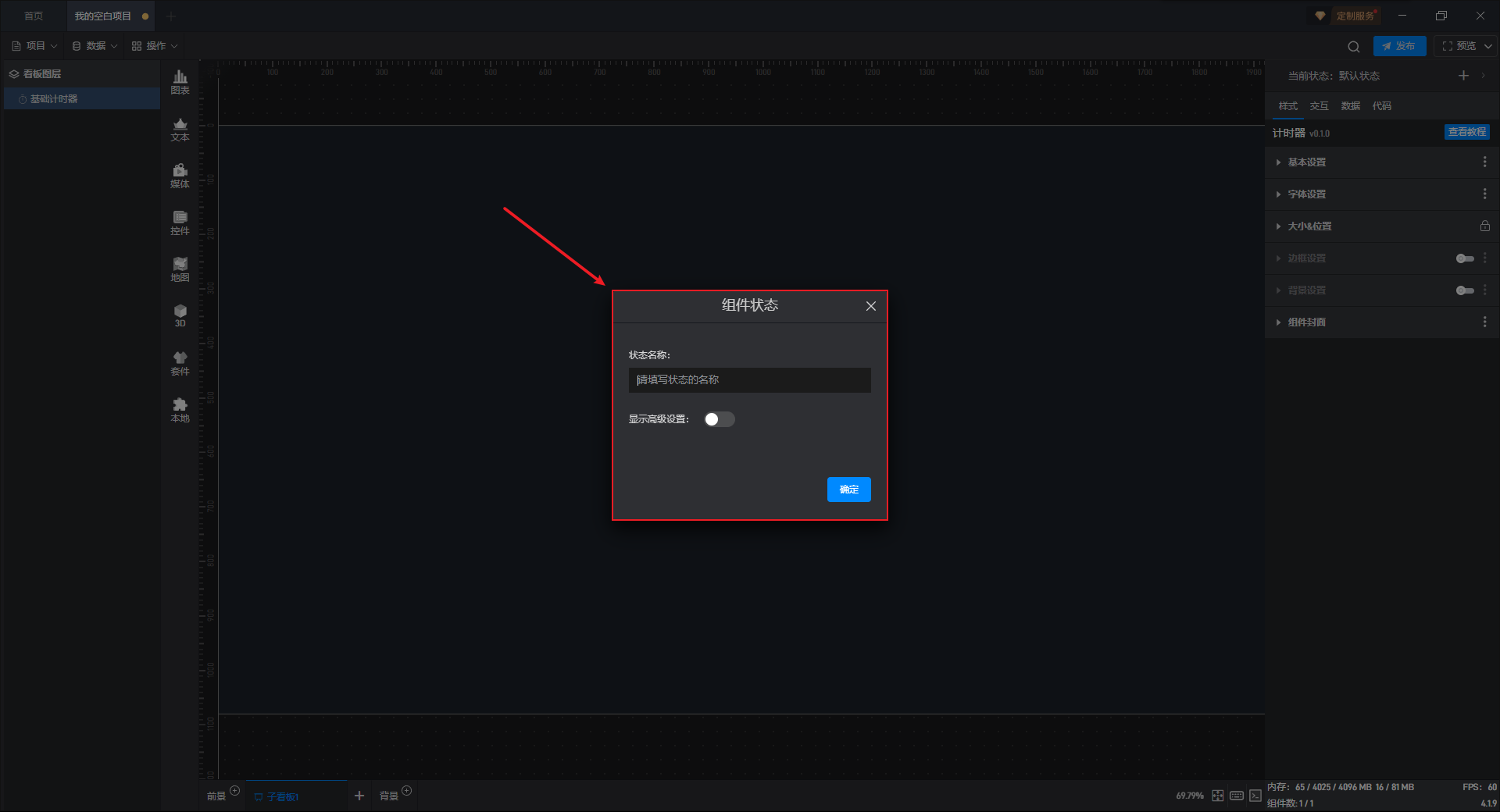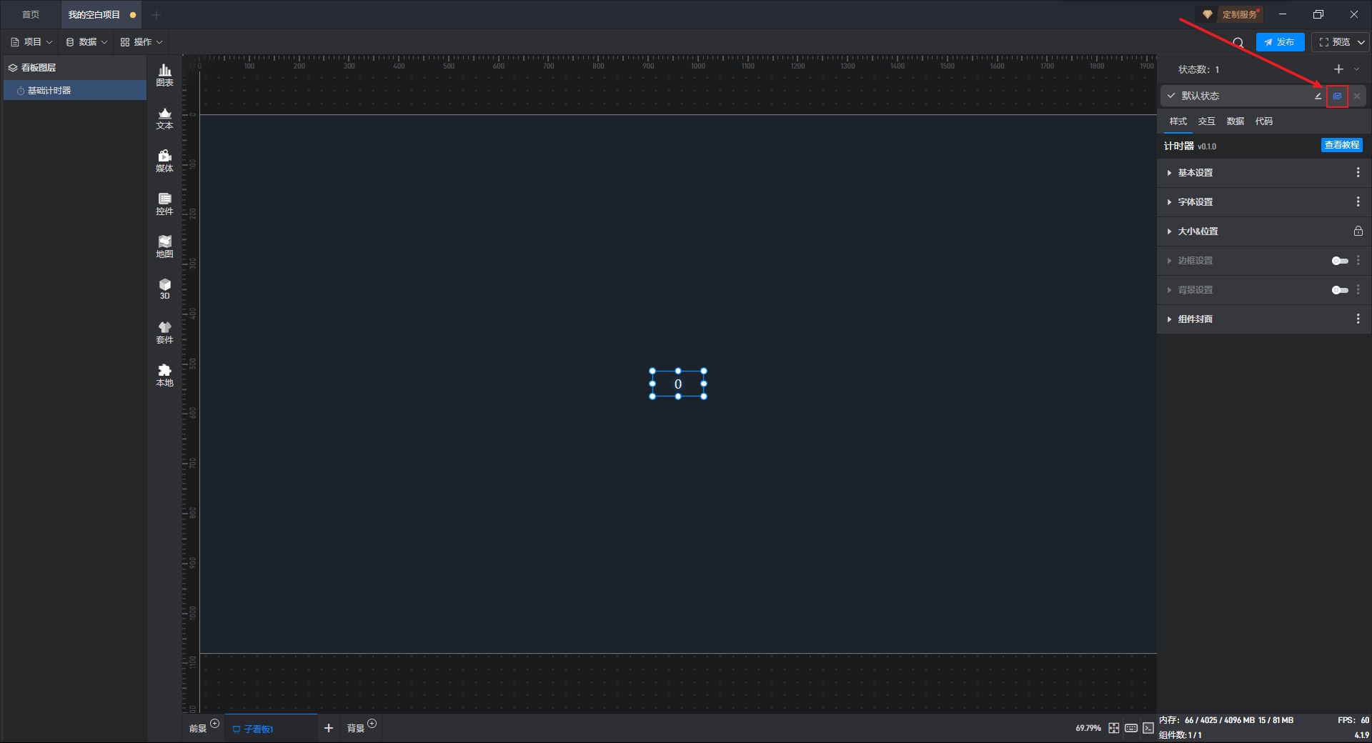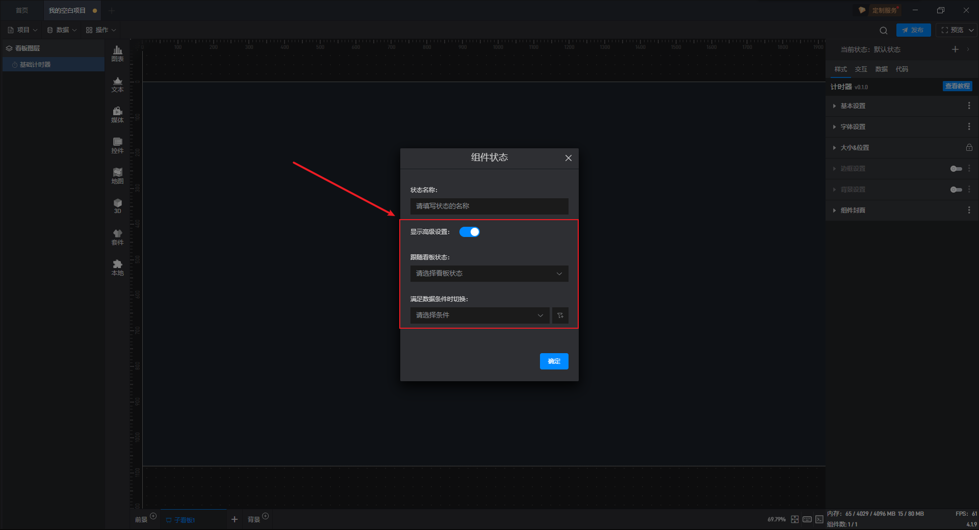 基础计时器组件可直接使用软件自带计时器系统,也可以通过数据字段控制计时器。