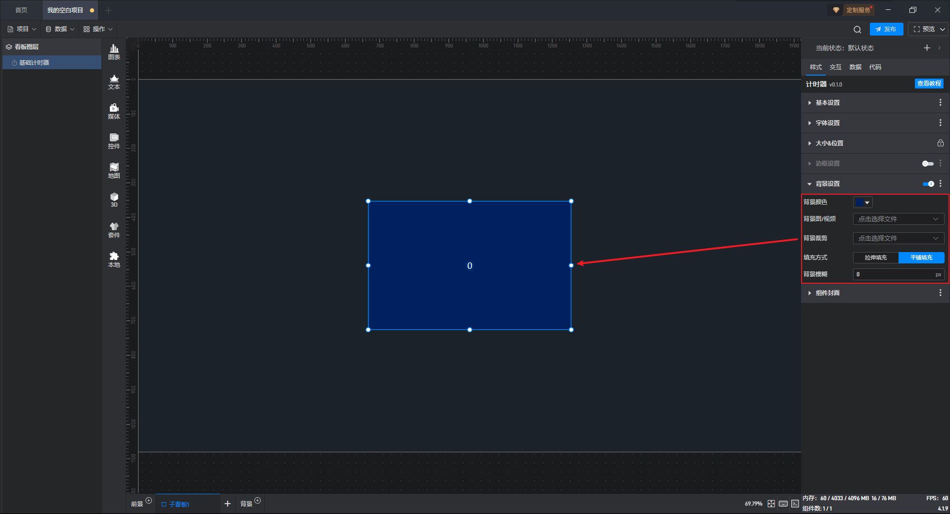 组件默认没有背景颜色,如果需要设置背景颜色,需要先开启“背景设置”项按钮。