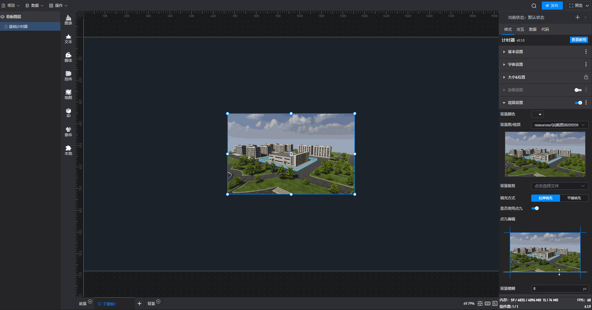 | 背景图/视频 | 可在此处添加本地图片或视频,充当组件背景。 |