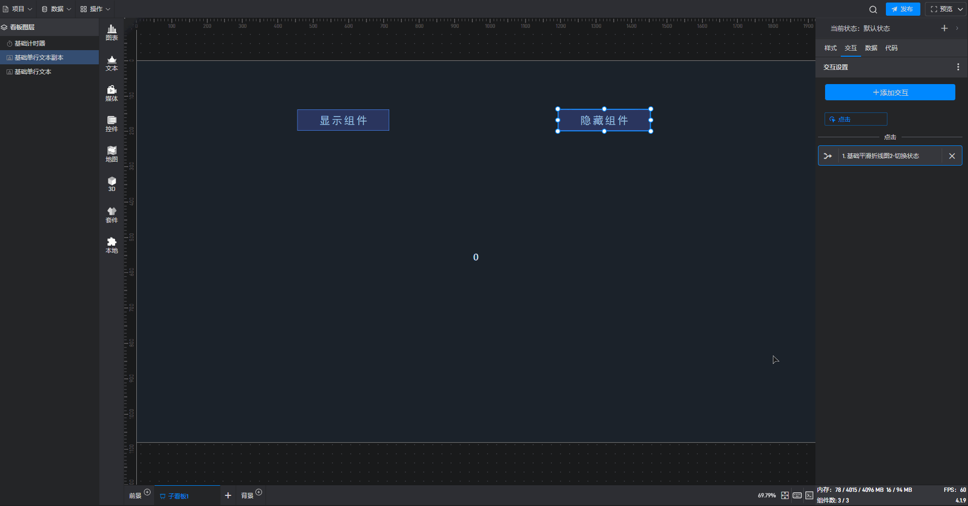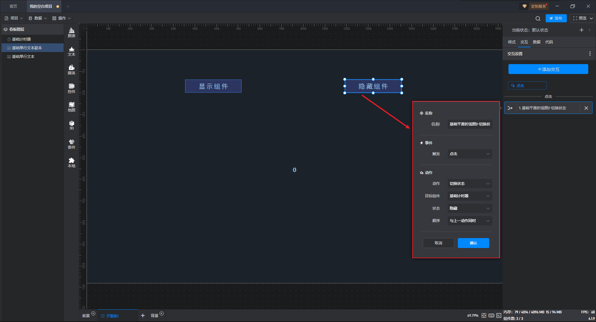给隐藏按钮组件添加一个交互,点击后切换计时器组件到隐藏状态。