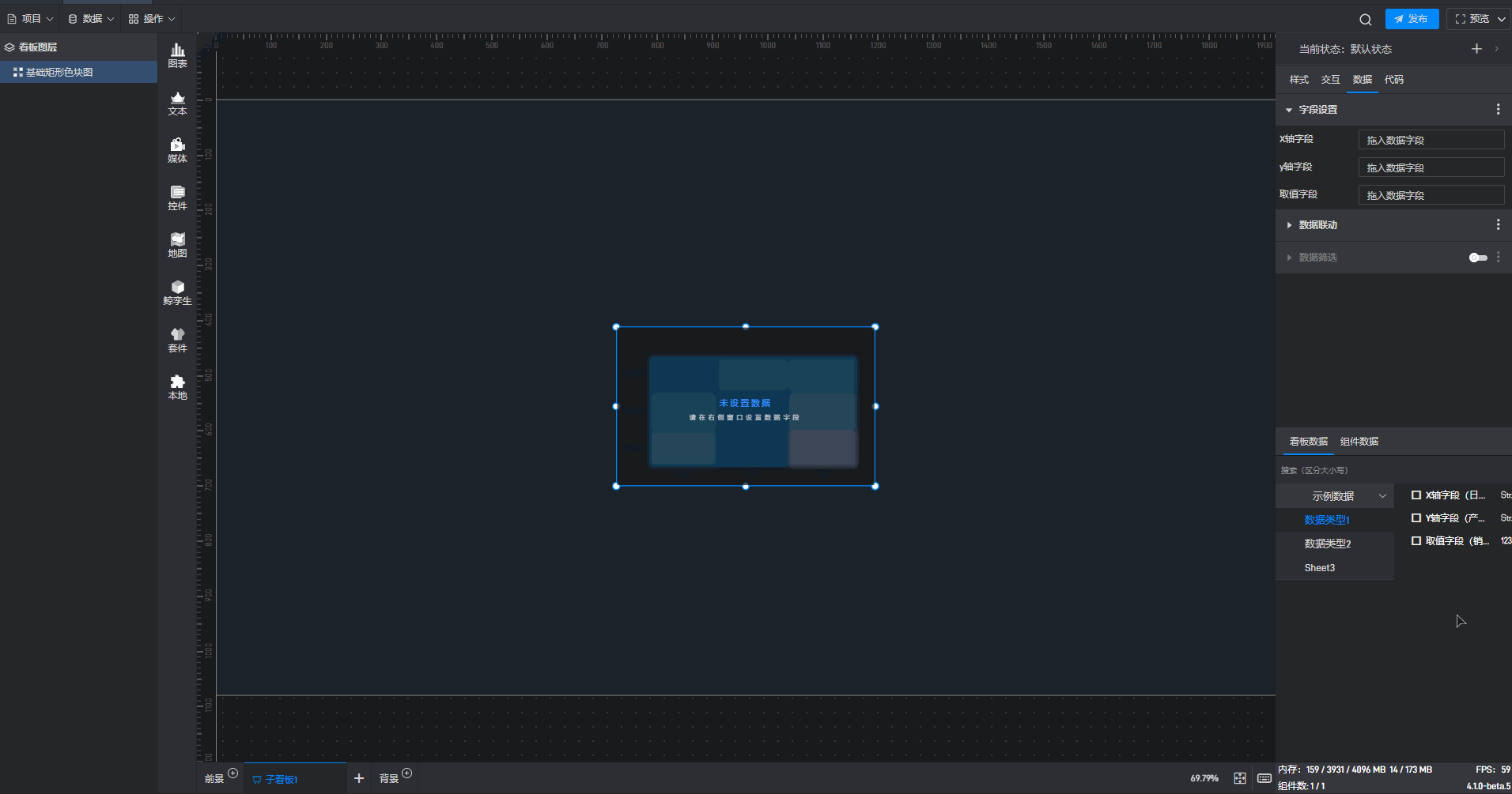 删除当前字段后,右侧字段栏为空,同时组件会提示“未设置数据”