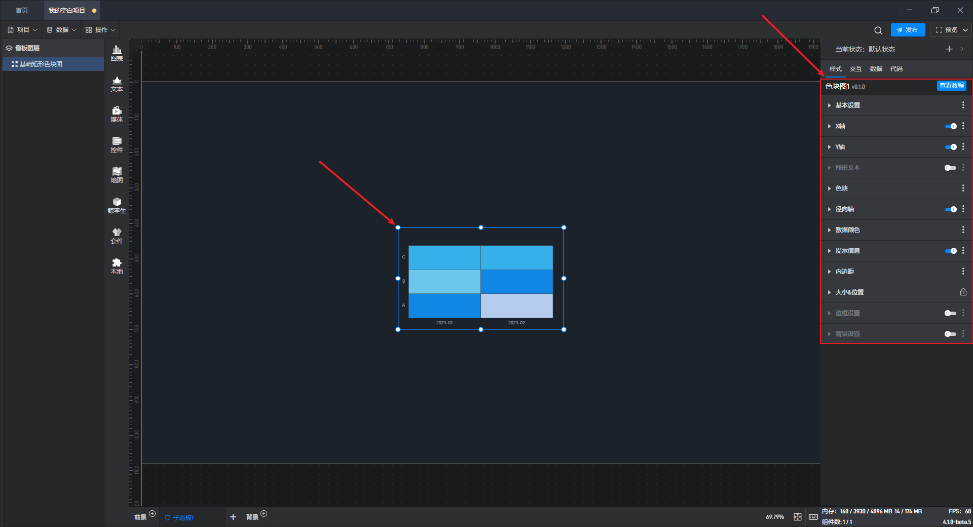 基础矩形色块图 图形文本设置样式,如下图所示: