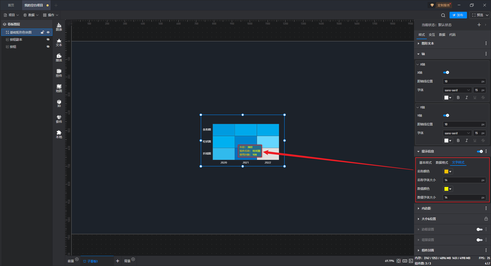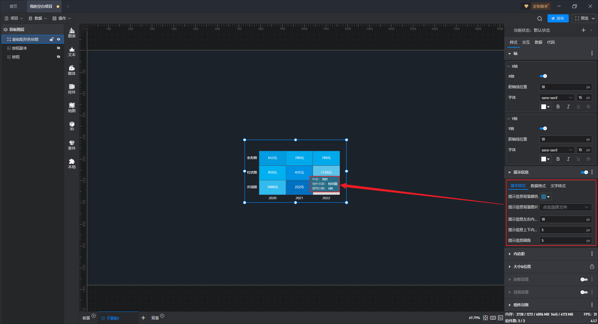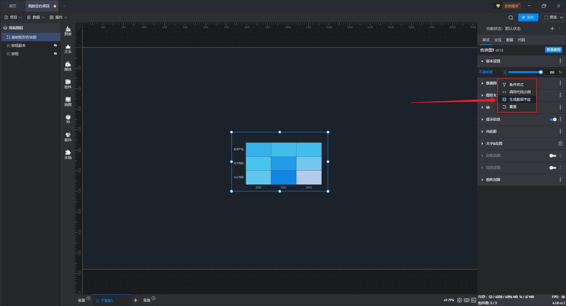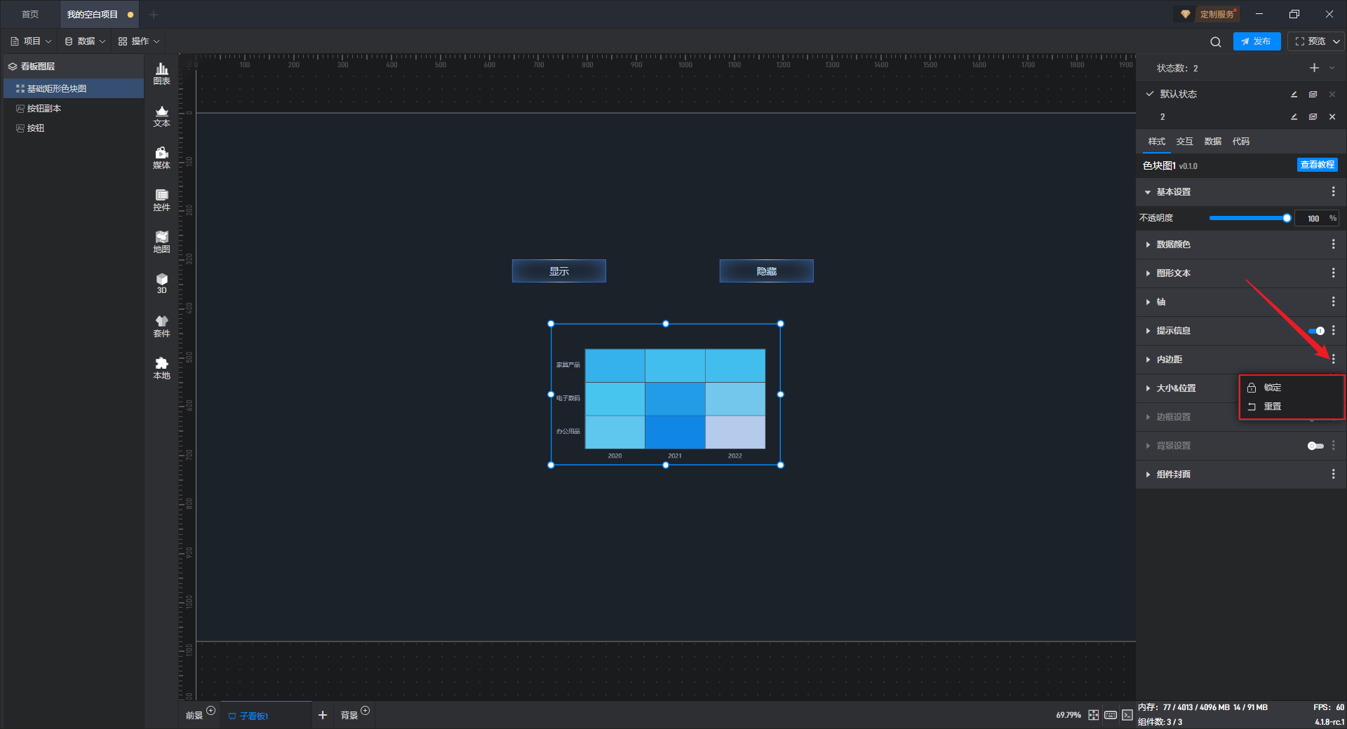 所谓固定样式,就是设置完之后一直保持的组件样式,这是和 3.2 章节中的条件样式相对应的,条件样式就是根据数据的变化改变组件的样式。