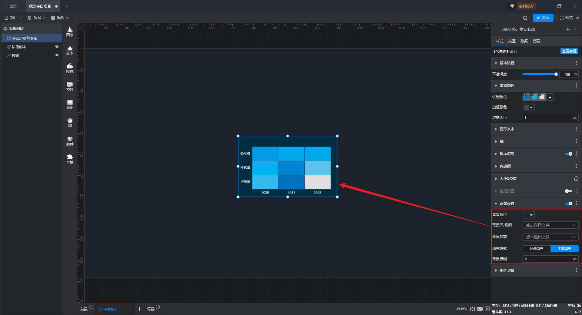组件默认没有背景颜色,如果需要设置背景颜色,需要先开启“背景设置”项按钮。