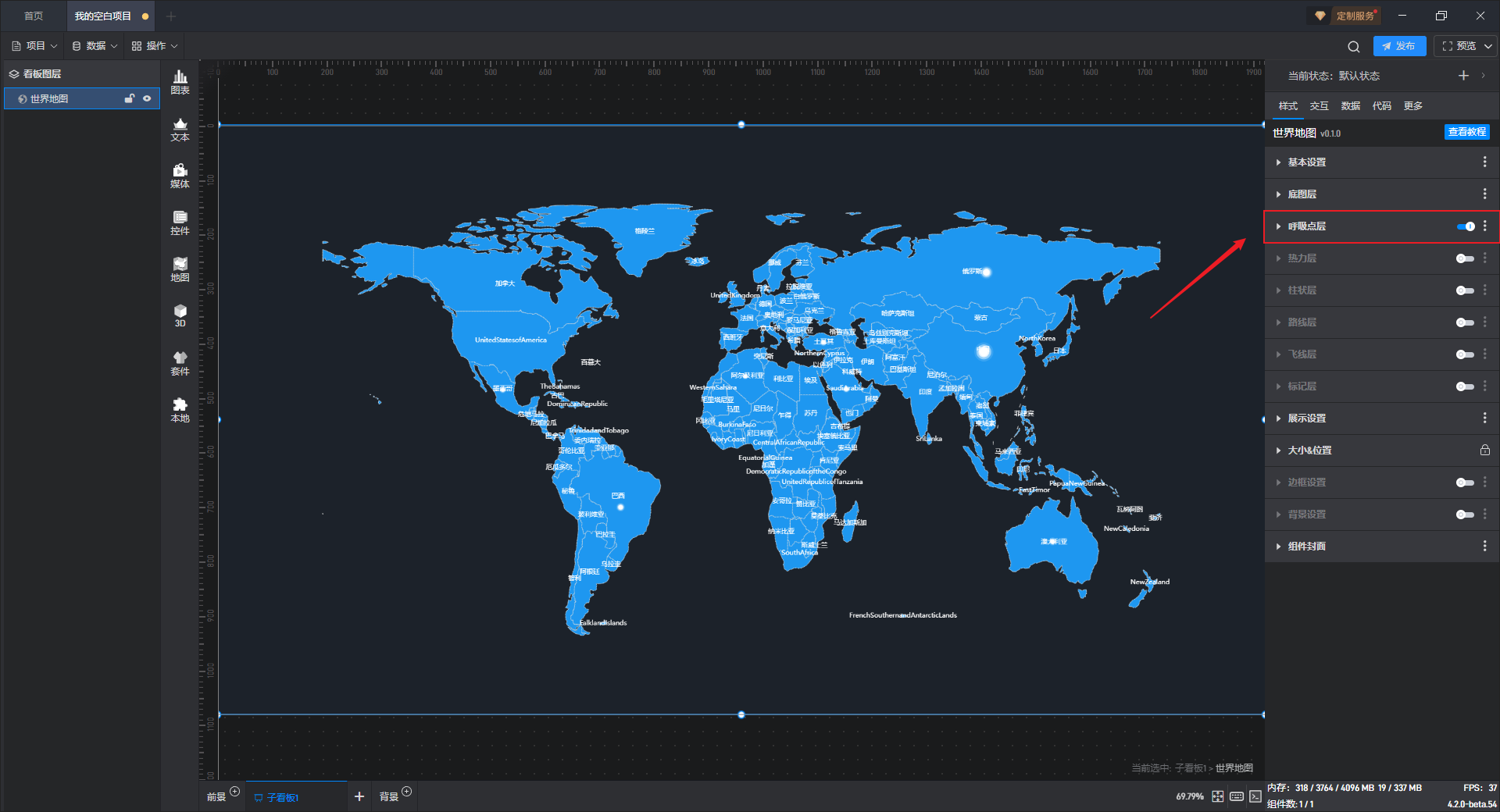 勾选数据后,需要在“样式”中开启呼吸点层按钮,地图中才会显示呼吸点样式。