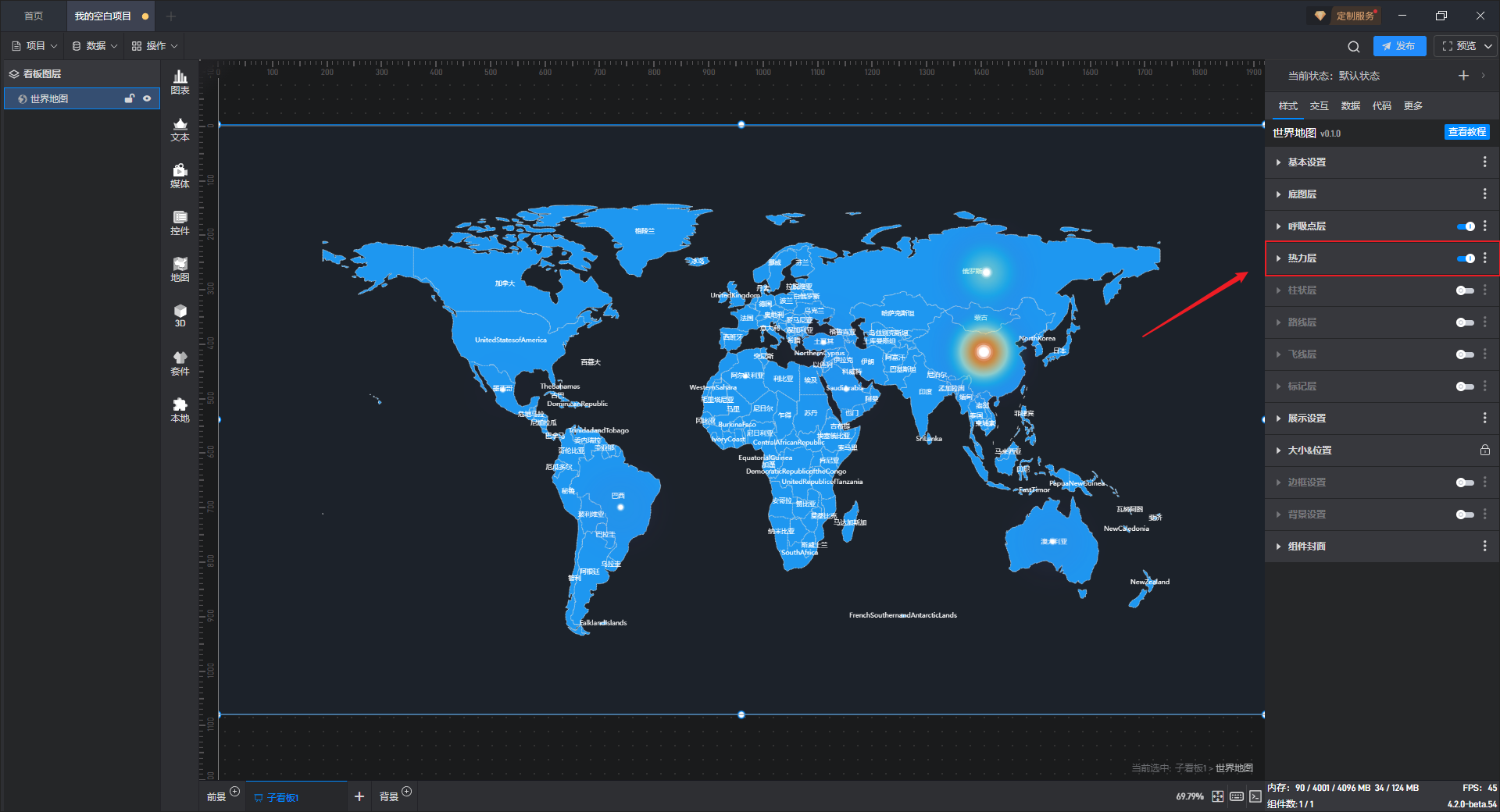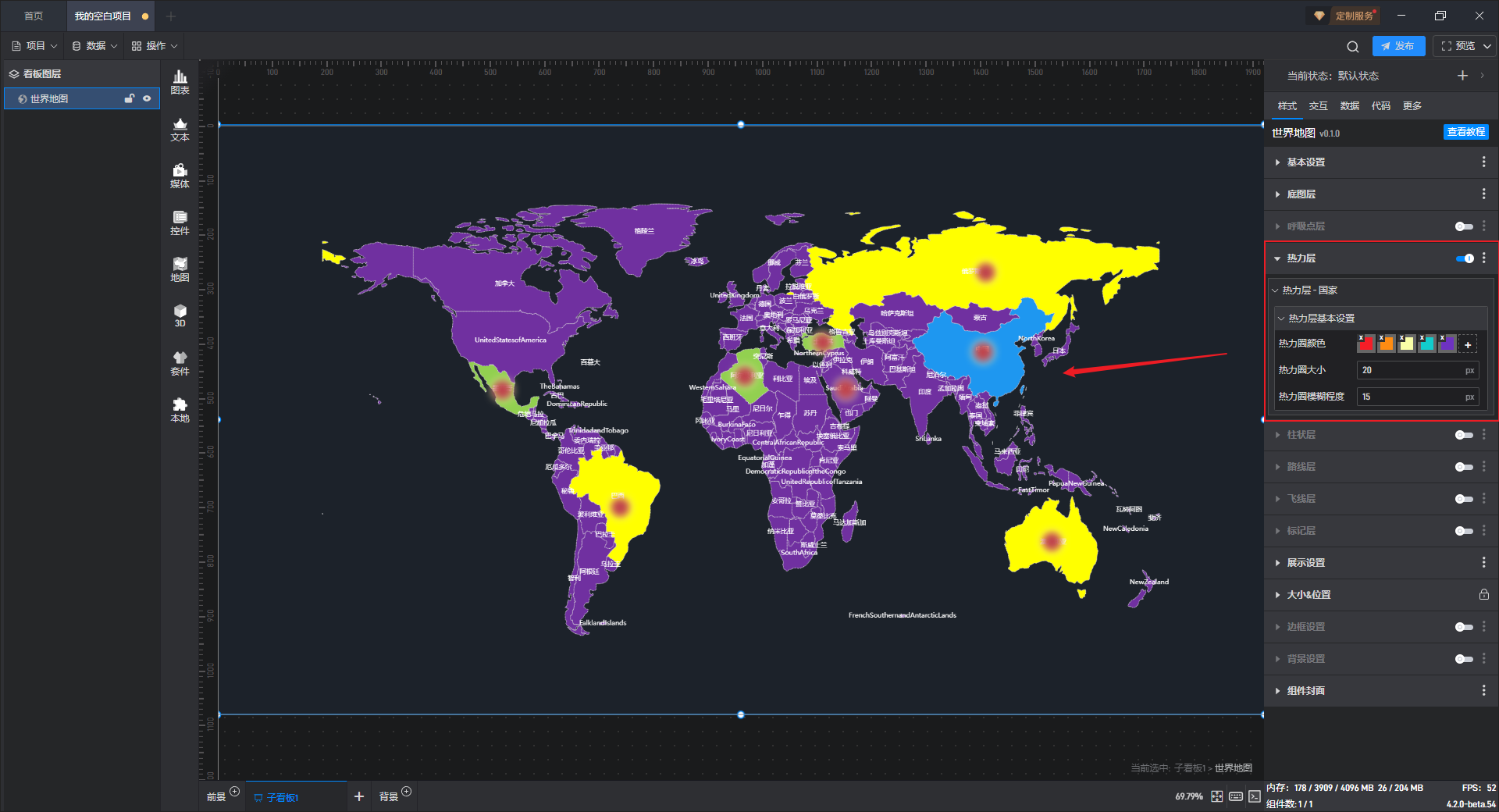 ** 世界地图 热力层字段设置**,如下图所示: