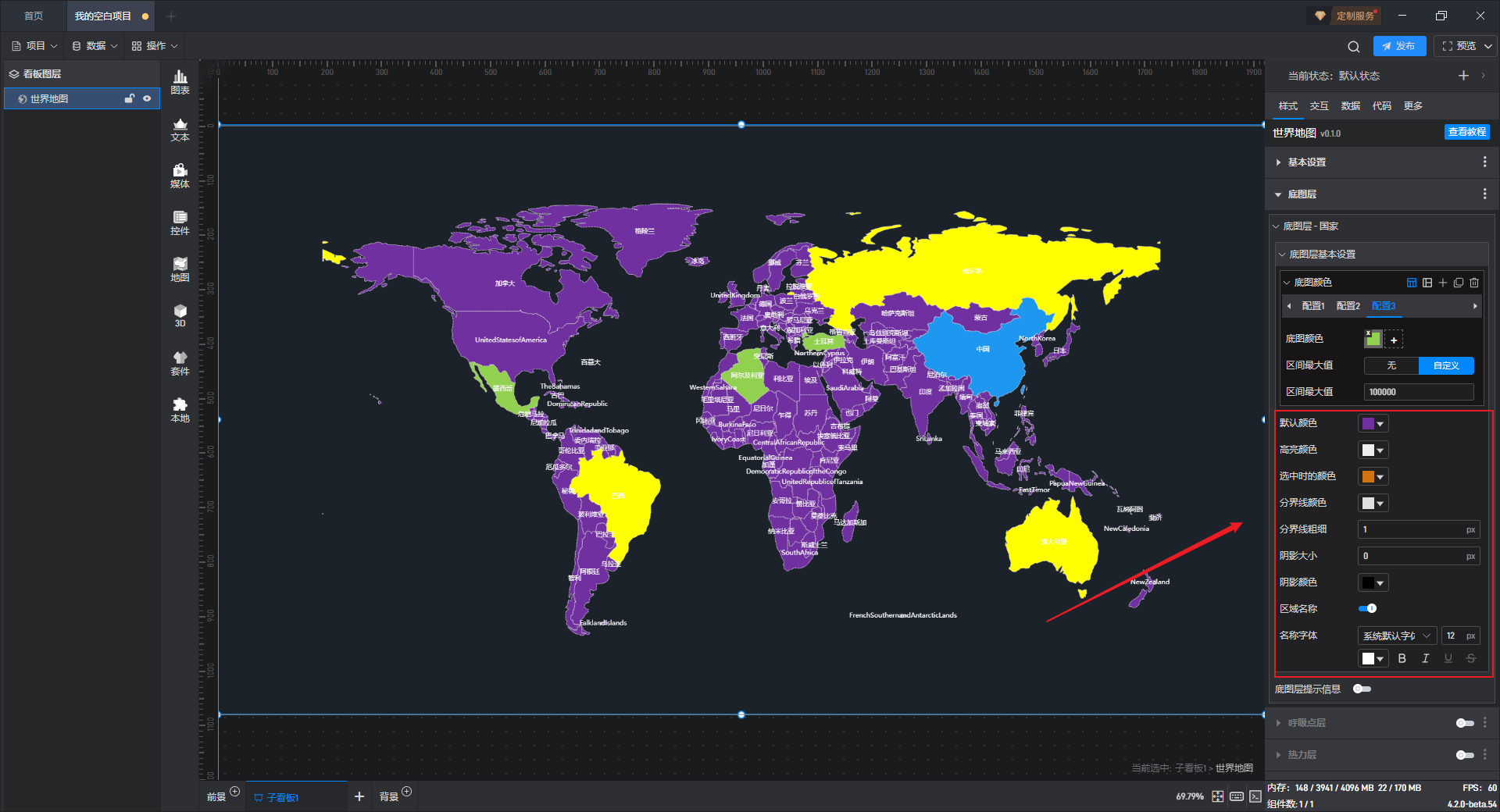 | 分界线粗细 | 自定义对地图中各区域之间的分界线粗细,默认“1px”。 |