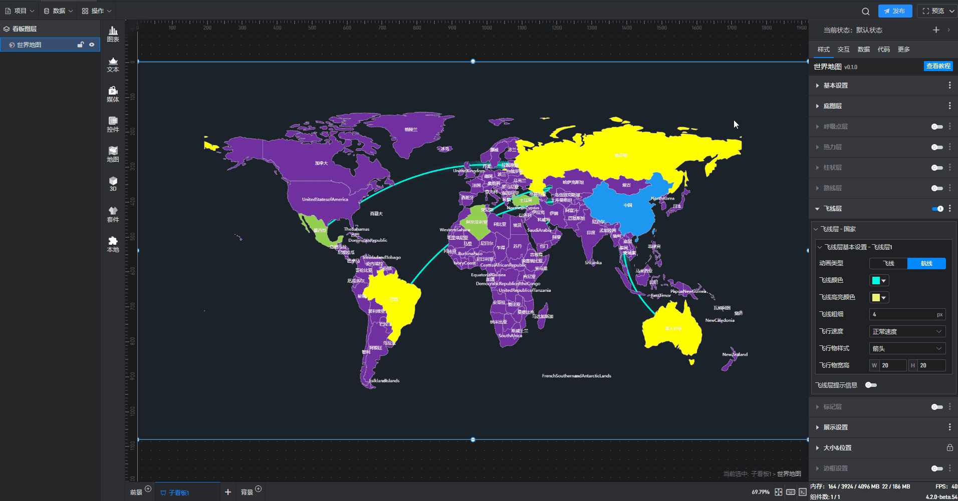 勾选数据后,需要在“样式”中开启飞线层按钮,地图中才会显示飞线样式。