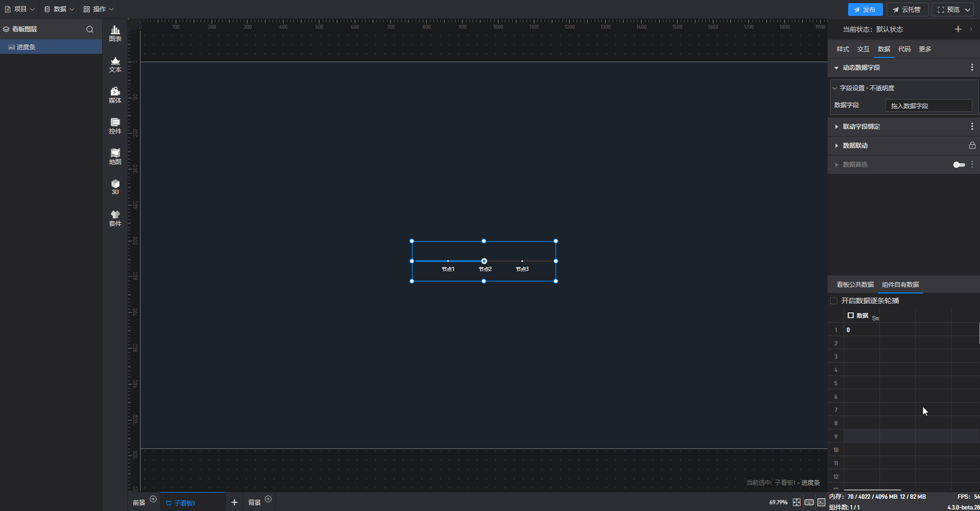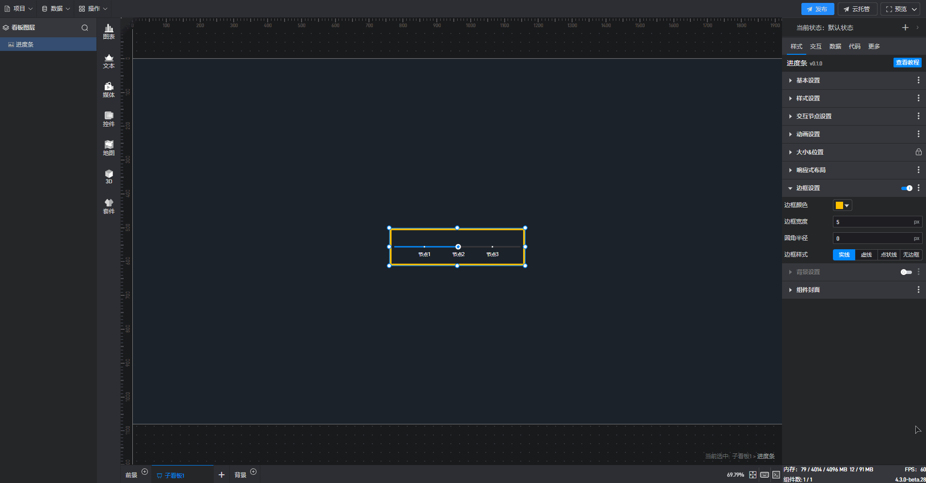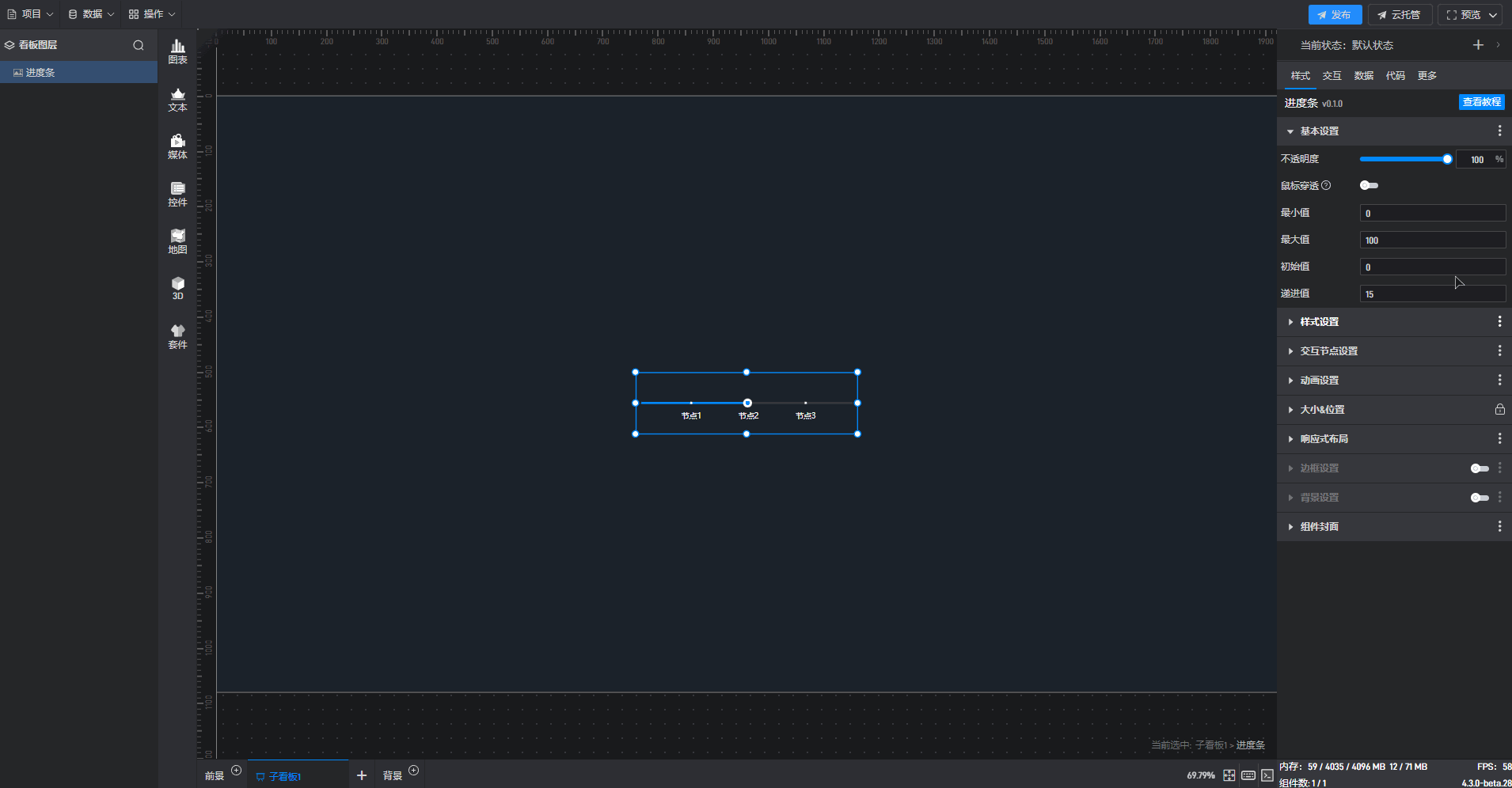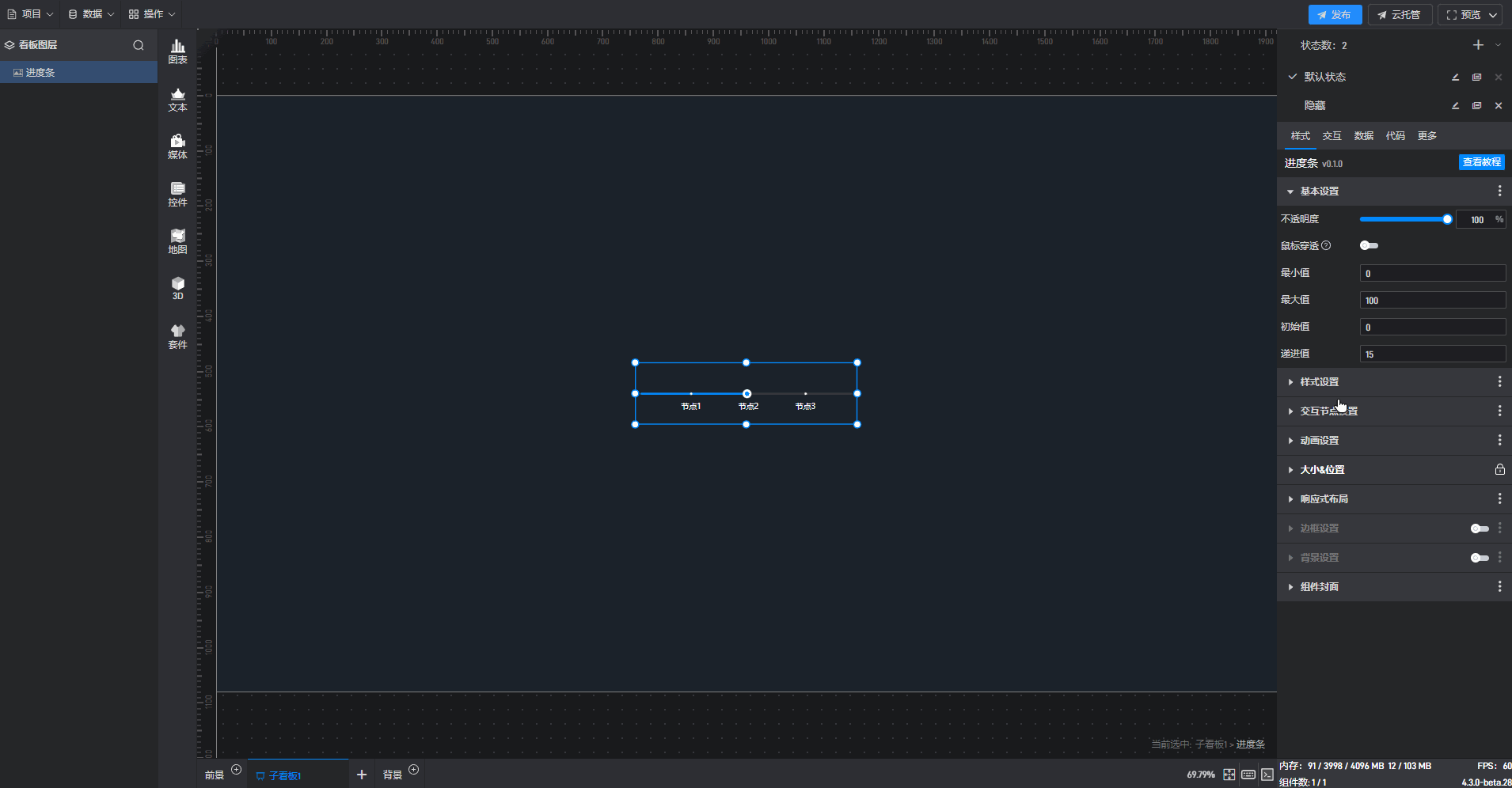 进度条组件的条件设置方式为第一种,具体步骤如下: