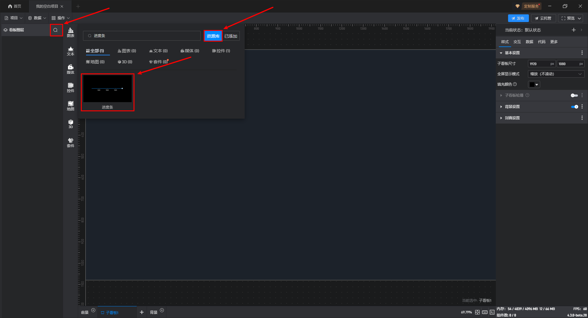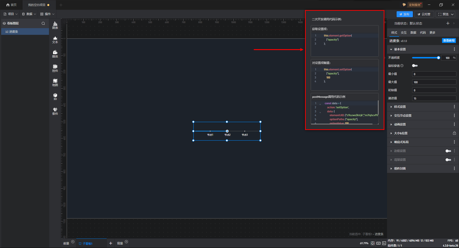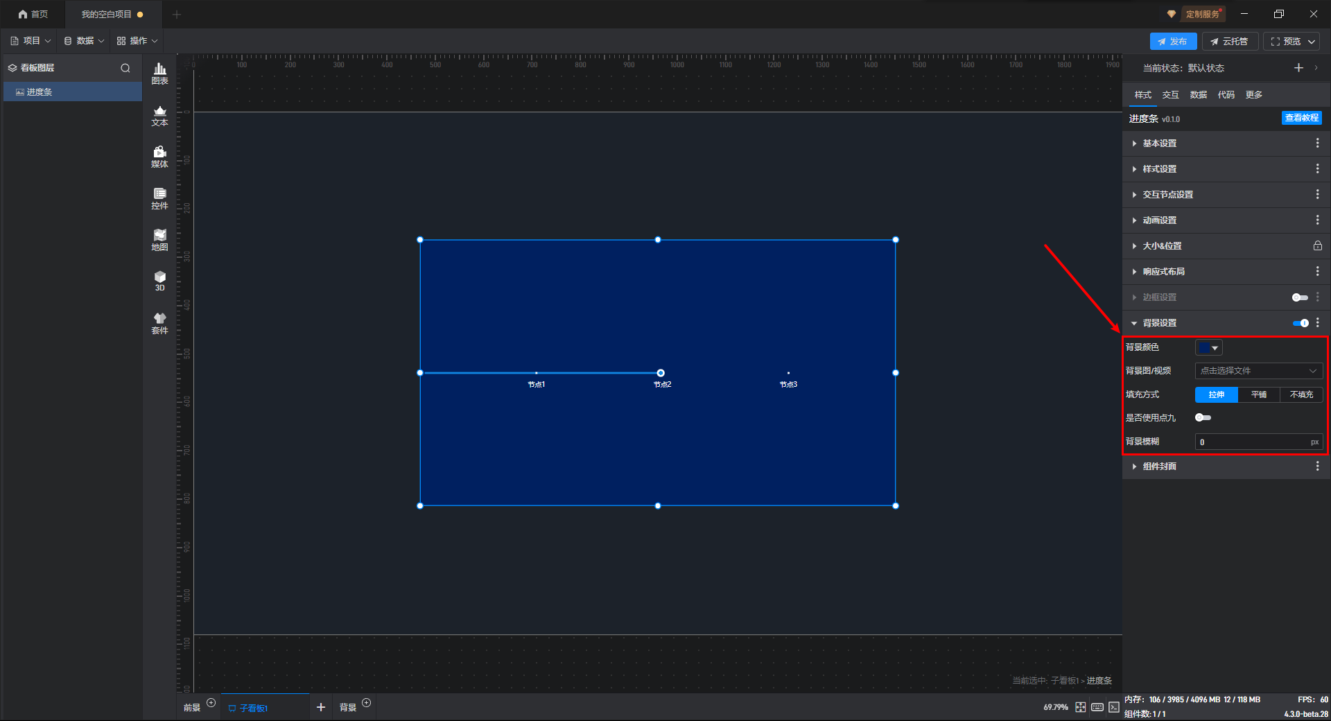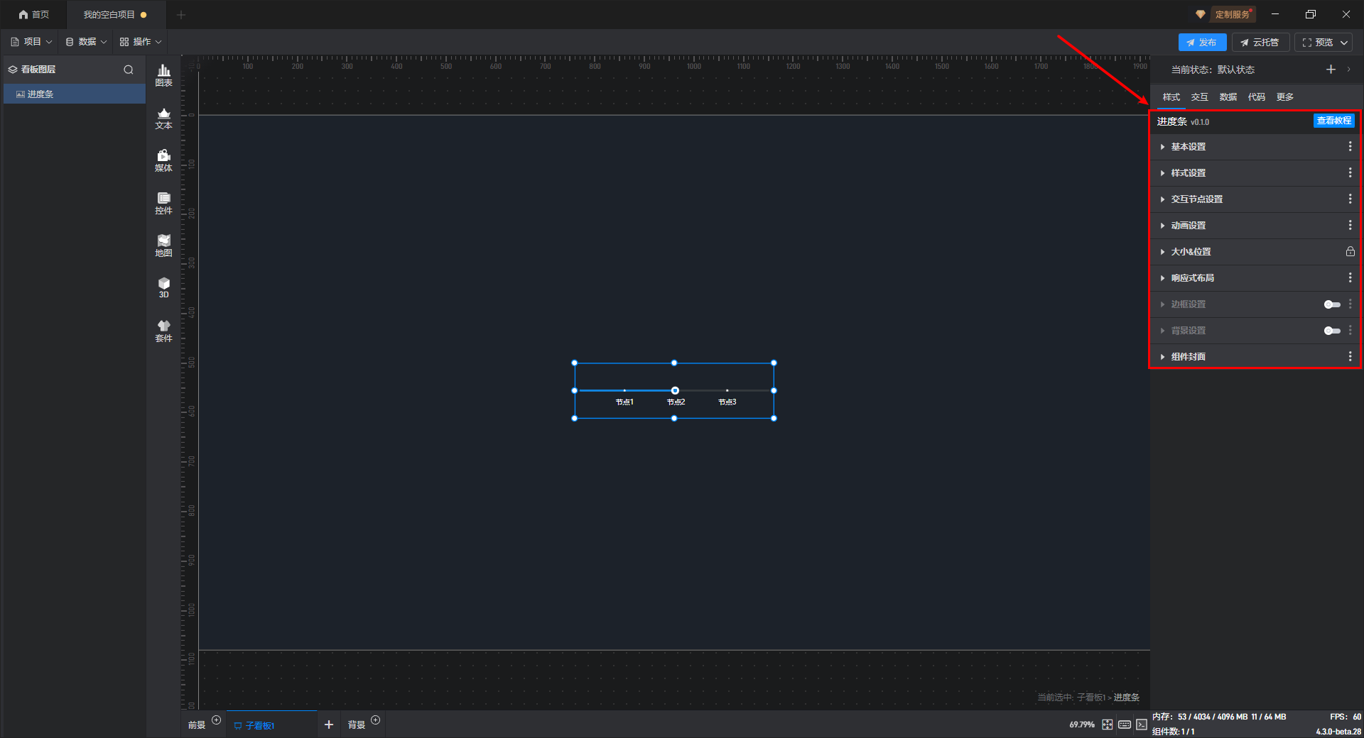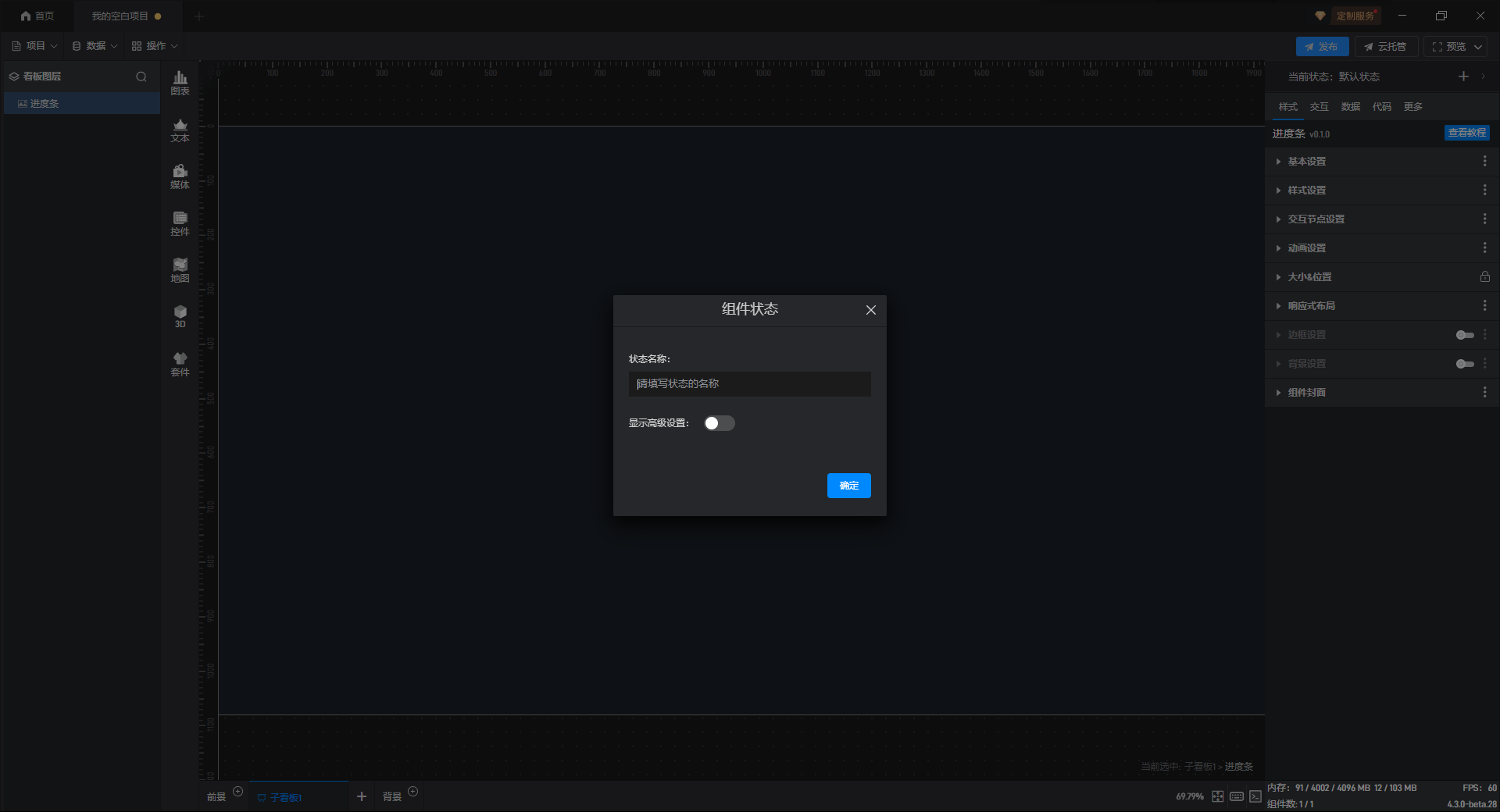 进度条组件的条件设置方式为第一种,具体步骤如下:
