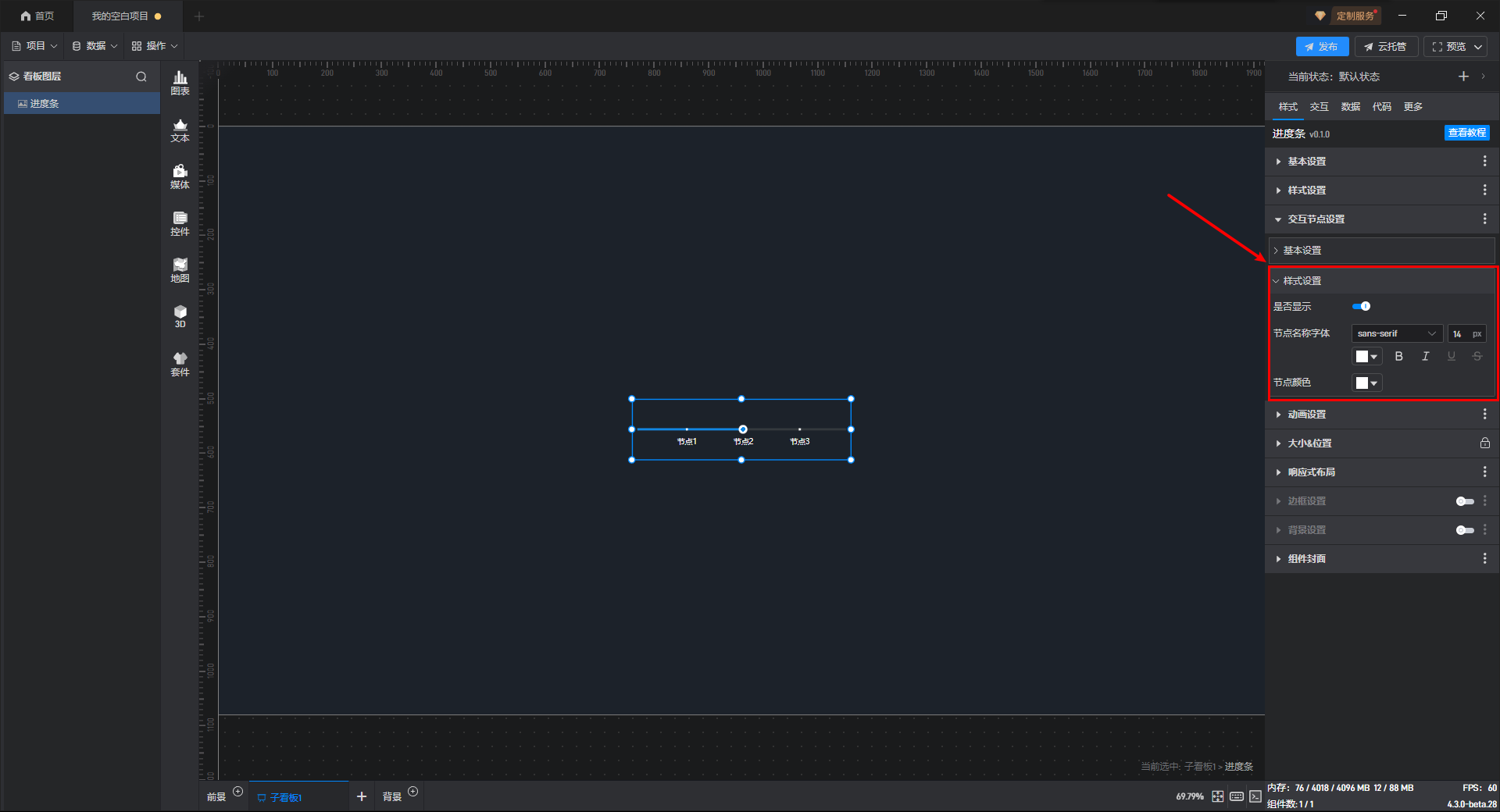 进度条 交互节点样式设置,如下图所示: