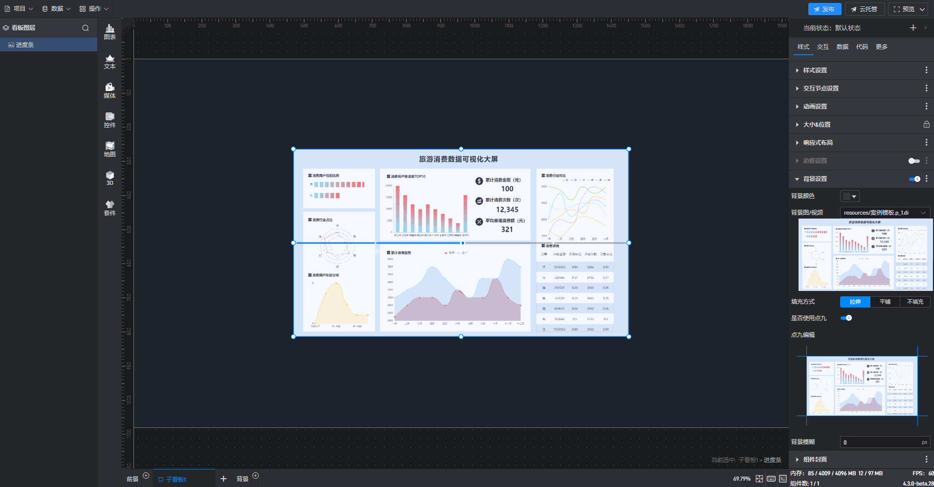 背景图/视频 | 可在此处添加本地图片或视频,充当组件背景。 |