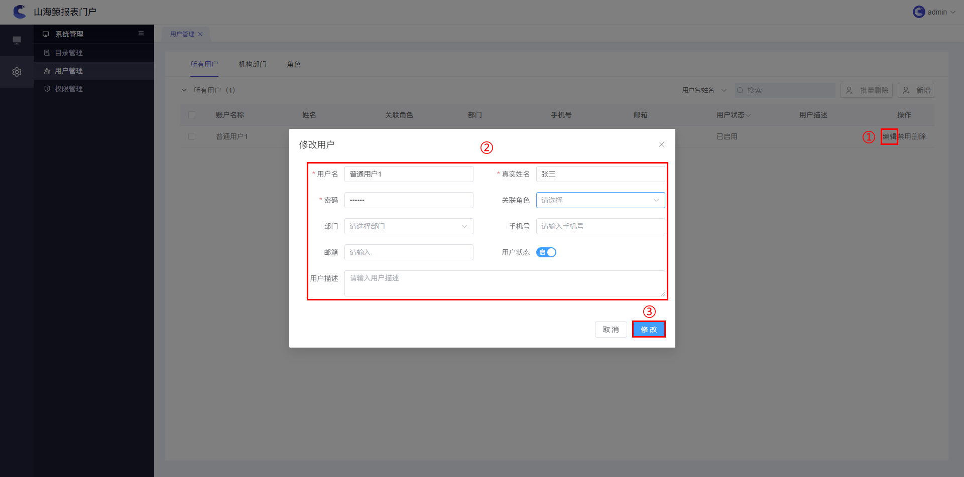 对于手动添加的用户,管理员和用户均可对用户信息进行编辑。