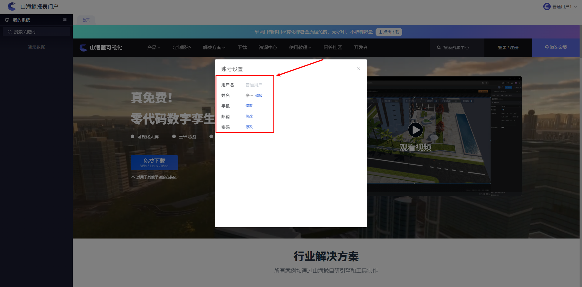 然后可修改用户姓名、手机、邮箱、密码等信息,如下图所示: