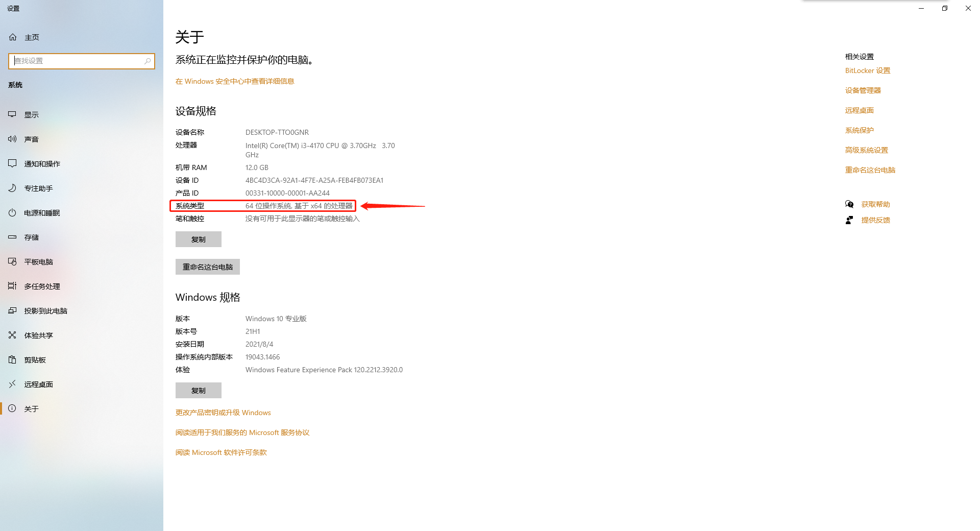 右键“我的电脑”,点击“属性”即可查看电脑系统类型。