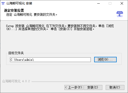 点击“浏览”可以调整山海鲸可视化软件的安装路径,调整完毕后点击“安装”即可正式开始安装。
