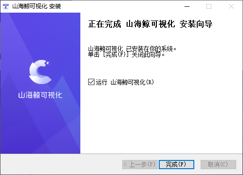 安装完成后,可以选择是否立刻启动山海鲸可视化,点击“完成”后即可关闭安装程序,完成安装。