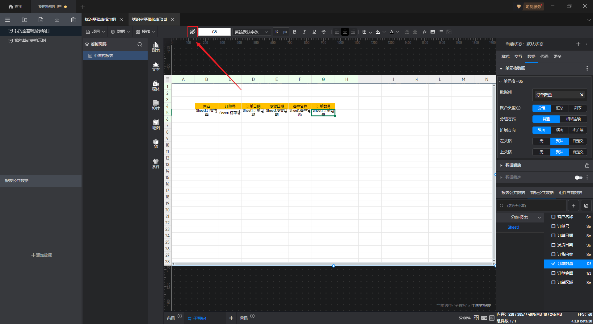 字段添加完毕后,点击上方按钮打开实时预览。