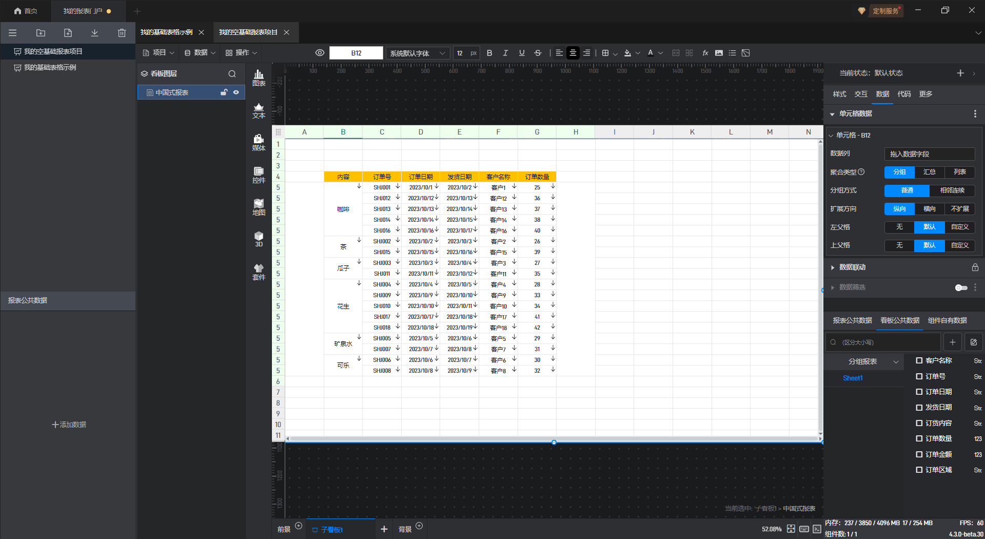 分组报表是所有报表当中最普通、最常见的报表类型,一般来说,分组报表只有纵向的分组。