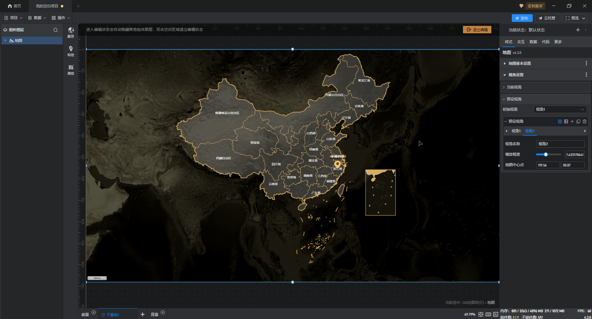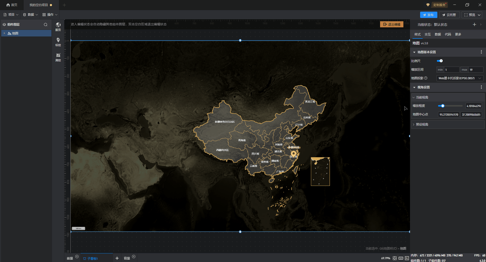 点击选择“地图”图层,可以对整个鲸地图进行一些通用的基础设置,下面逐个进行介绍: