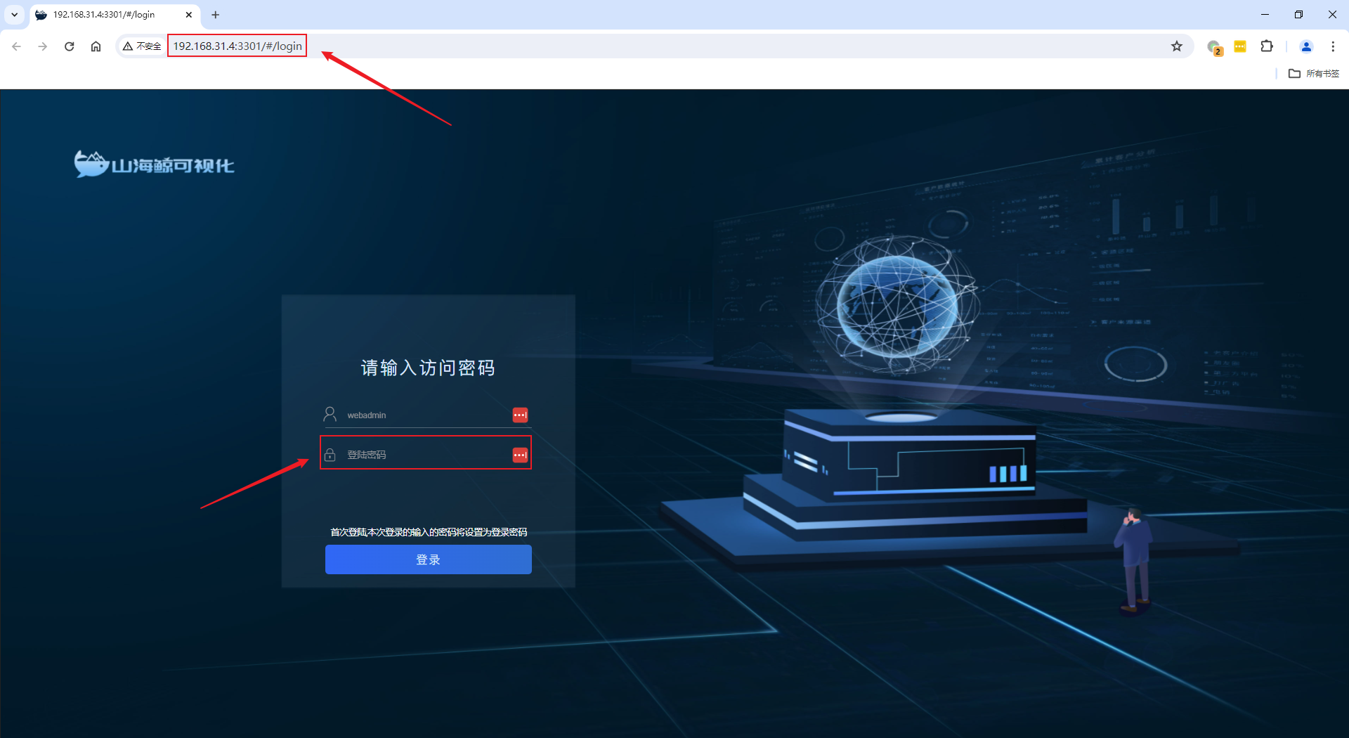 1)首次登录时输入的密码就是山海鲸查看器的登录密码,请务必牢记;