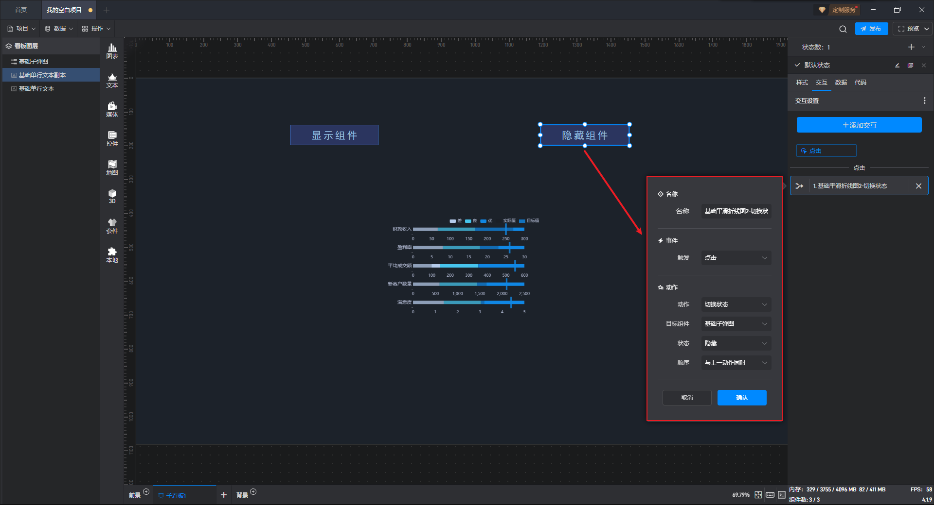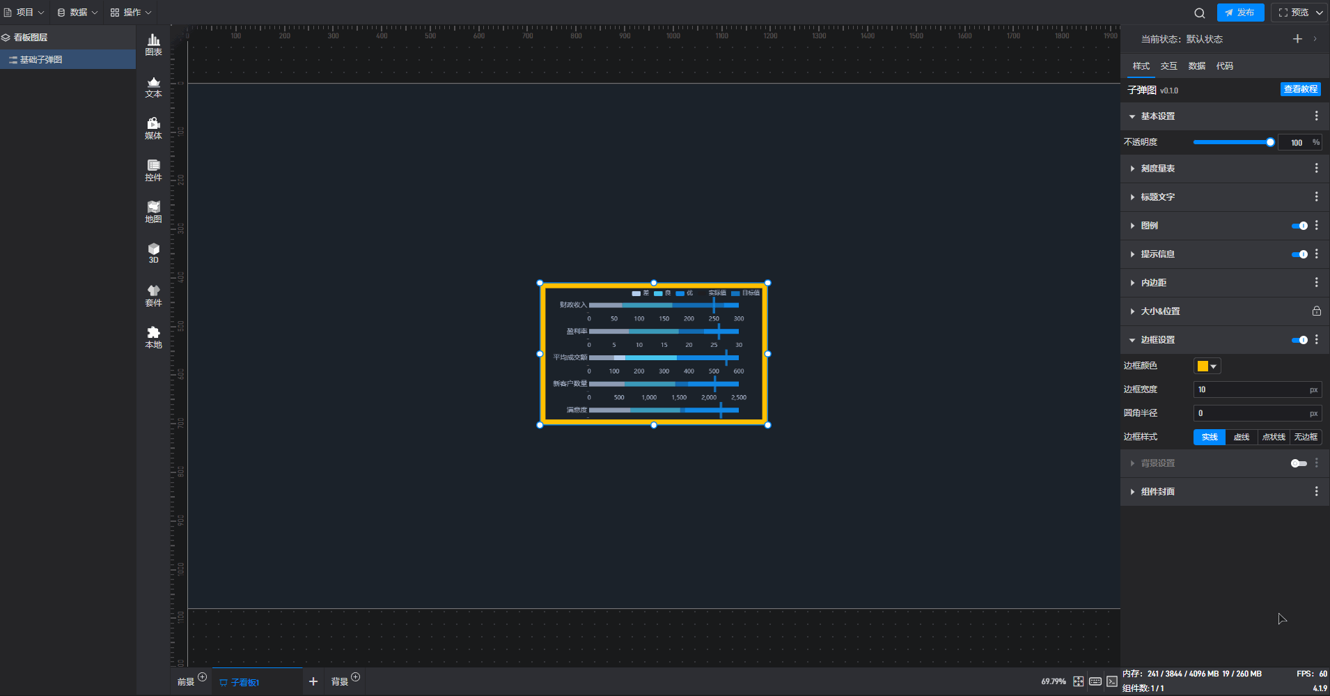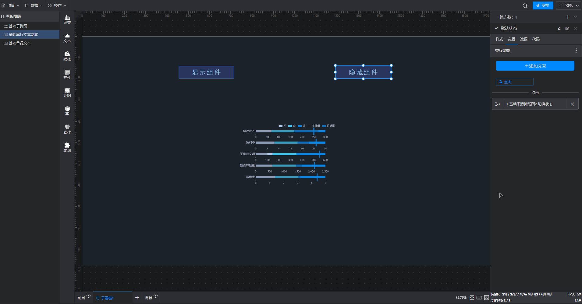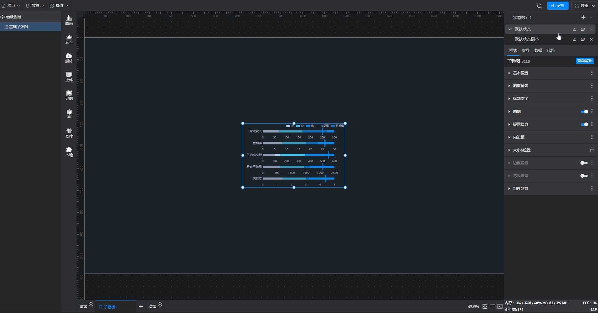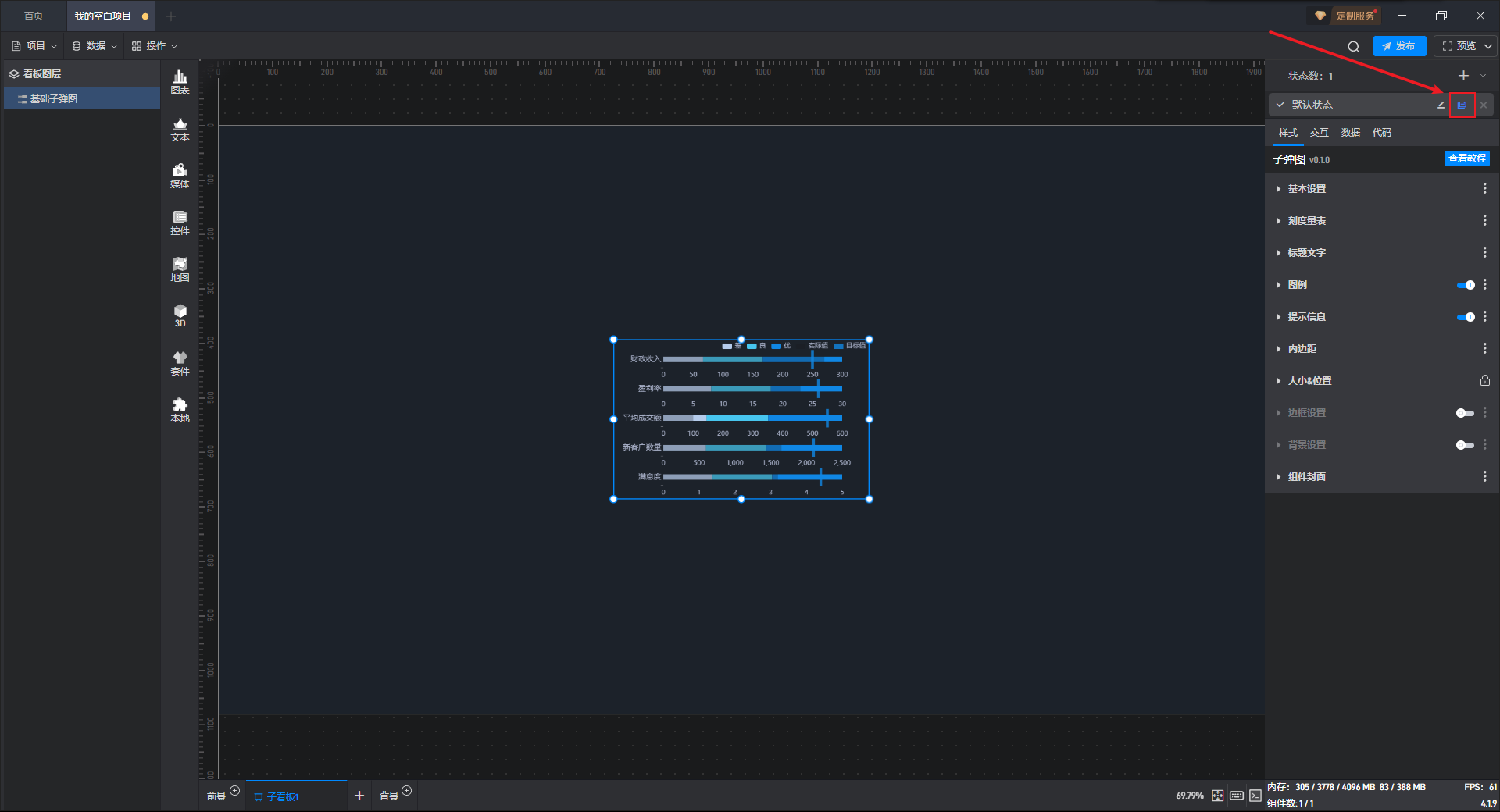 这样我们就实现了点击按钮切换基础子弹图组件显示隐藏的效果了。
