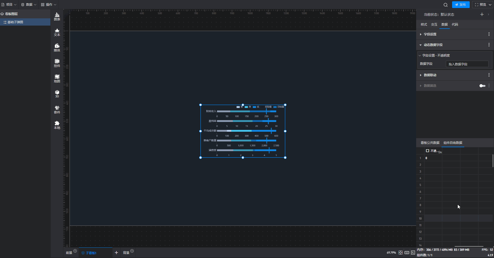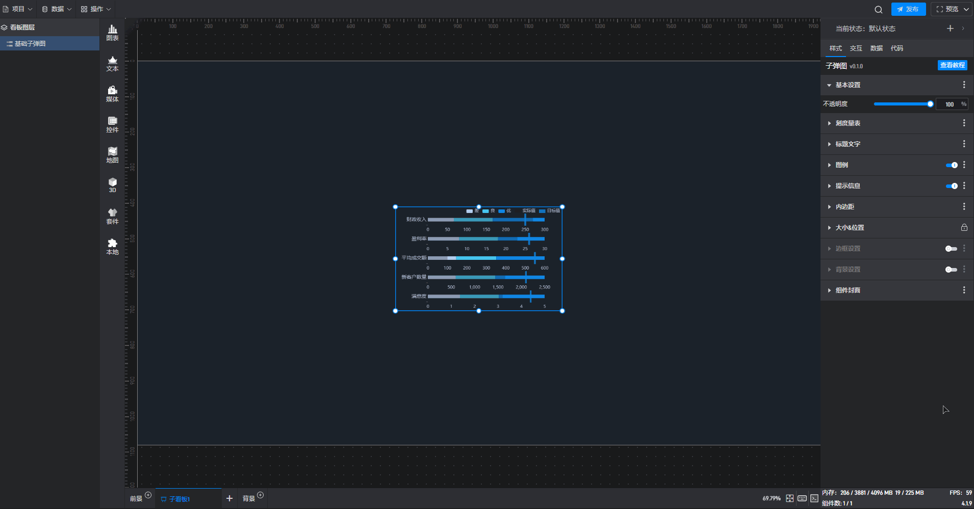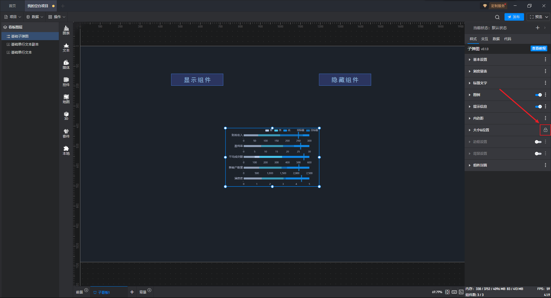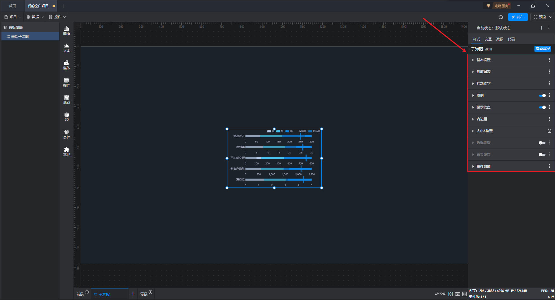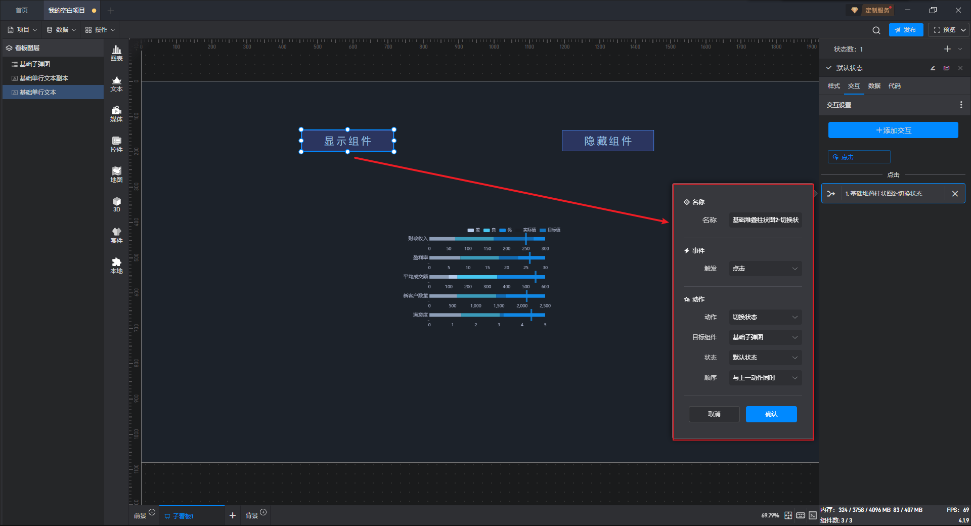 这样我们就实现了点击按钮切换基础子弹图组件显示隐藏的效果了。