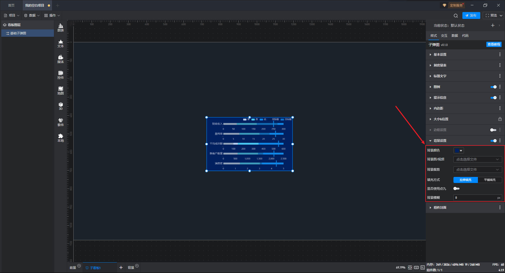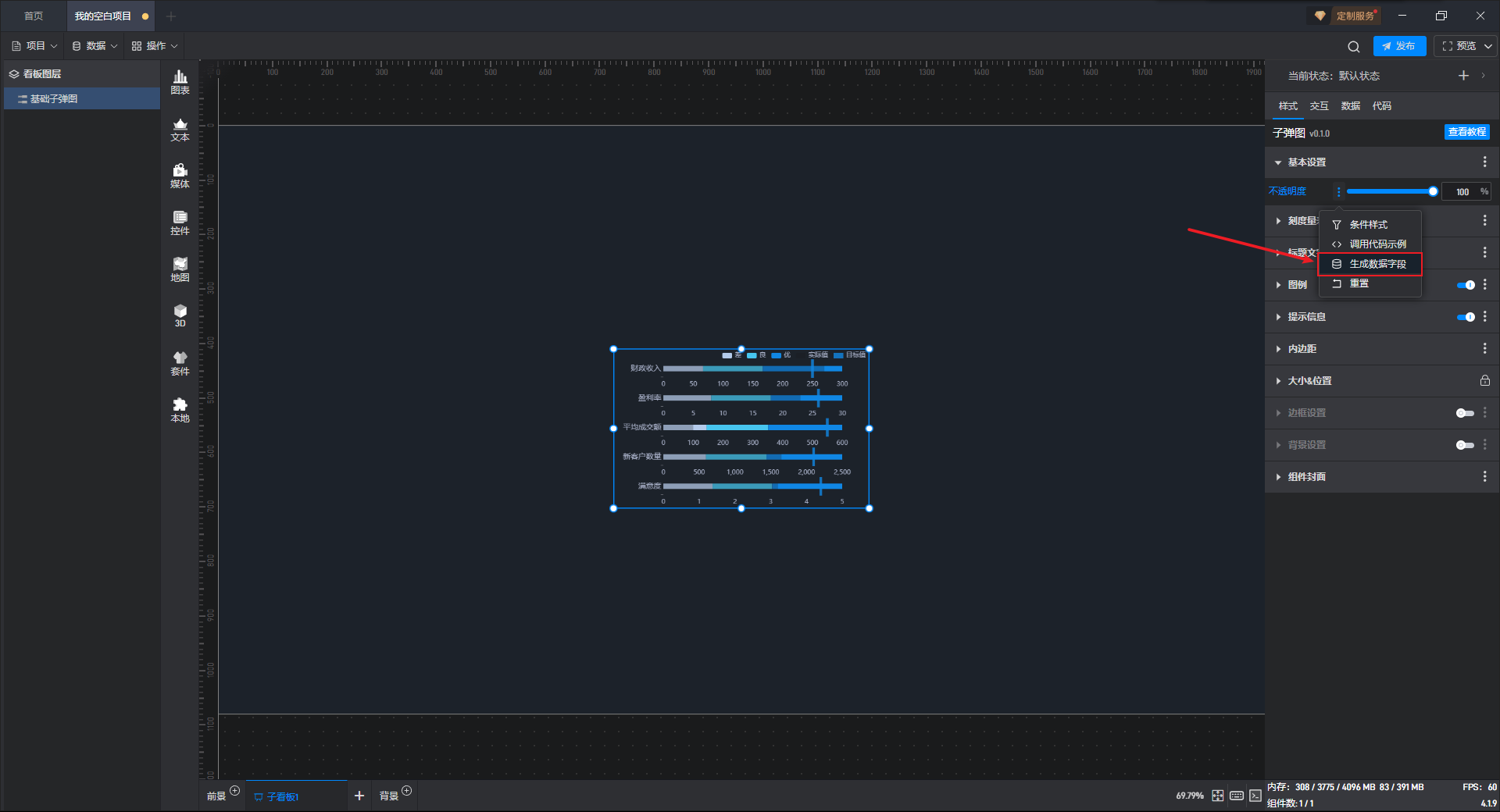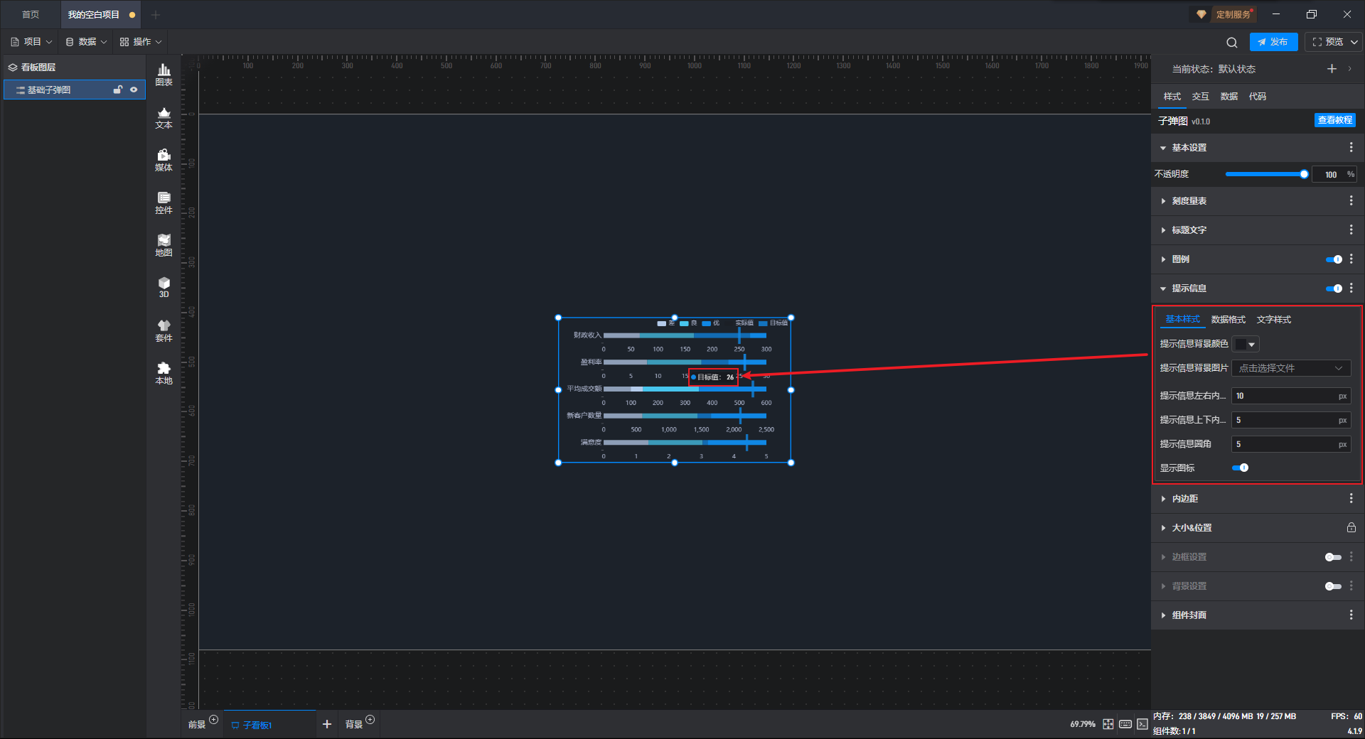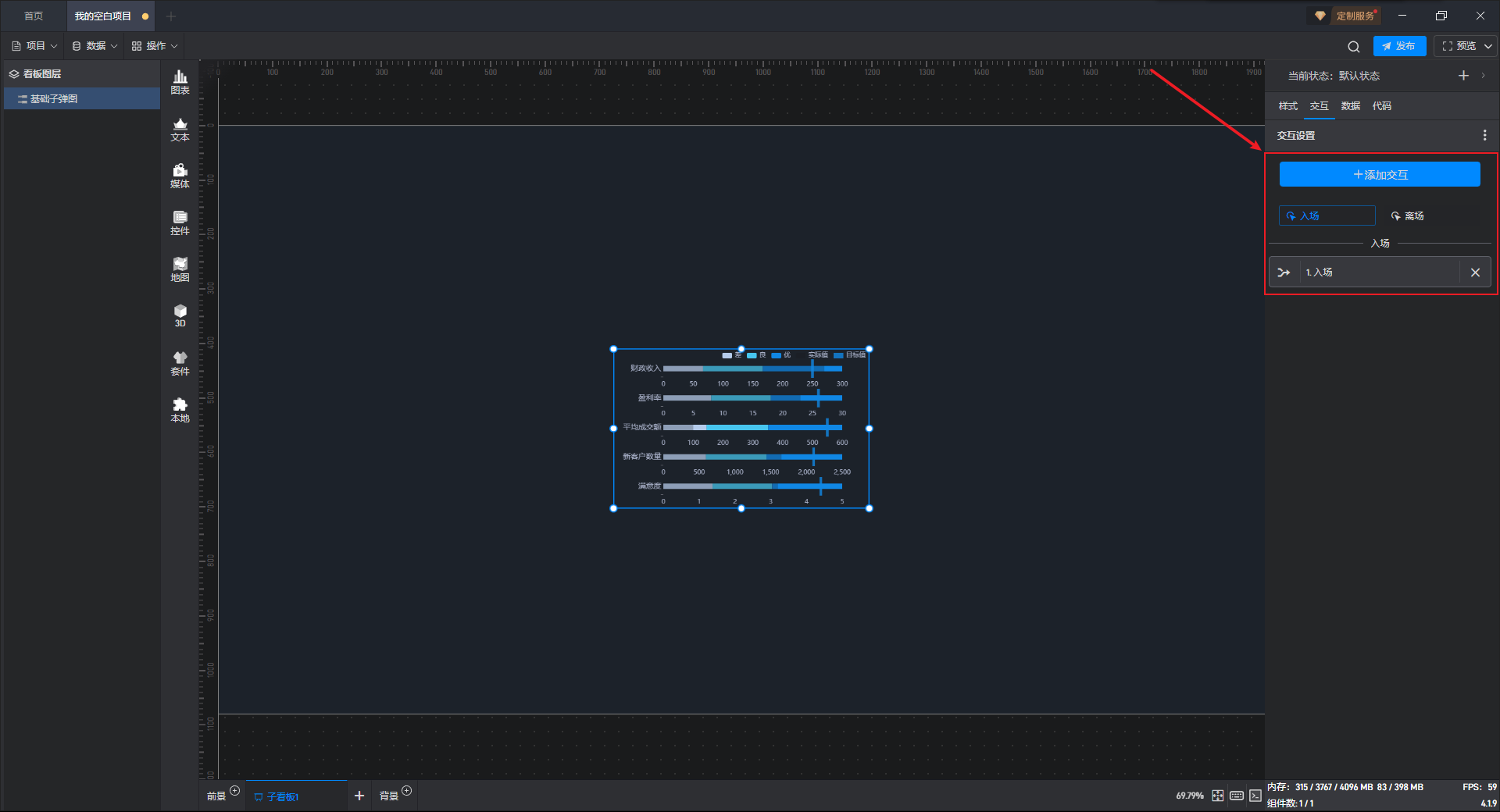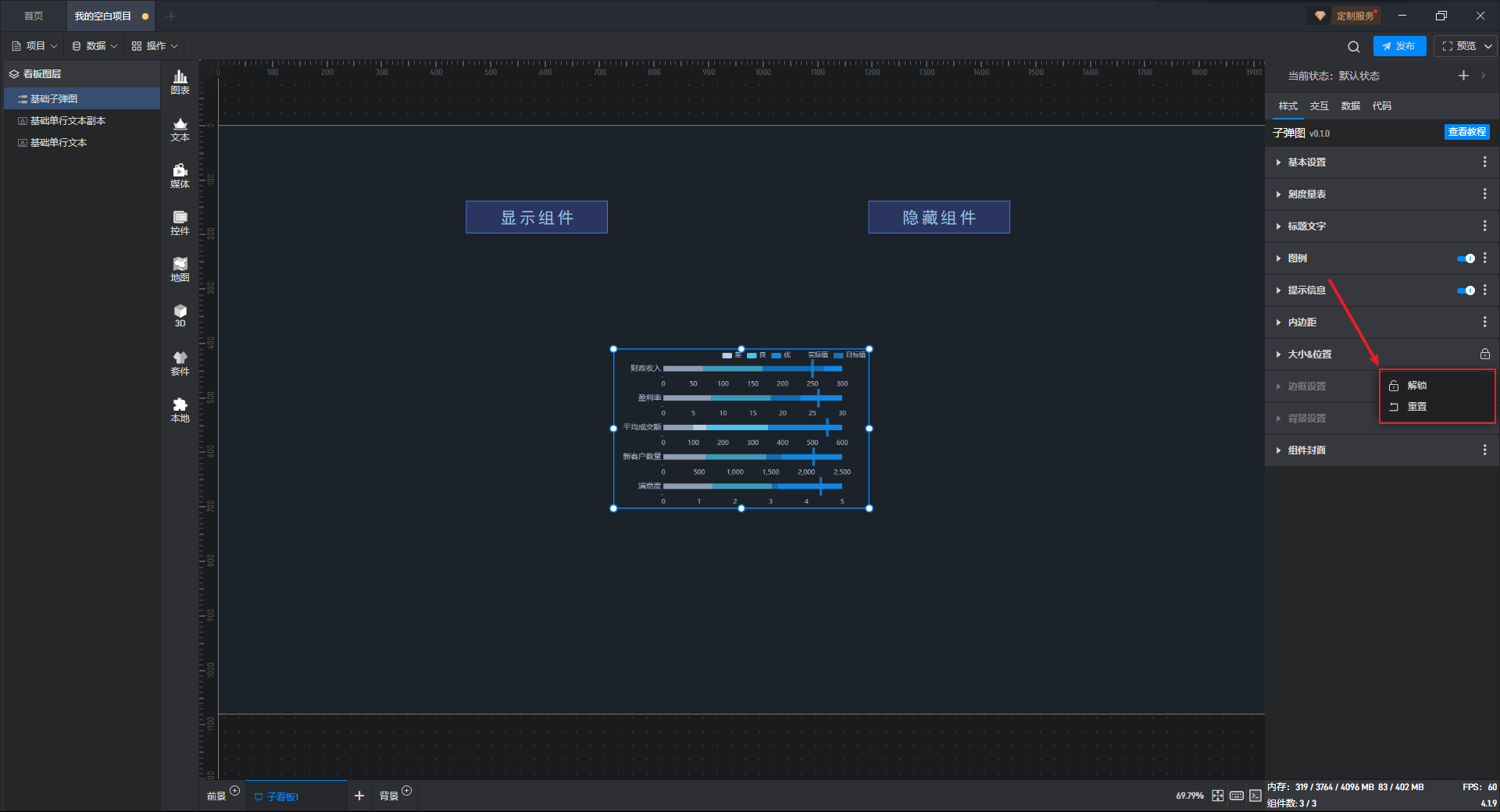 这样我们就实现了点击按钮切换基础子弹图组件显示隐藏的效果了。