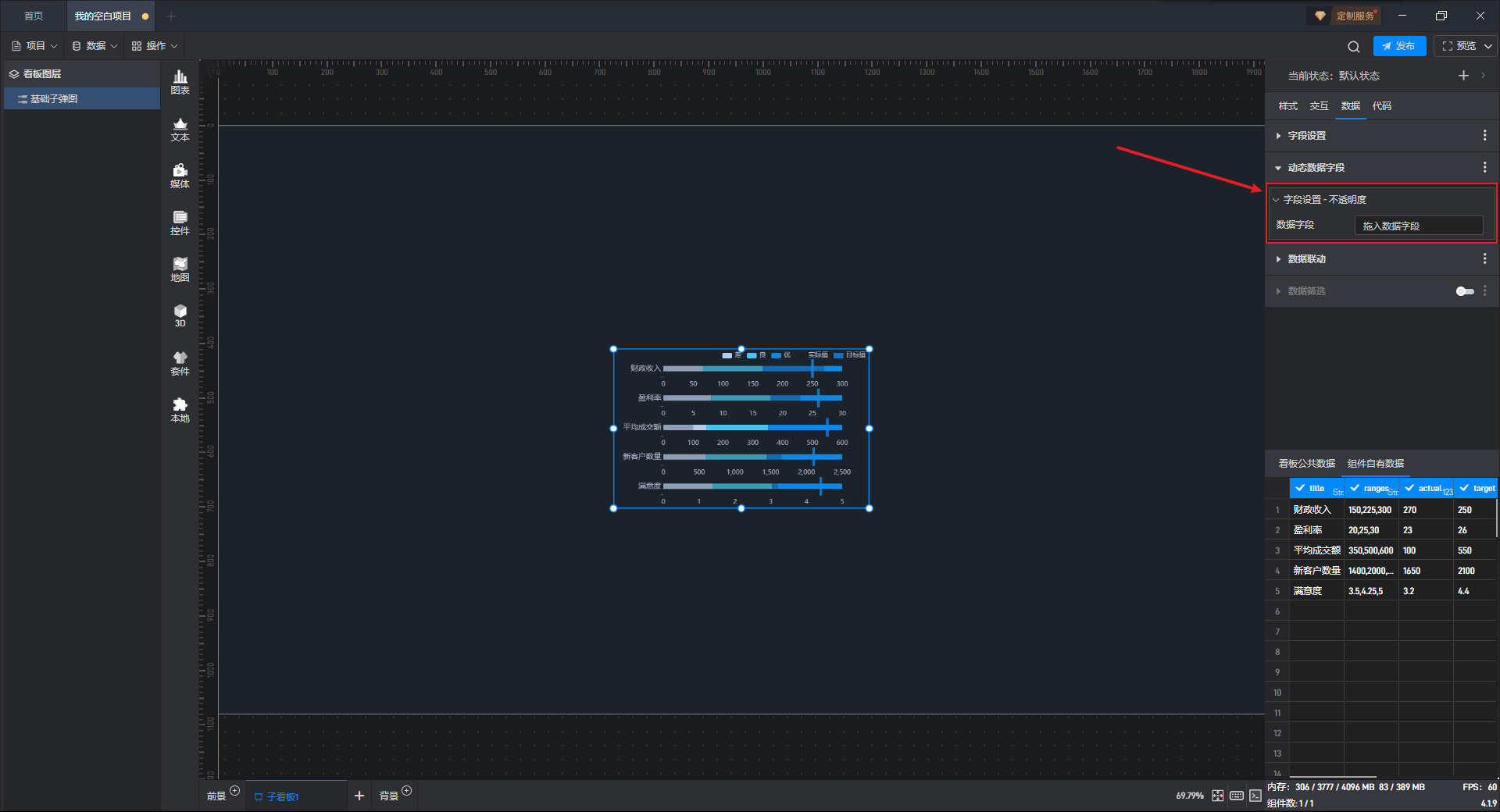 这里我们添加的数据字段中,数值是 0,所以最终效果是,通过动态数据字段将不透明度的数值修改为 0,从而让组件变成了隐藏。