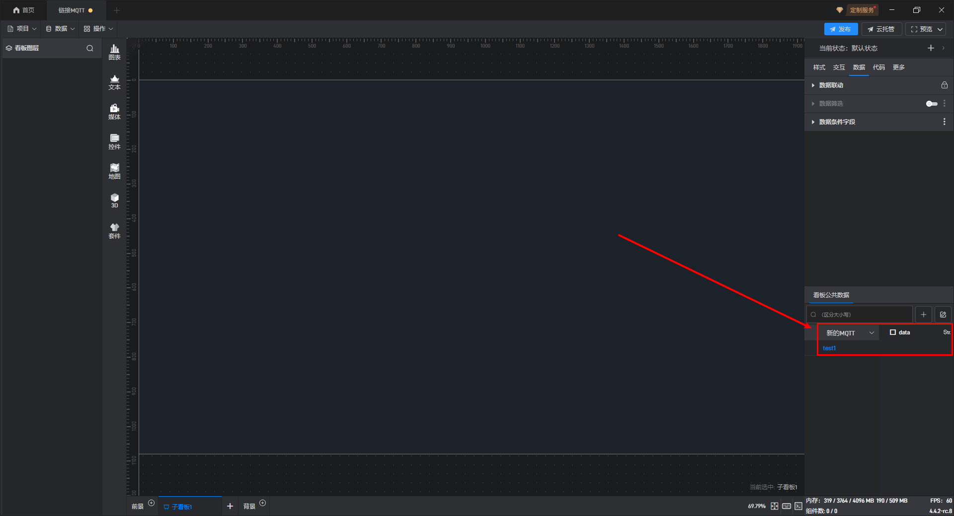 接入后,点击右上角的“数据”可以查看刚才添加的数据,如下图所示:
