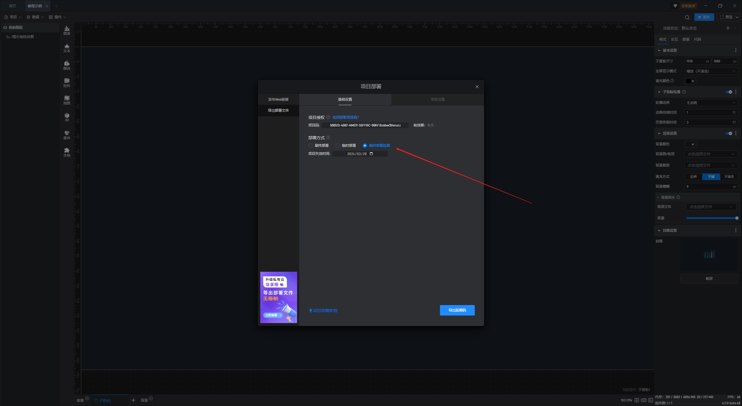 选择“临时部署延期”,然后设置一个新的项目失效时间。然后点击右下角导出延期码,得到一个延期码文件(.json 文件),再把这个文件发给客户进行项目延期。